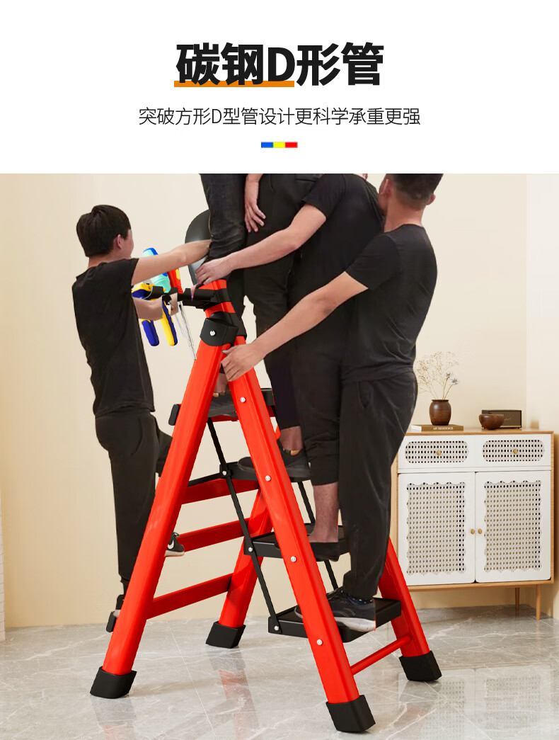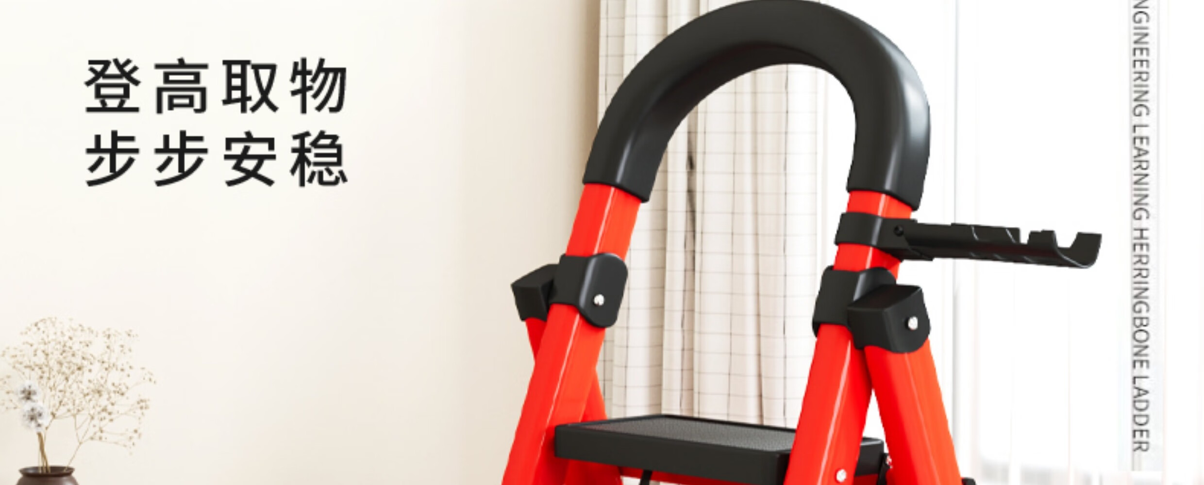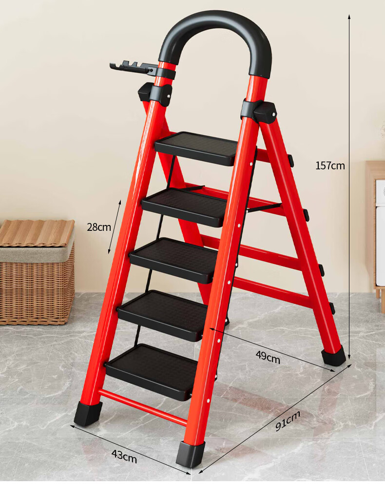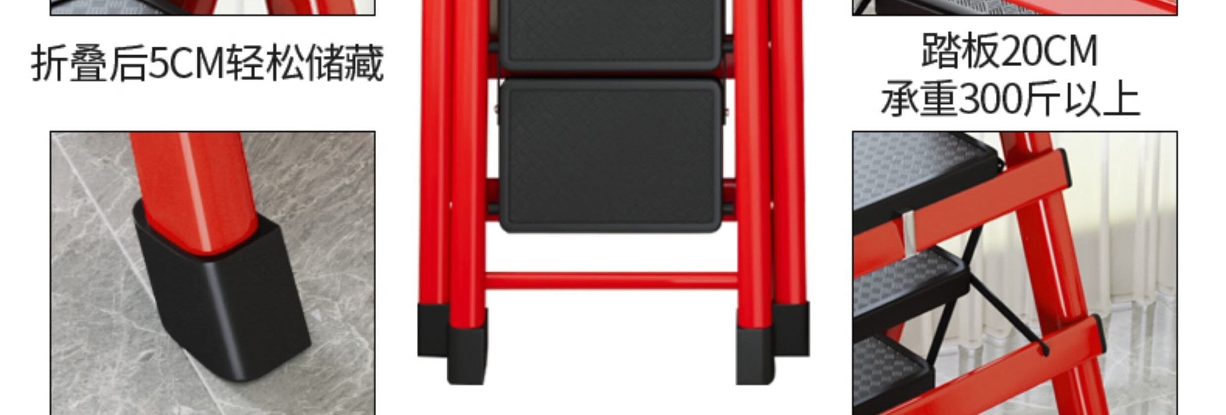 Ladder household folding ladder thickened herringbone ladder multi-functional climbing ladder escalator small ladder step stool housewarming thickened red four steps