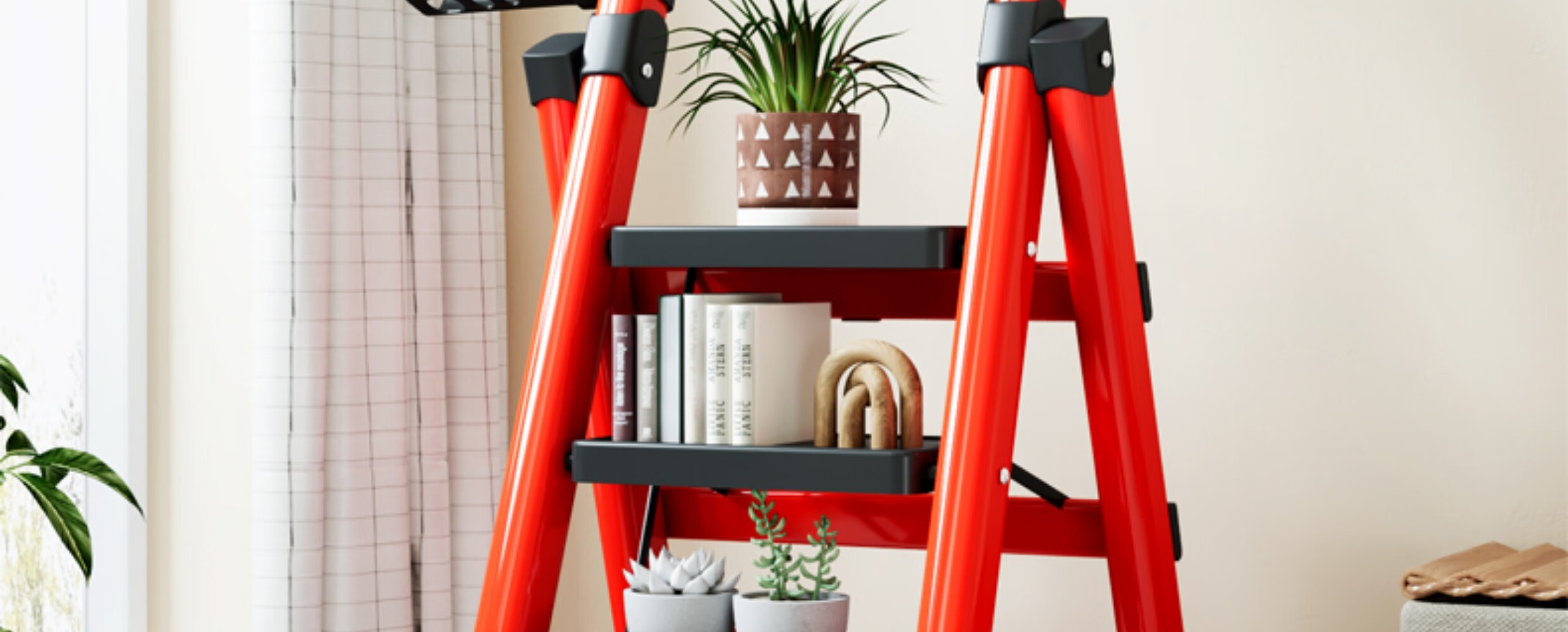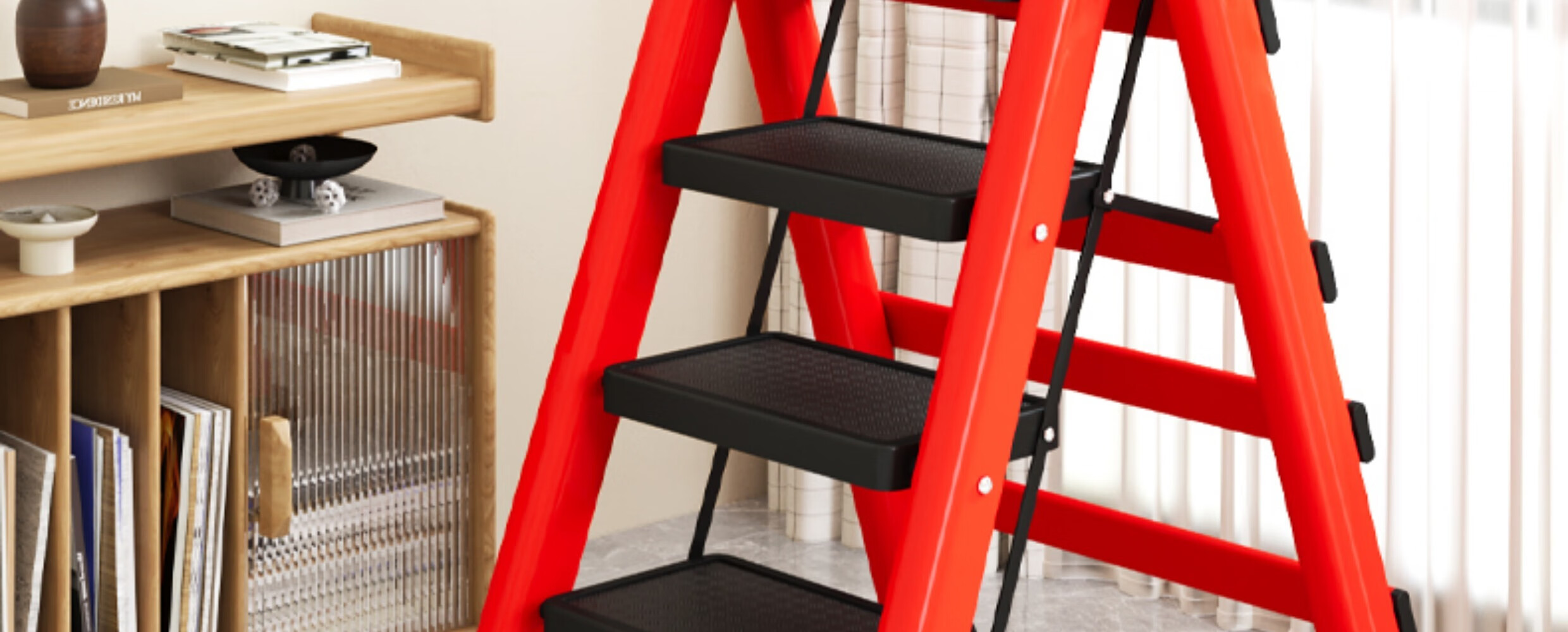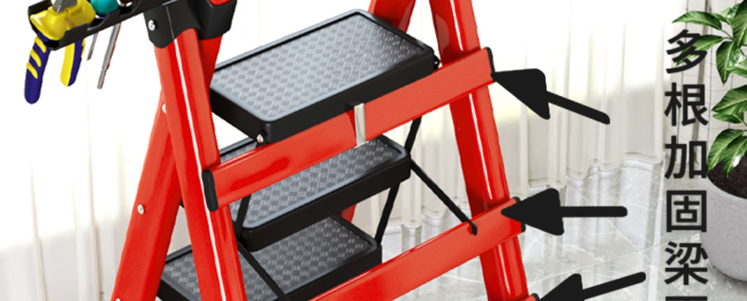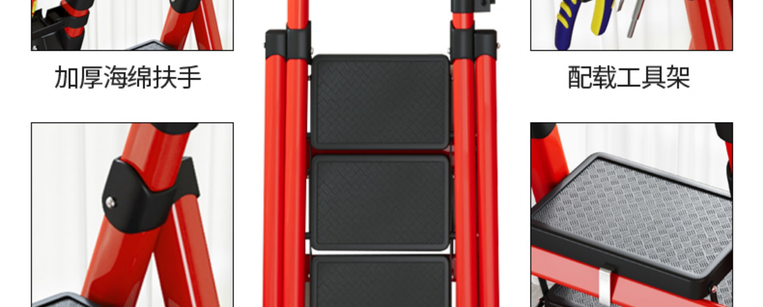 Ladder household folding ladder thickened herringbone ladder multi-functional climbing ladder escalator small ladder step stool housewarming thickened red four steps