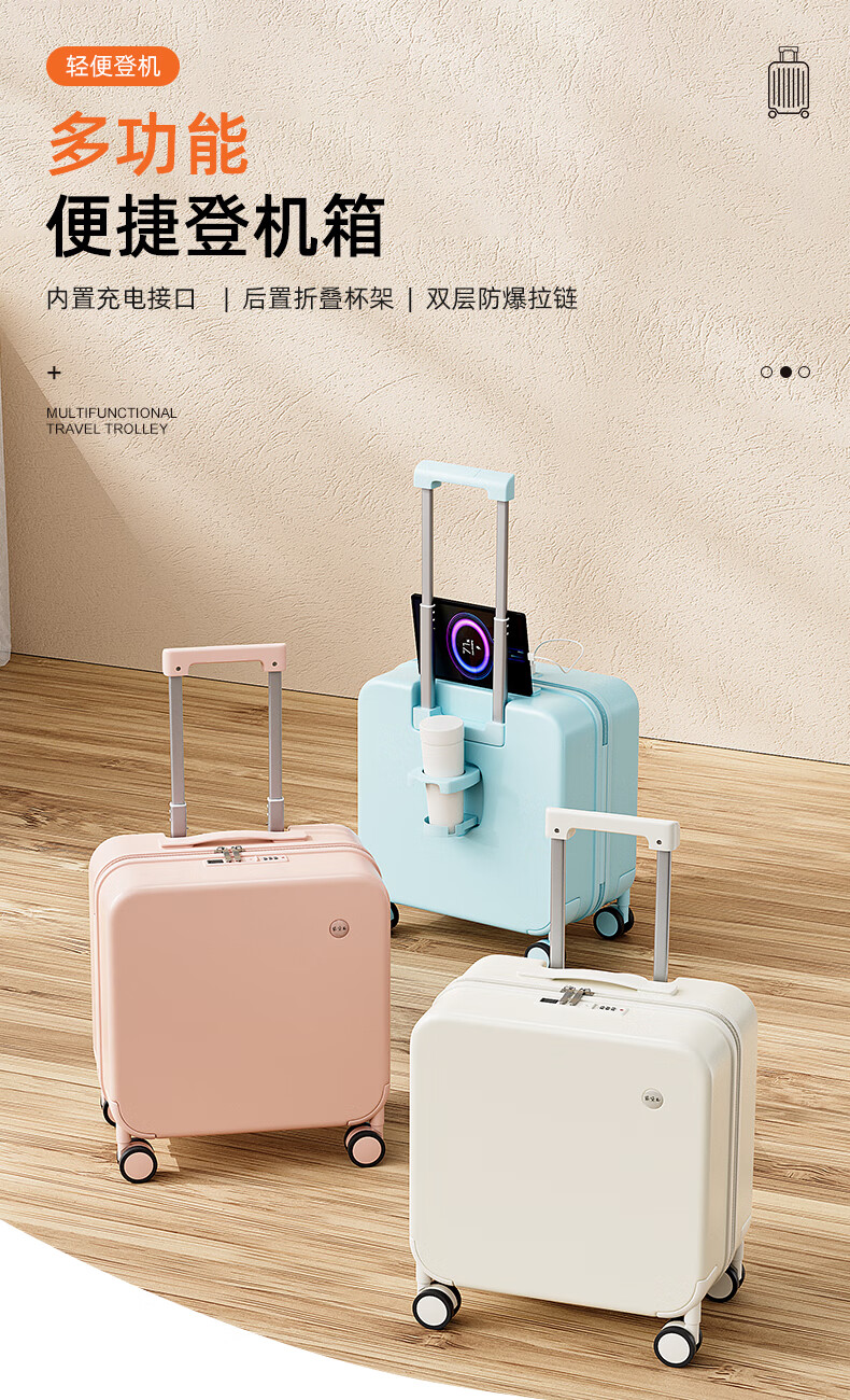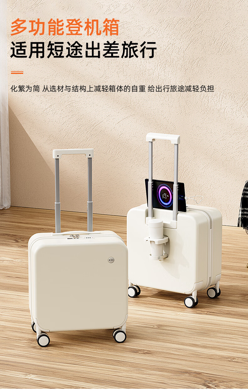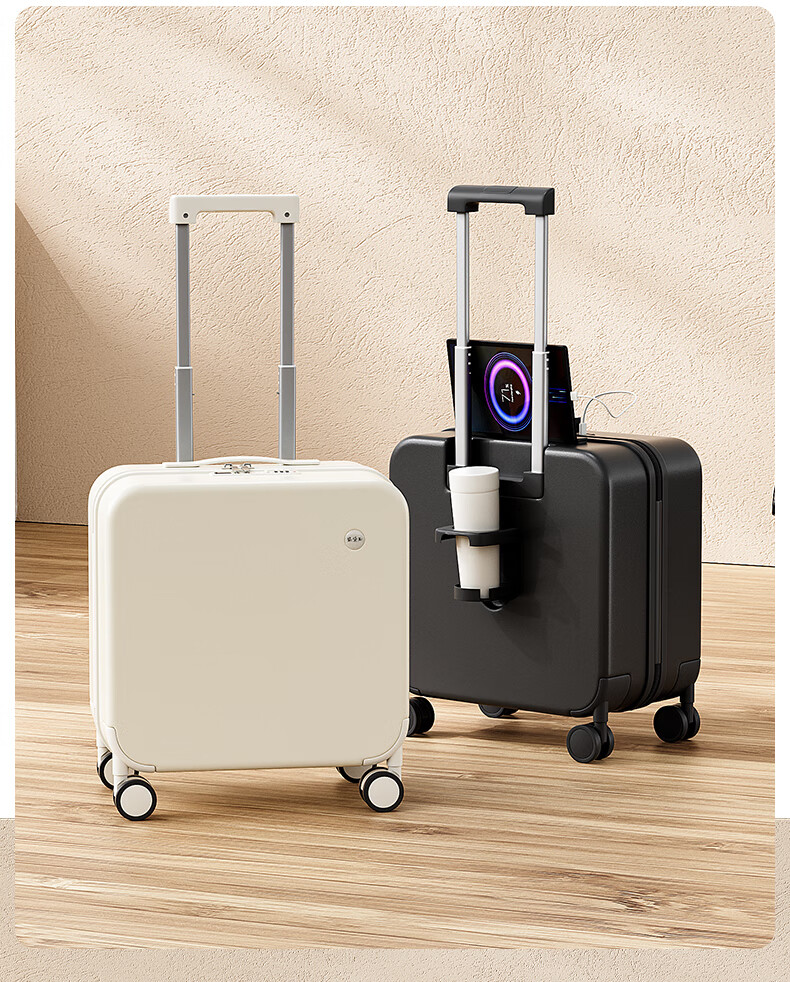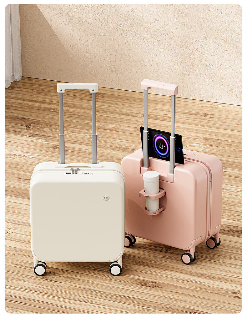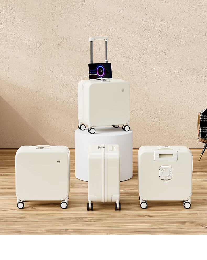MCHNA KTCC small suitcase explosion-proof zipper trolley case business travel case lightweight universal wheel boarding case men and women password box moonlight white explosion-proof zipper + charging port + cup holder 20 inches can be boarded