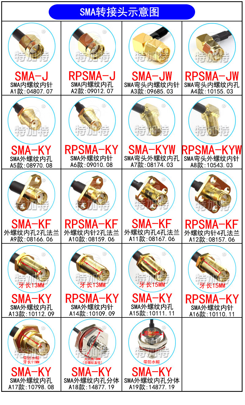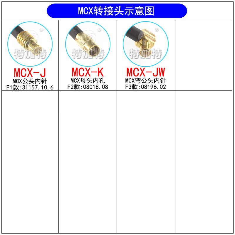 RF connection jumper MCX-J curved male to SMA-KY male screw inner hole SMA to MCX Silver-plated shielded wire 1m SMA male screw inner hole to MCX male