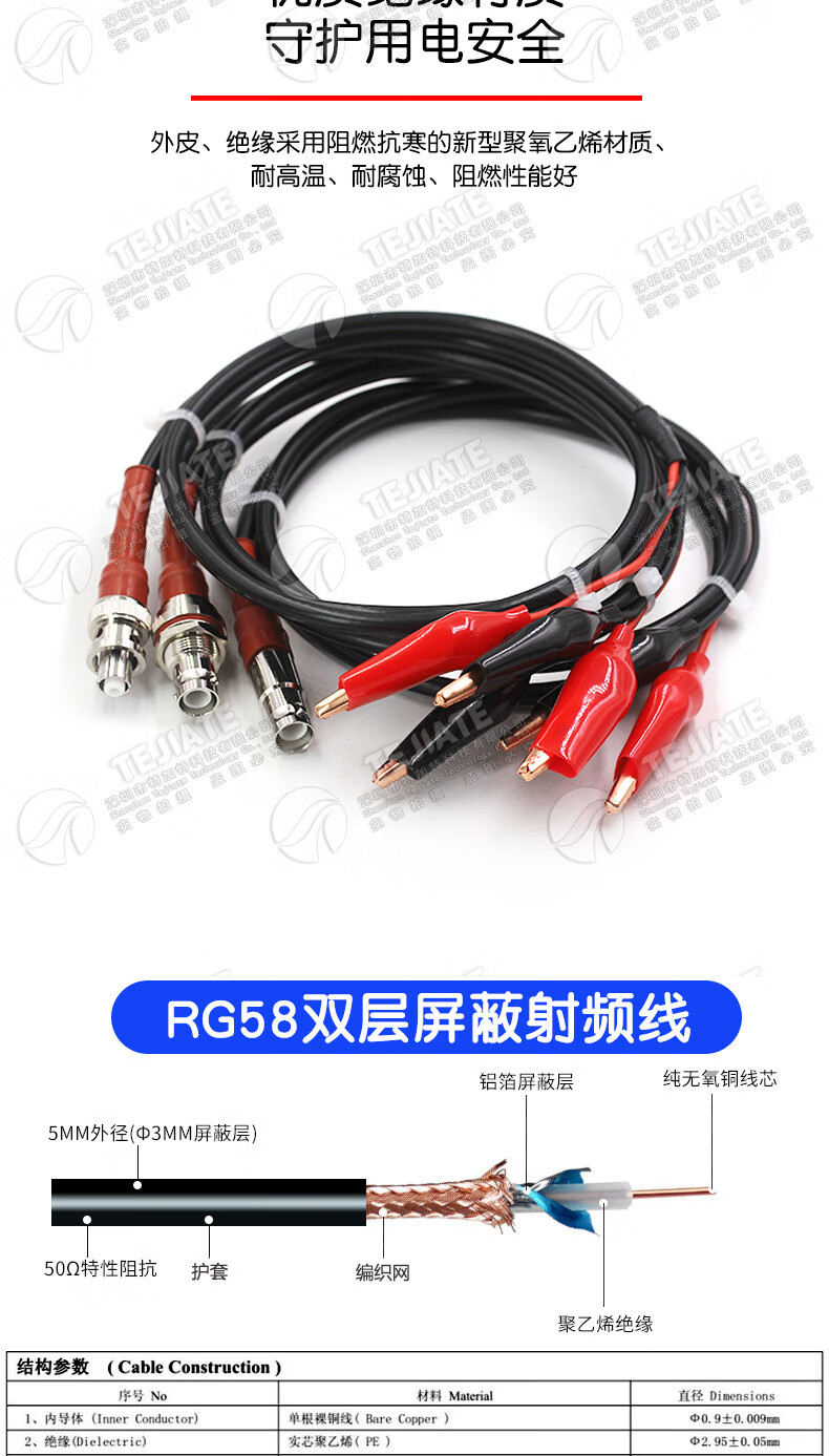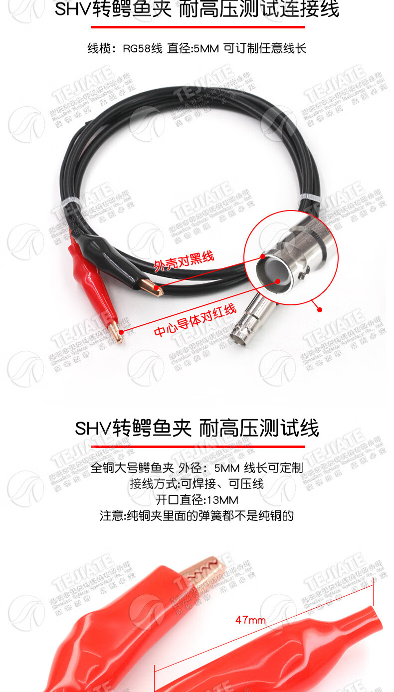 SHV Male to Alligator Clip RF Coaxial Cable SHV-J/Alligator Clip 5000V High Voltage Resistant Connection SHV Female to Alligator Clip 50CM RG58 Cable