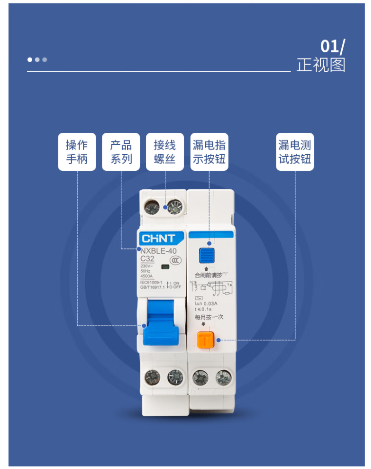 Chint household small leakage protection switch 1P+N miniature overload circuit breaker double in and double out 10A 1P+N