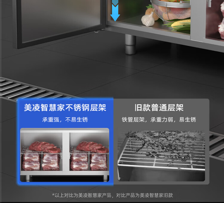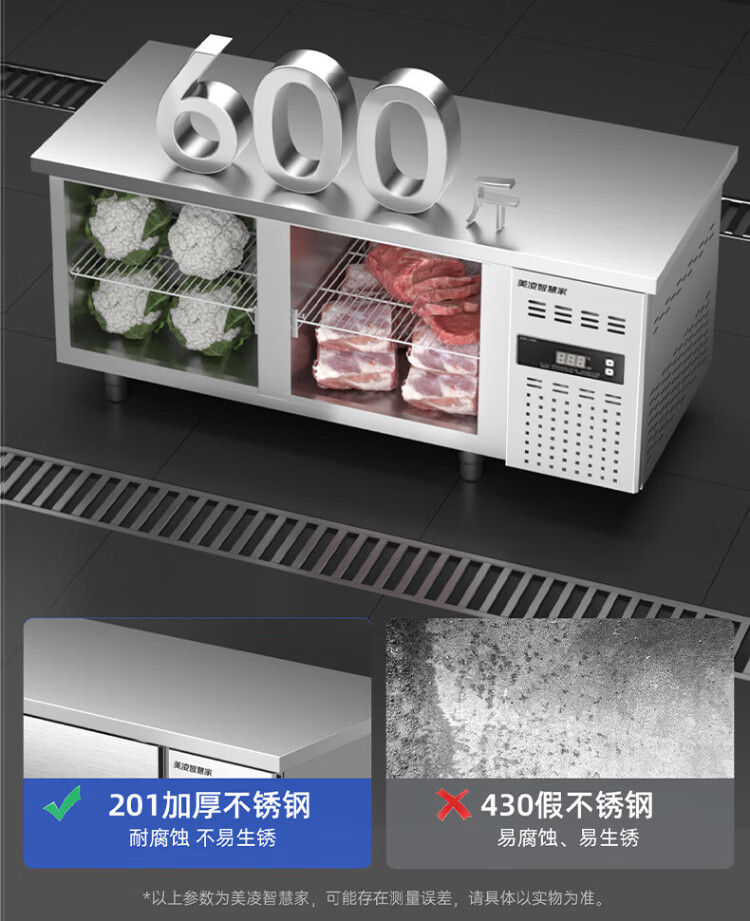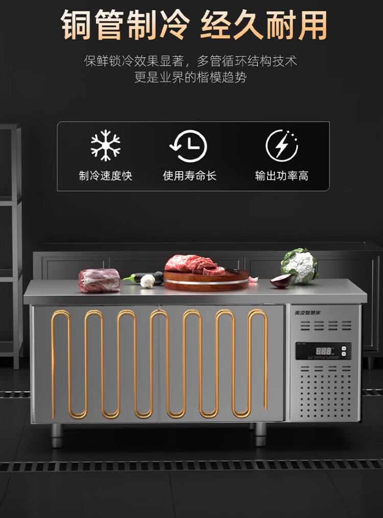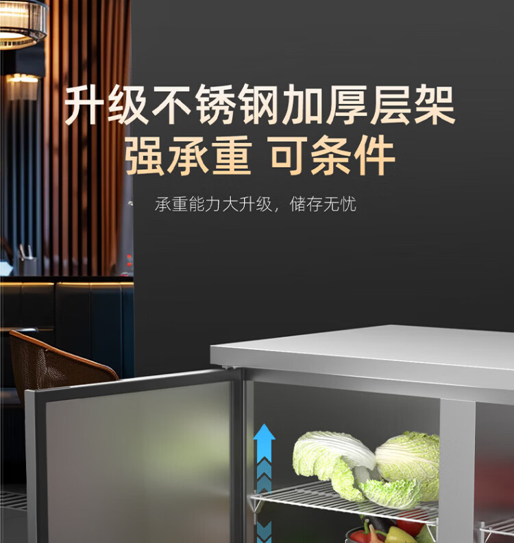 Meiling smart home refrigeration workbench commercial freezer kitchen horizontal freezer refrigerator dual-temperature large-capacity fresh cabinet milk tea restaurant flat cooling workbench stainless steel operating table air-cooled direct cooling dual-temperature multi-dimensional frequency conversion model 1.8*0.7*0.8 meters | power saving 60% energy-saving model minus 18 degrees + stainless steel countertop + rebound door