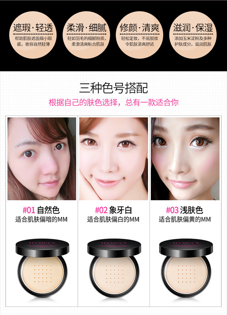 Rejuvenating, contouring and setting powder, contouring, concealing, refreshing, oil-controlling, skin color modification, loose powder, setting powder, setting powder/ivory white 15g