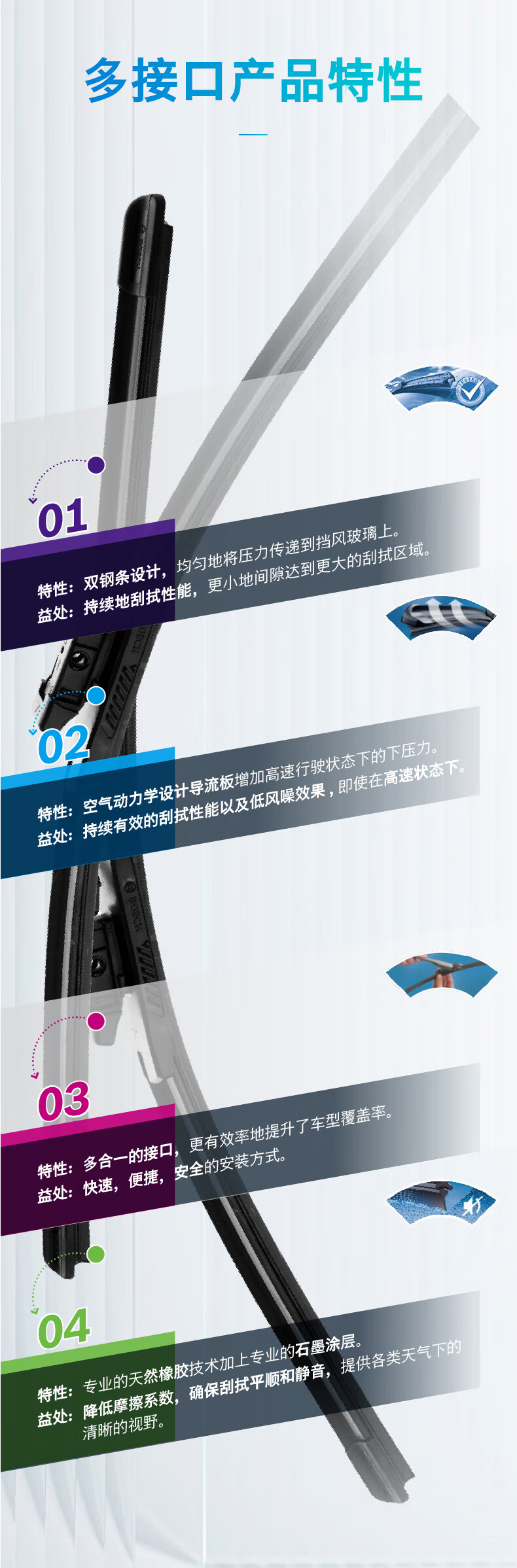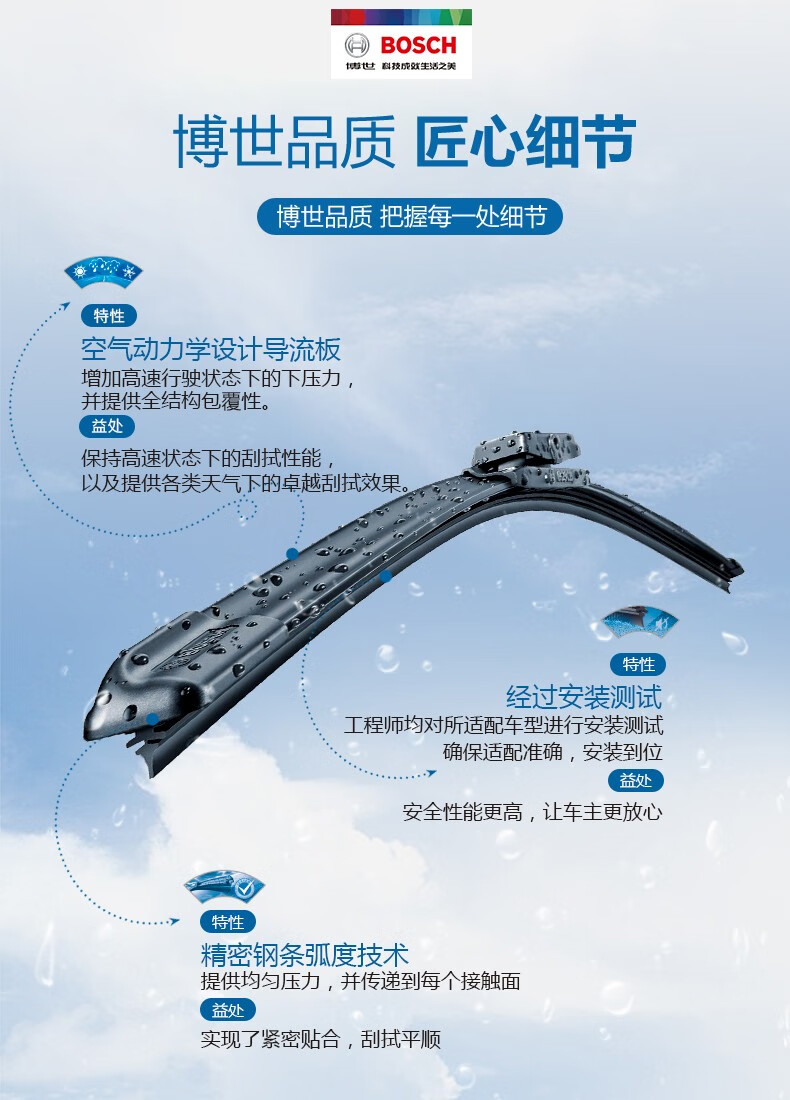 Bosch (BOSCH) original car boneless wiper blade, wiper blade, wiper strip, suitable for Hongqi H5 17 to 25 models