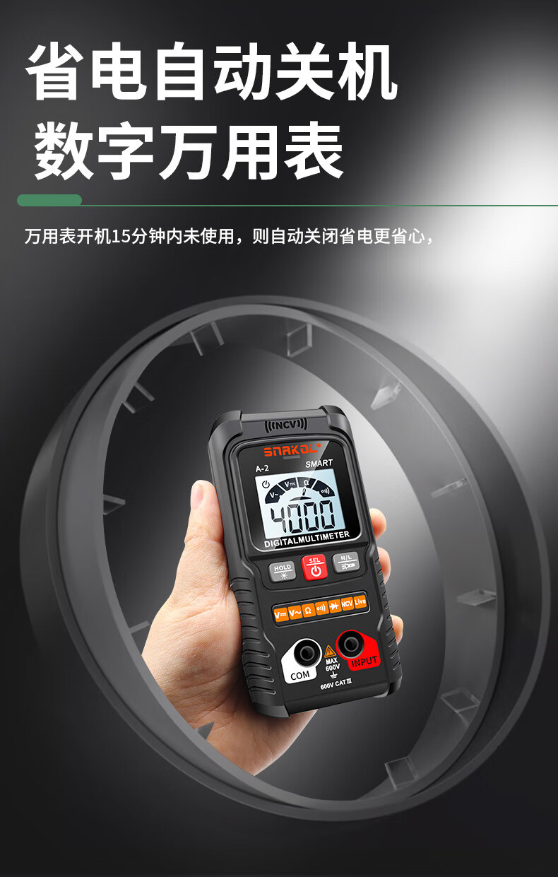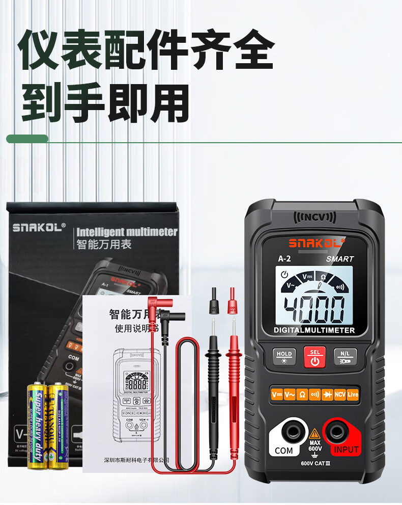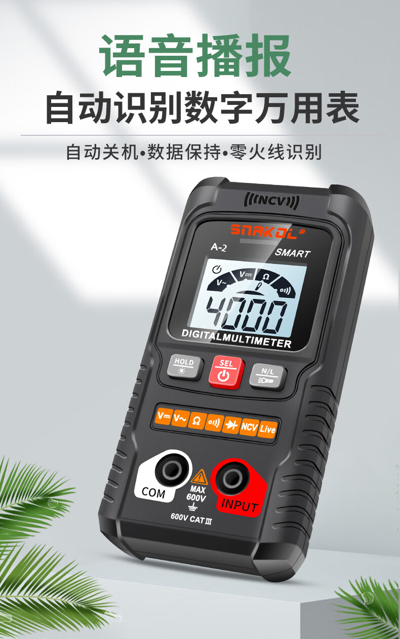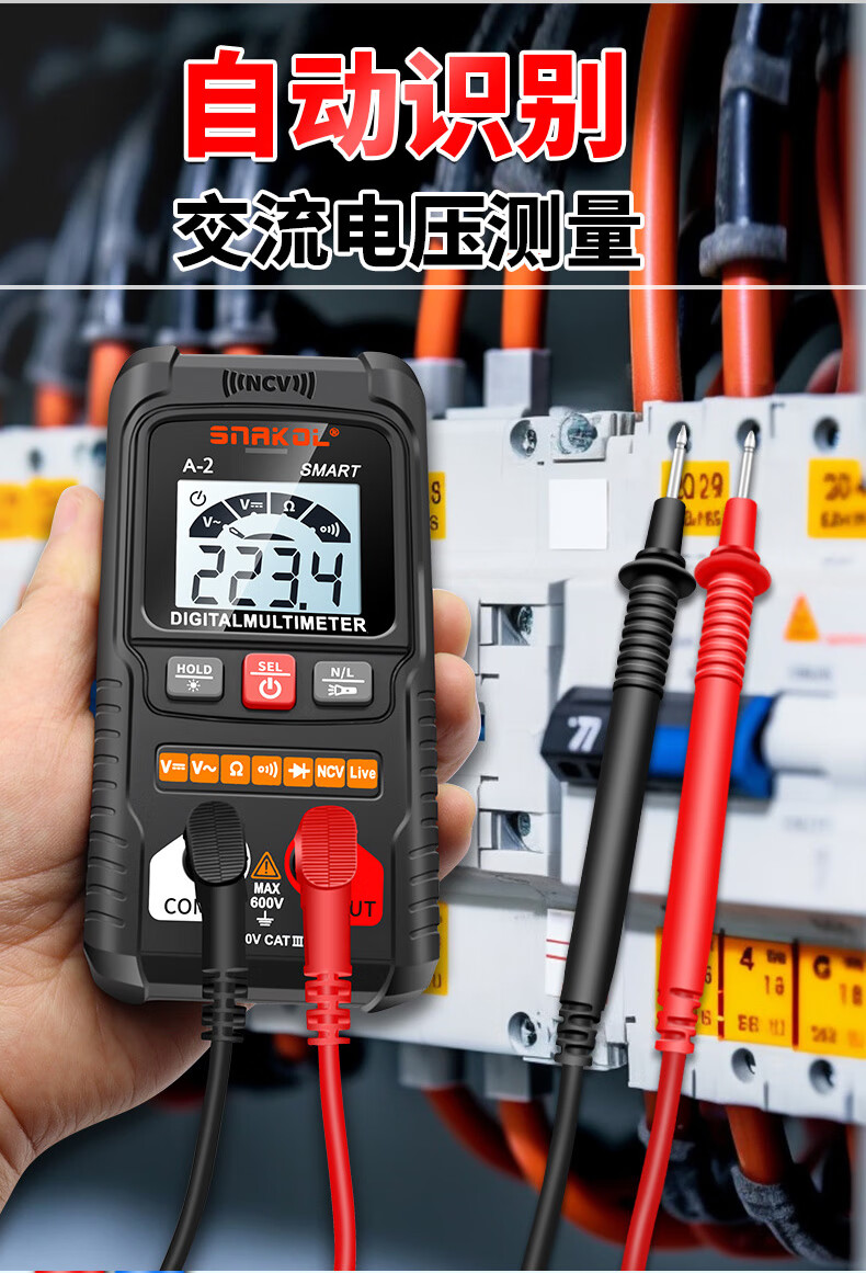 Snake A2 fully automatic multimeter voice broadcast digital high-precision intelligent anti-burn meter electrician multimeter NCV A-3 (fully automatic recognition + capacitance measurement + voice) 0-600V