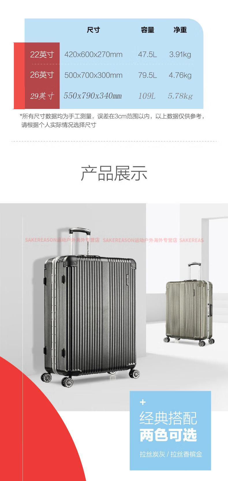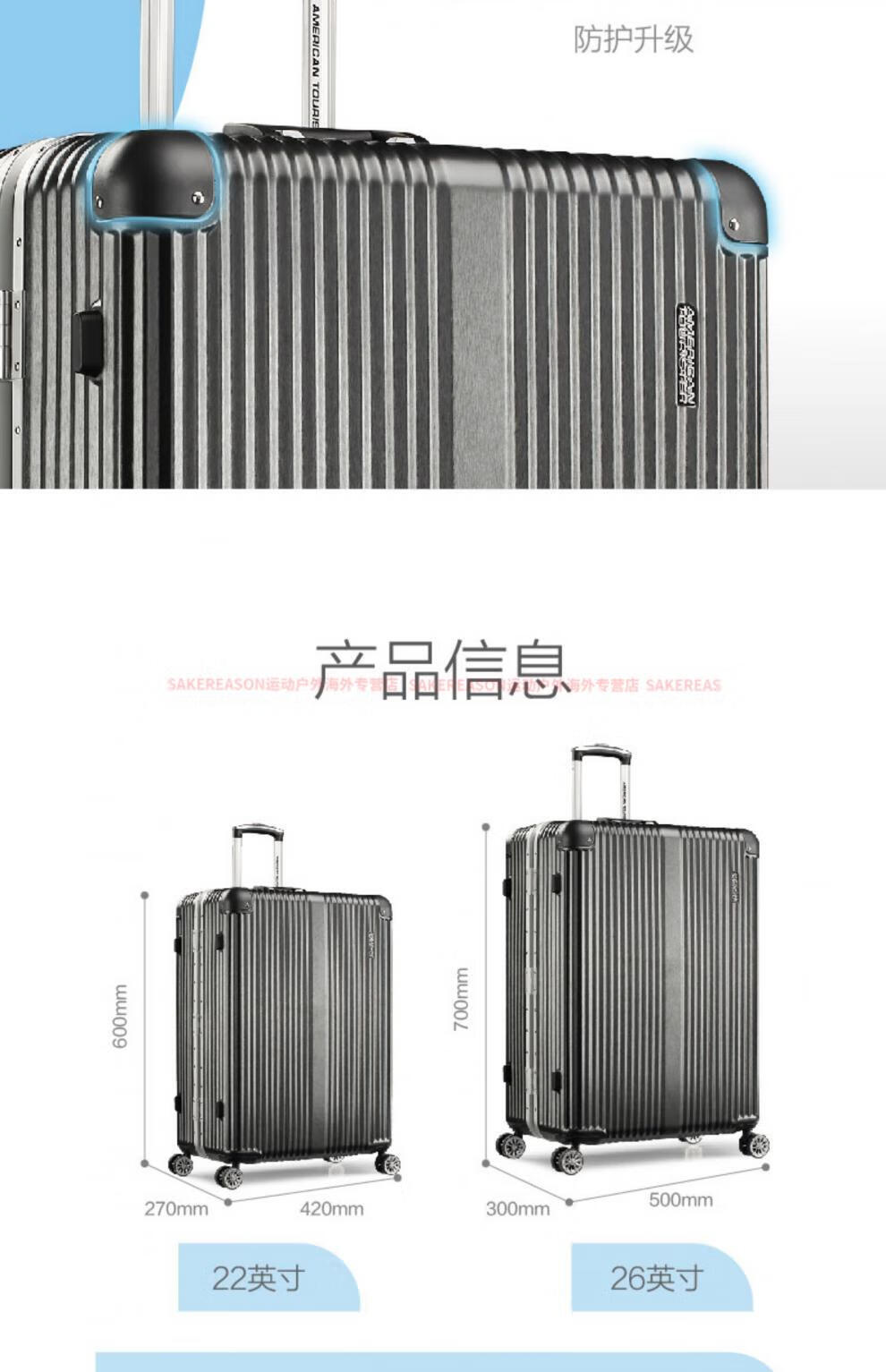 AMERICAN TOURISTER business aluminum frame aircraft wheel suitcase TZ7 men's and women's trolley case universal wheel large capacity password suitcase 26 inches rose gold