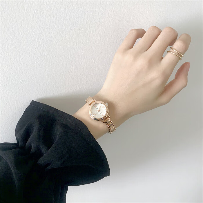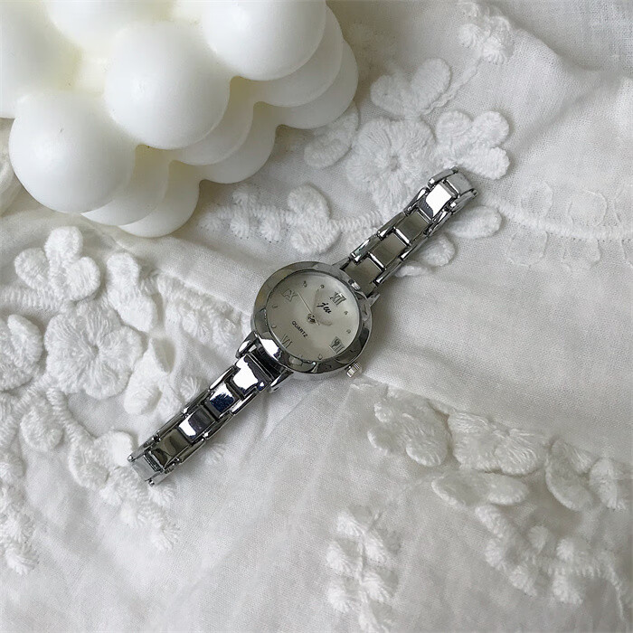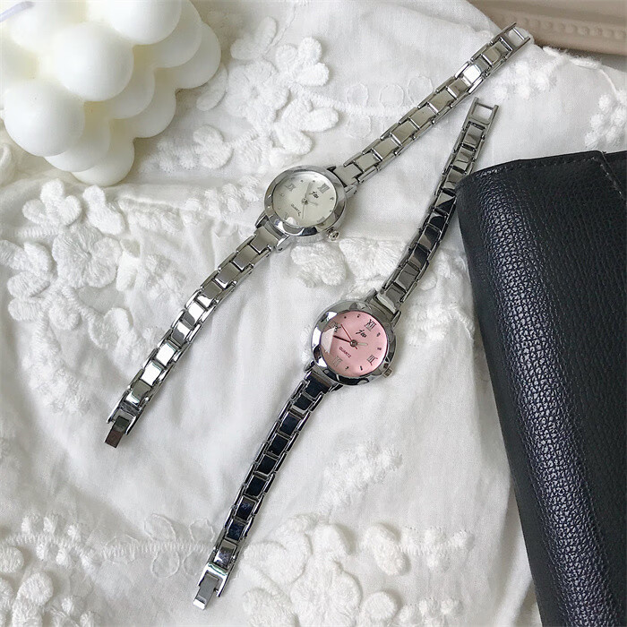 Shantou Lincun Mini Watch Women's Small and Exquisite Niche Design Bracelet Simple Temperament Student's New Thin Strap Quartz Watch Silver Strap Powder Plate (Flower Box + Spare Battery) Send Adjuster