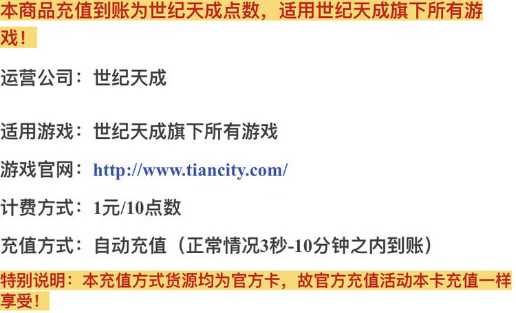 Century Tiancheng Card Sealer/Rocky Heroes/Kart Racing Points Century Tiancheng Point Card Fill in the Century Tiancheng Pass and place an order to automatically recharge 1 yuan 10 points