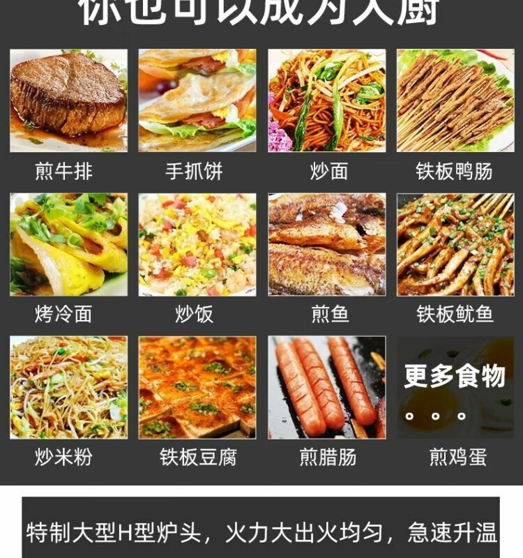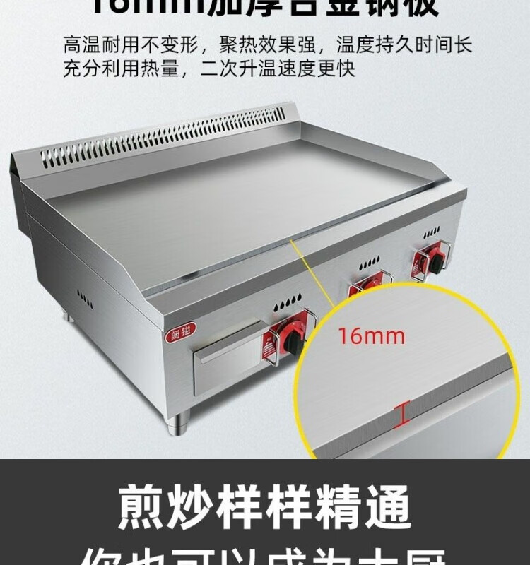 Triuside commercial electric griddle hand cake machine gas squid equipment frying electric heating cold noodle machine stall gas teppanyaki 0.6 meters - gas plated. Not black style