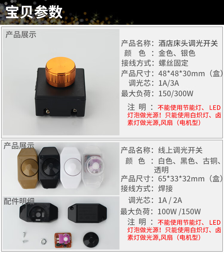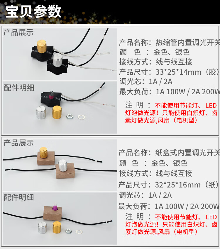 Shantou Lincun is suitable for hotel bedside table lamp switch dimmer knob lamp accessories dimmer switch household 22 built-in knob switch gold (cannot be dimmed)