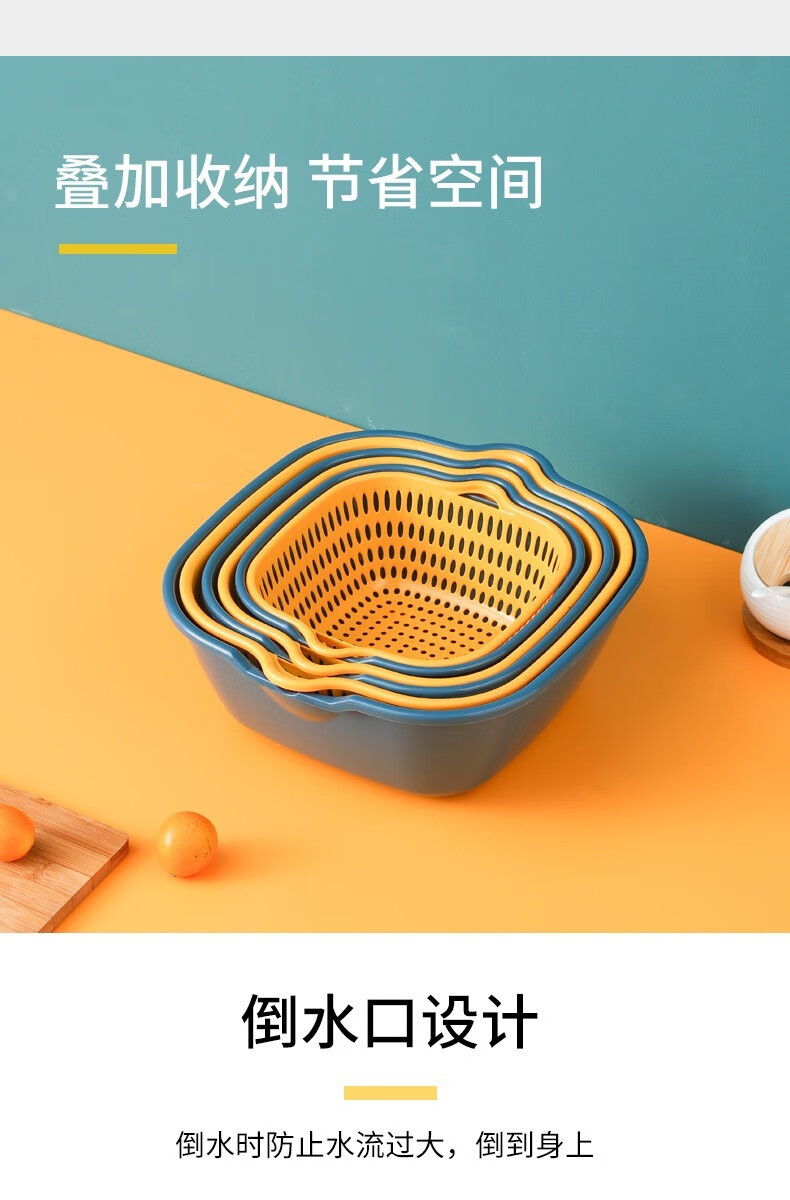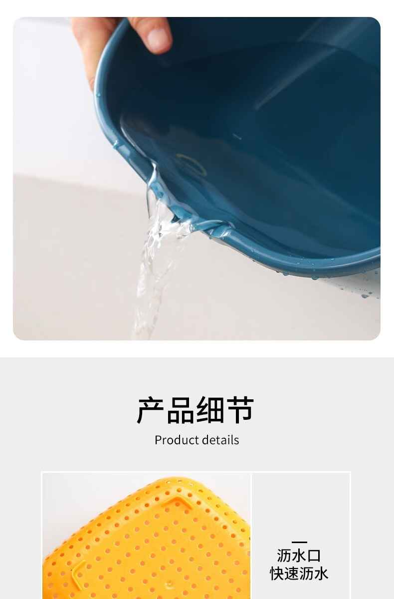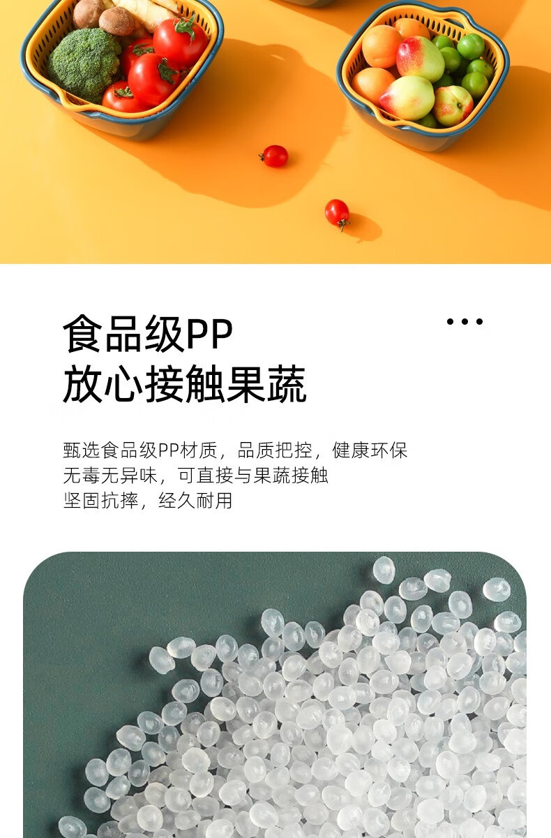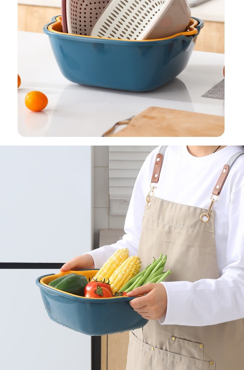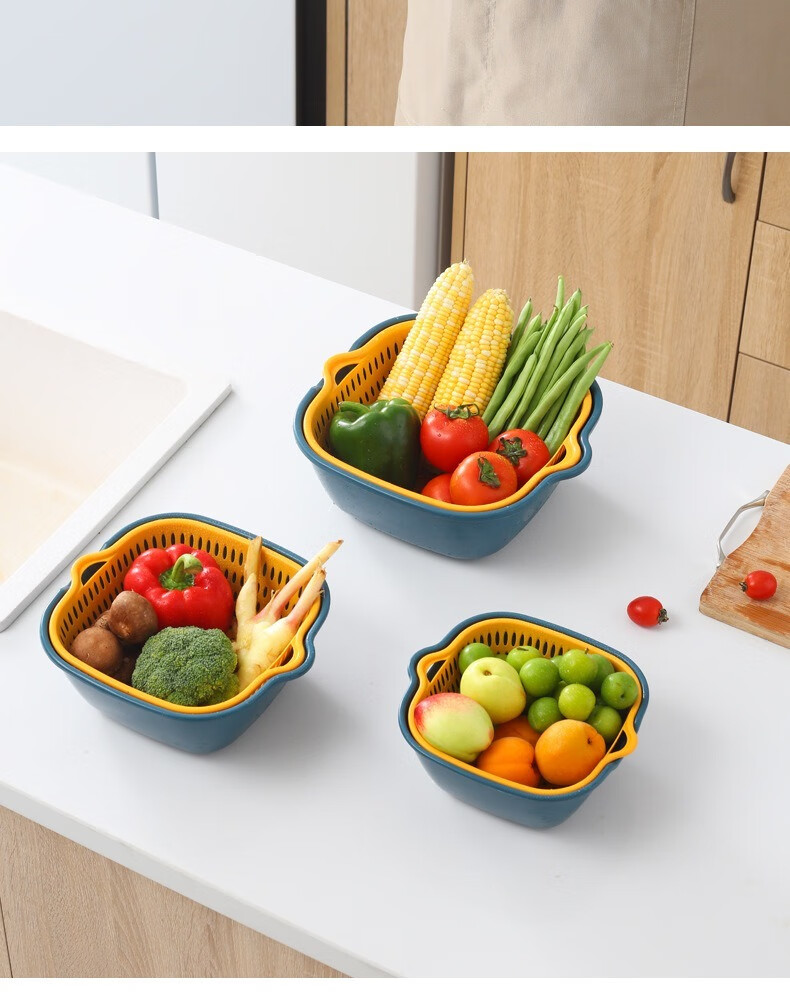 LZJV double-layer plastic vegetable washing and draining basket kitchen artifact multi-functional living room fruit plate household fruit and vegetable basket storage double-layer small rounded corners two-piece trial set