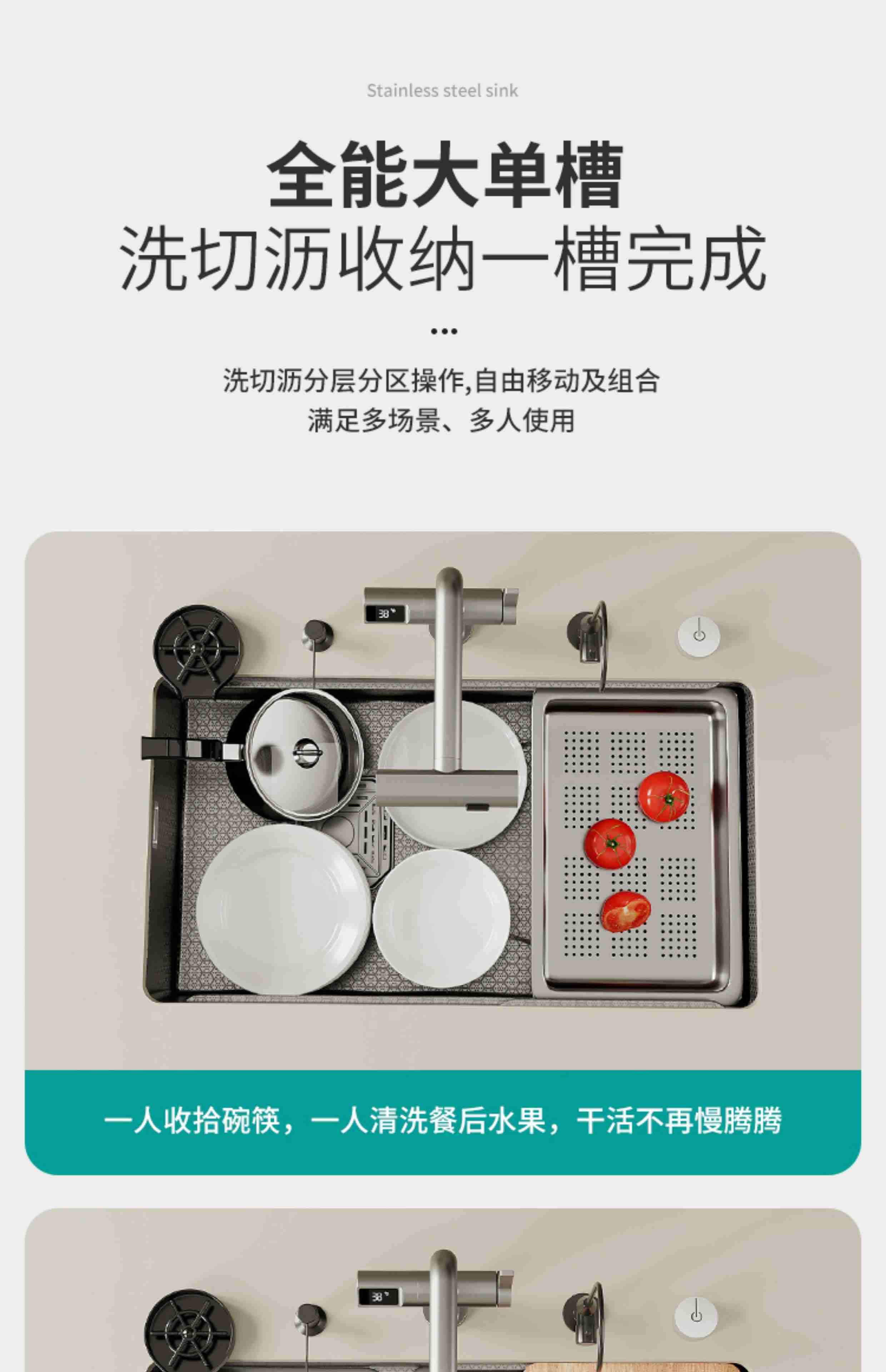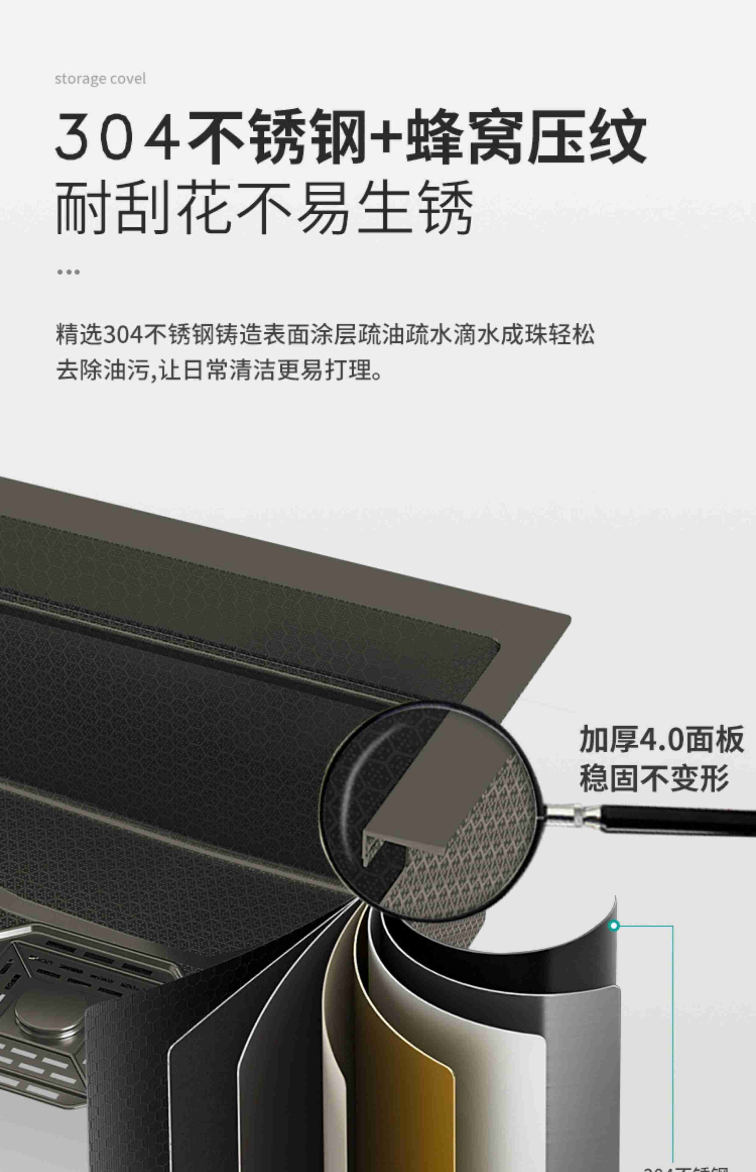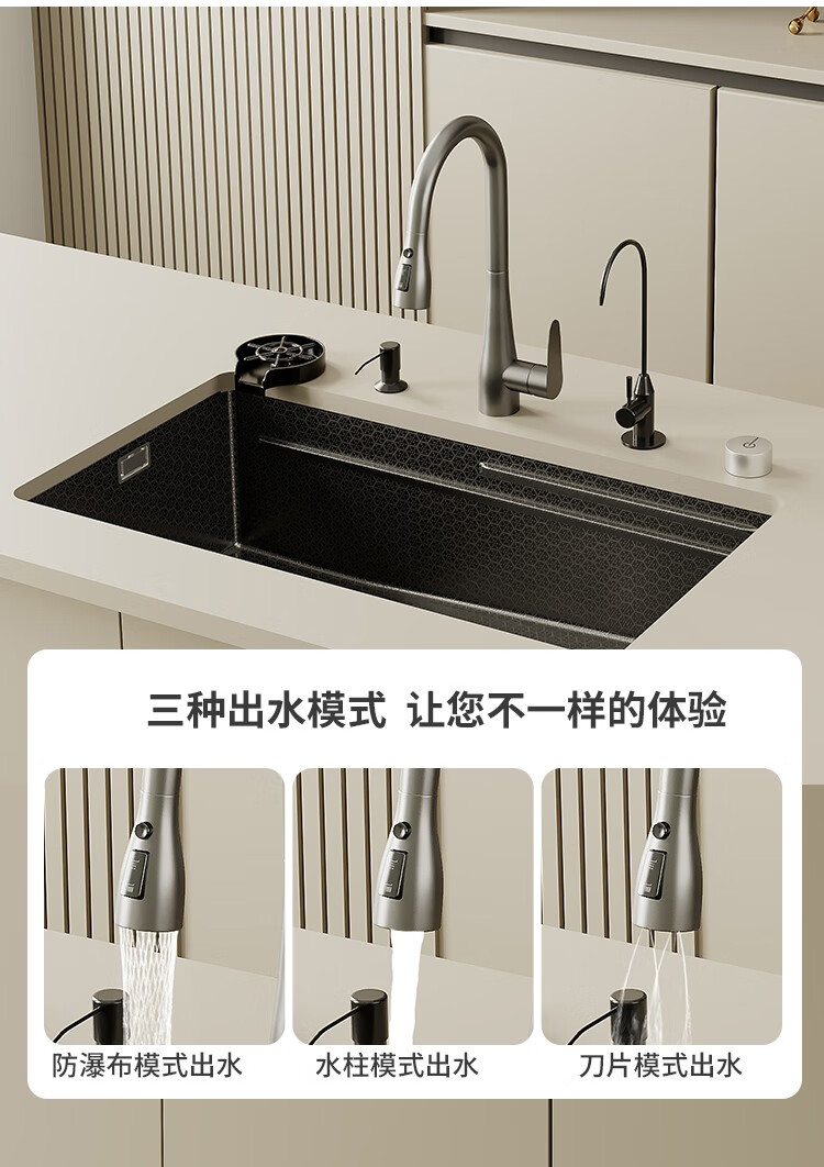 Haiaode German TNTG honeycomb thickened 304 stainless steel 4MM kitchen sink gun gray nano single-slot under-counter basin vegetable basin 80*40 under-counter basin + induction rain shower (fully configured) 4