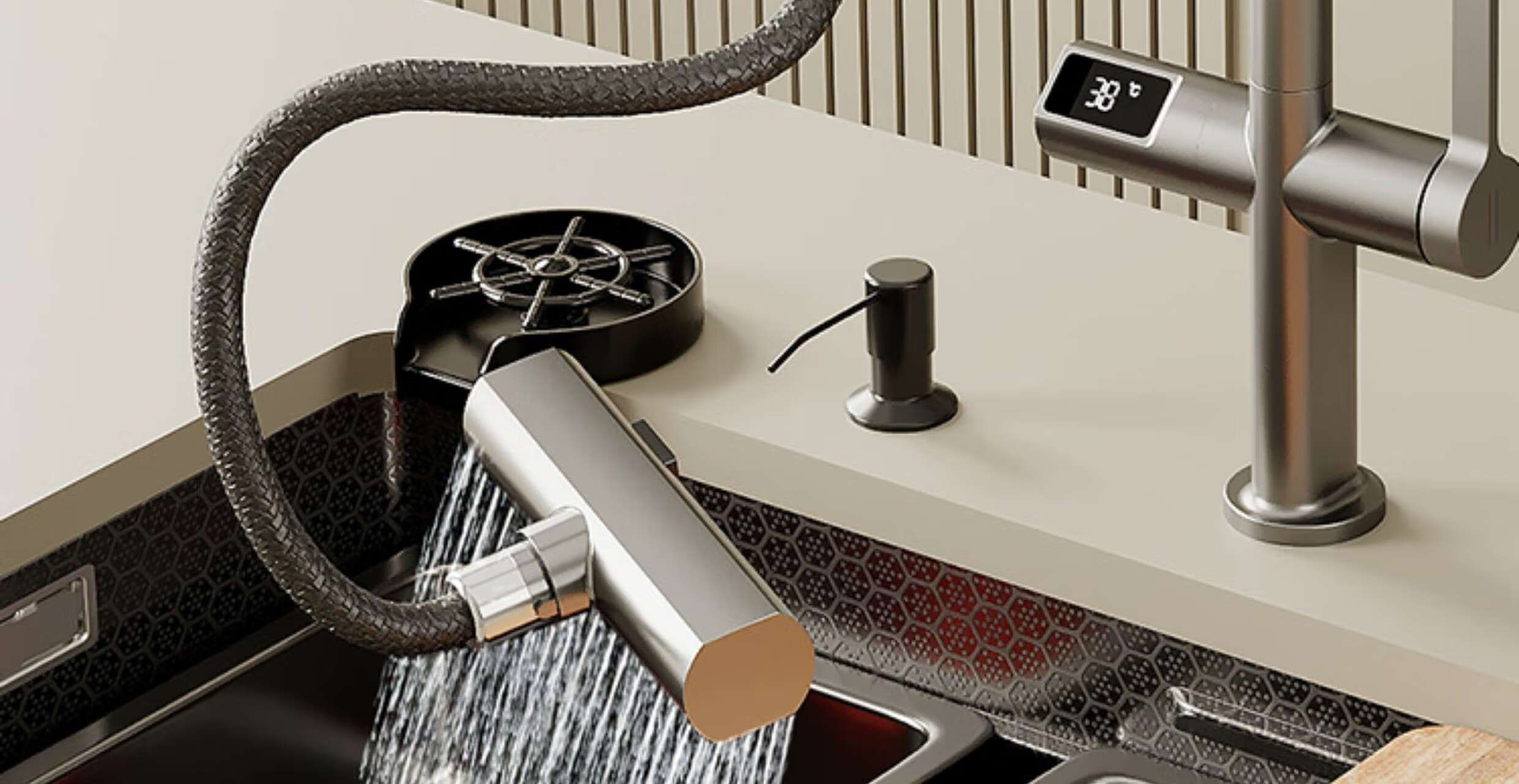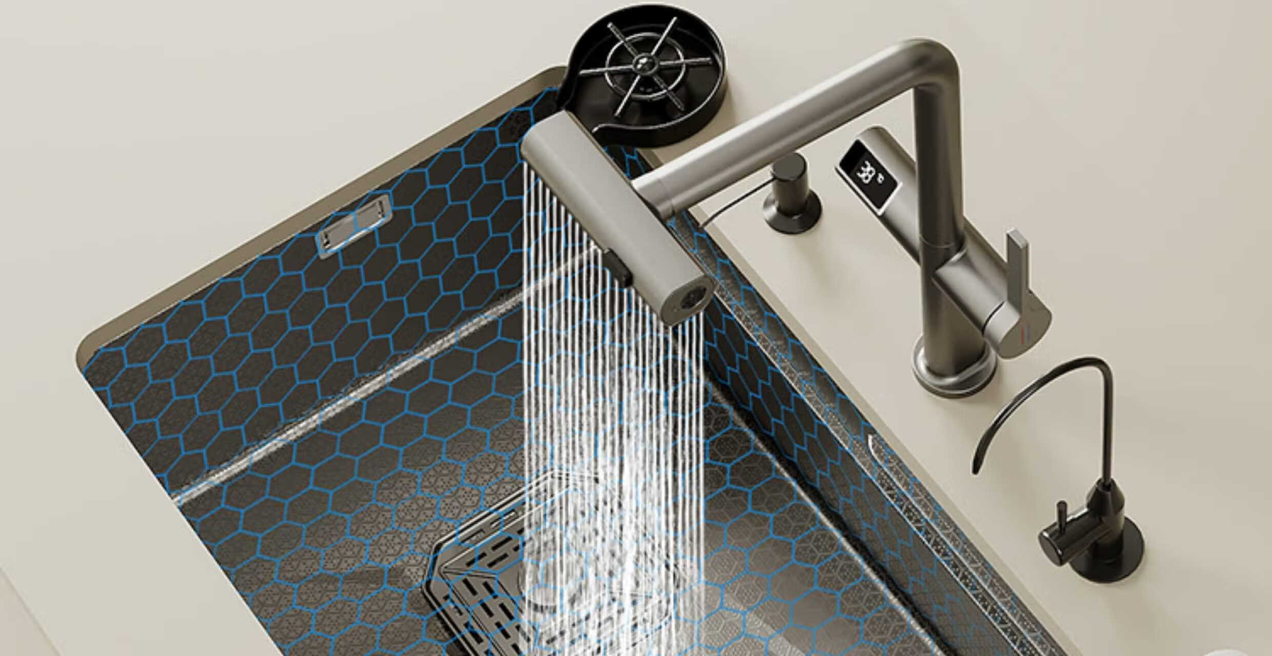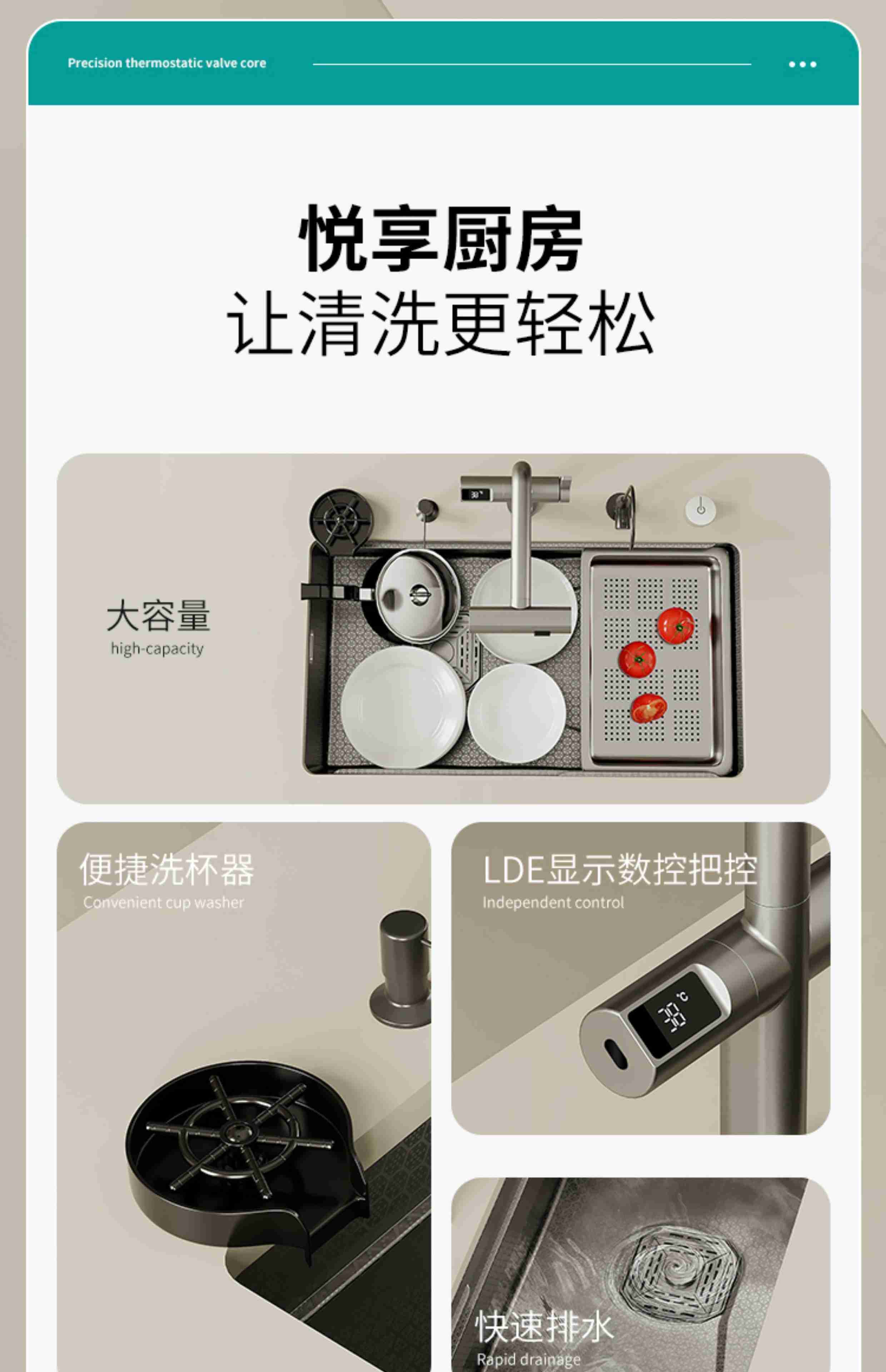 Haiaode German TNTG honeycomb thickened 304 stainless steel 4MM kitchen sink gun gray nano single-slot under-counter basin vegetable basin 80*40 under-counter basin + induction rain shower (fully configured) 4