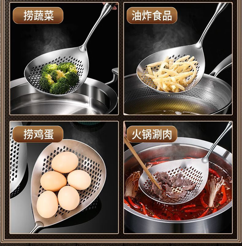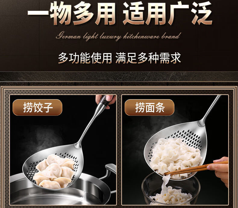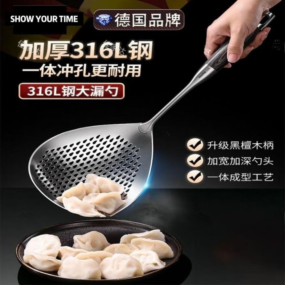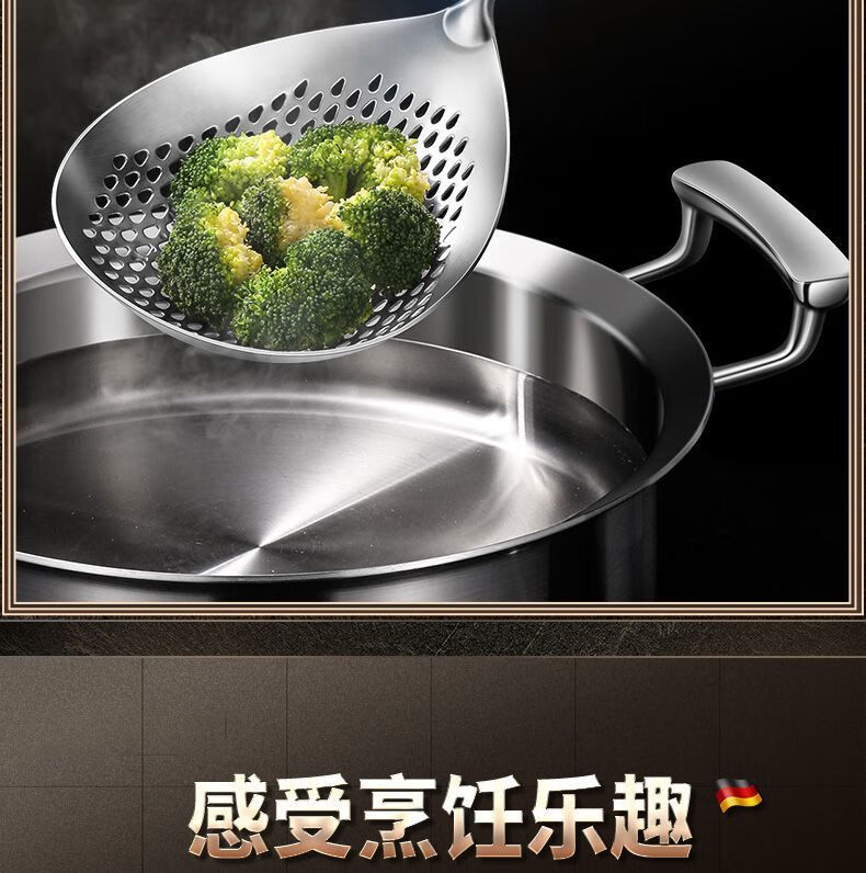 LZJV German stainless steel colander for noodles, draining and oil colander, household kitchen drain, thickened, widened and enlarged colander, food-grade 316 material, German-style all-steel handle, extra thick and durable for ten years