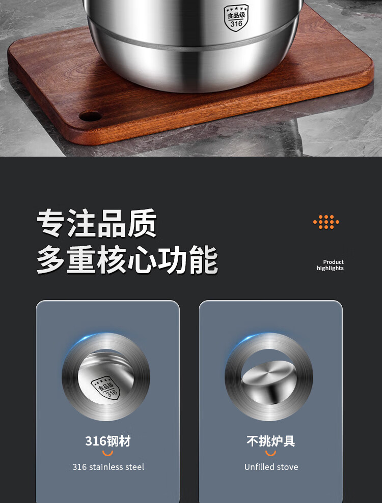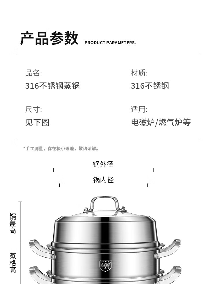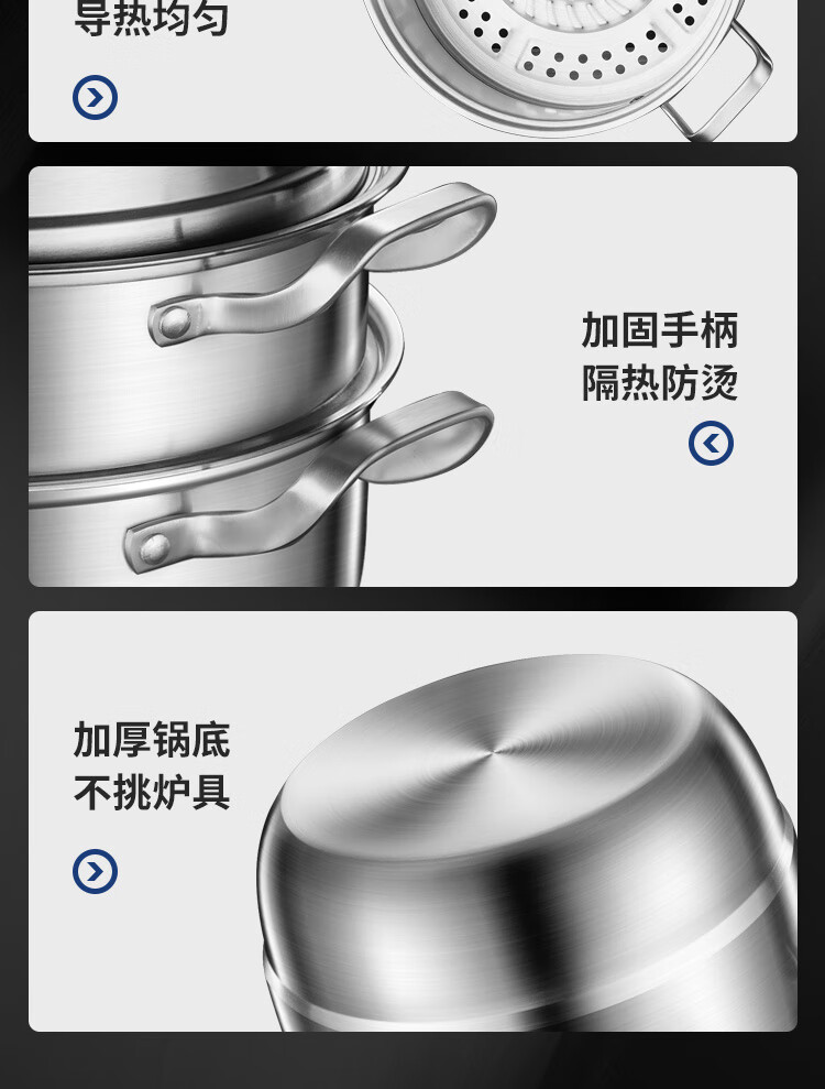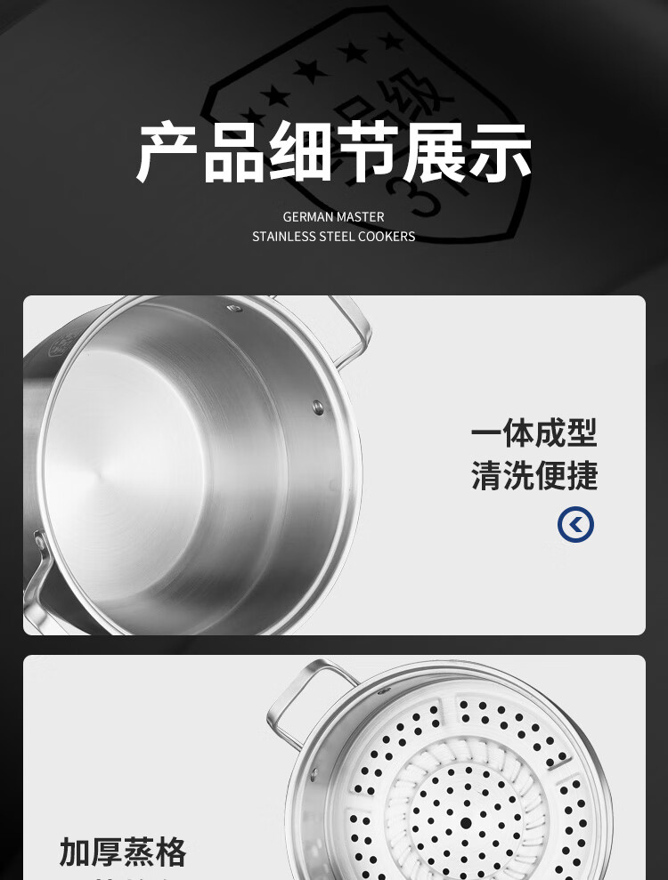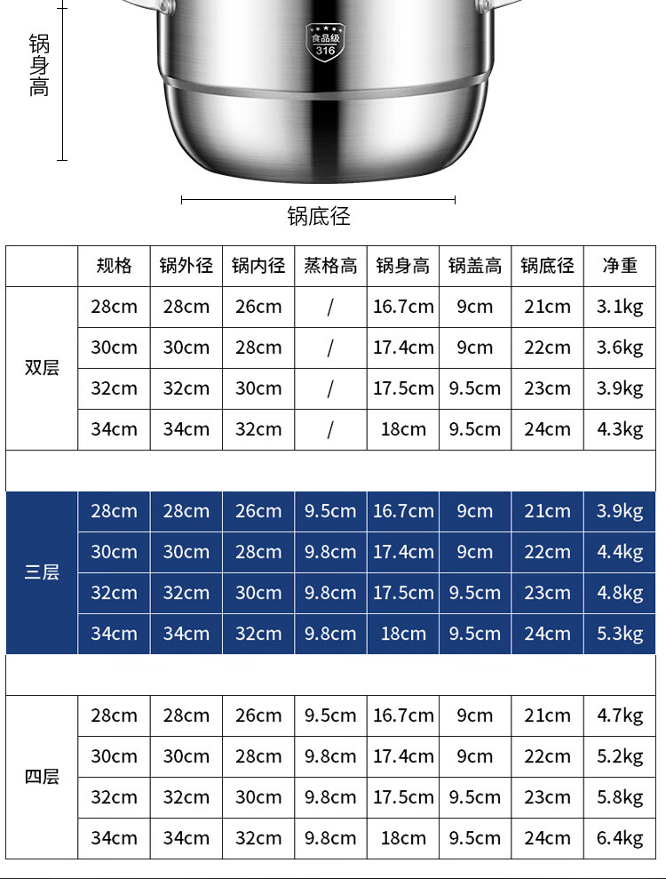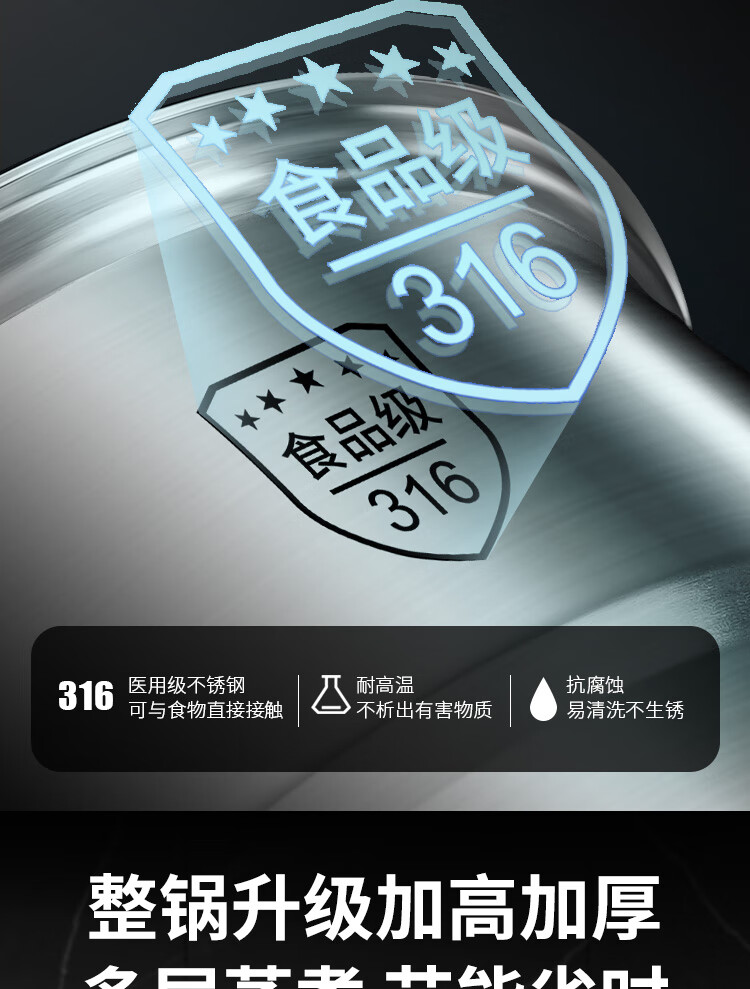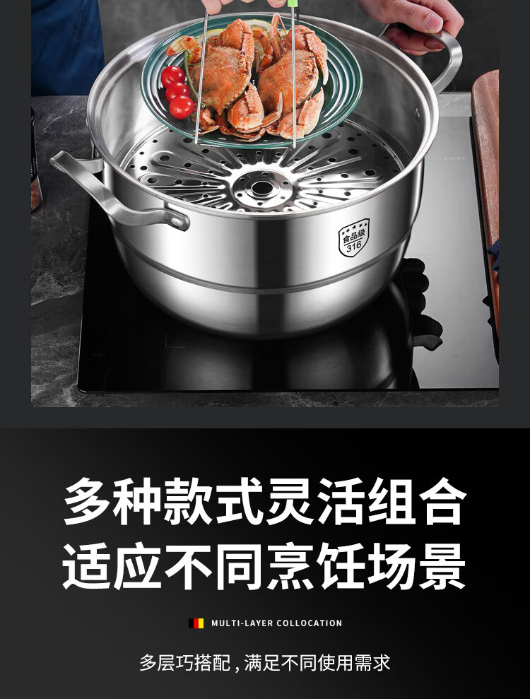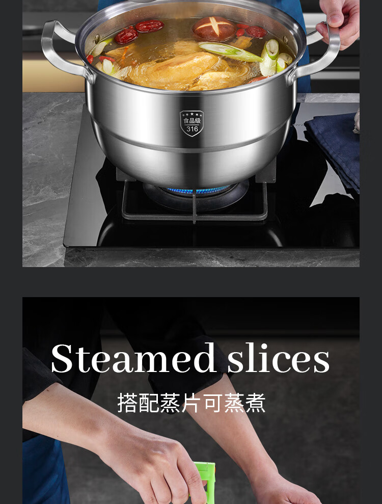 Fat Donglai's same style steamer extra thick and high 316 stainless steel thickened double three or four layers household soup pot one-piece molded thickened 36 three layers (1 pot + 2 steaming sheets + 1 steaming grid 1cm 10-year warranty, one-piece molding)