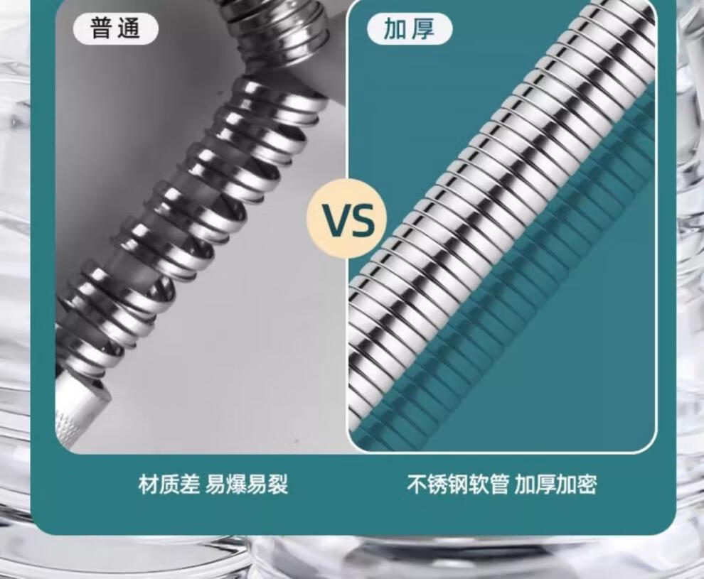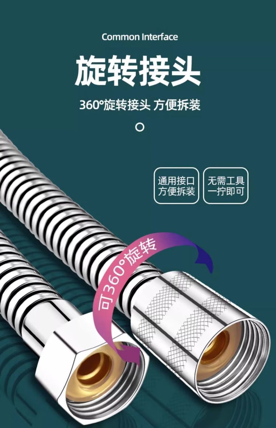 Qinkai explosion-proof high-pressure shower pipe extended rain shower head shower head bathroom water heater universal hose 1.2 meters hose
