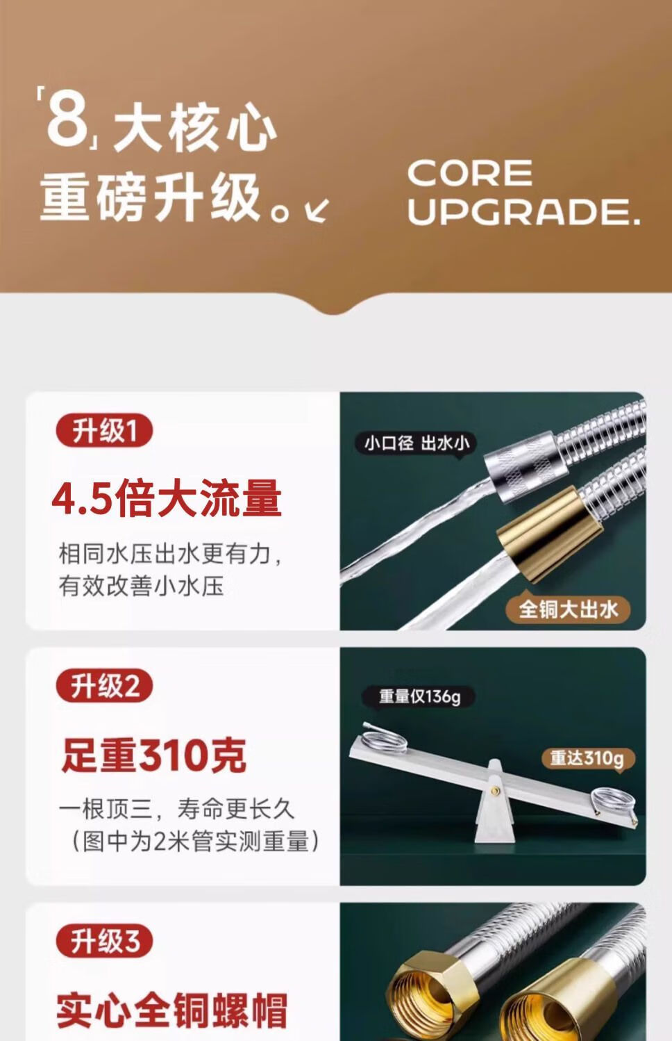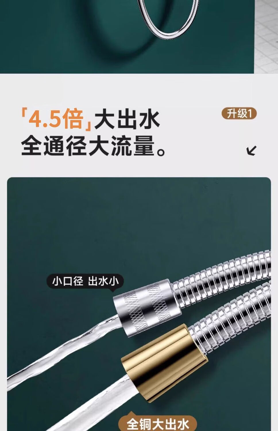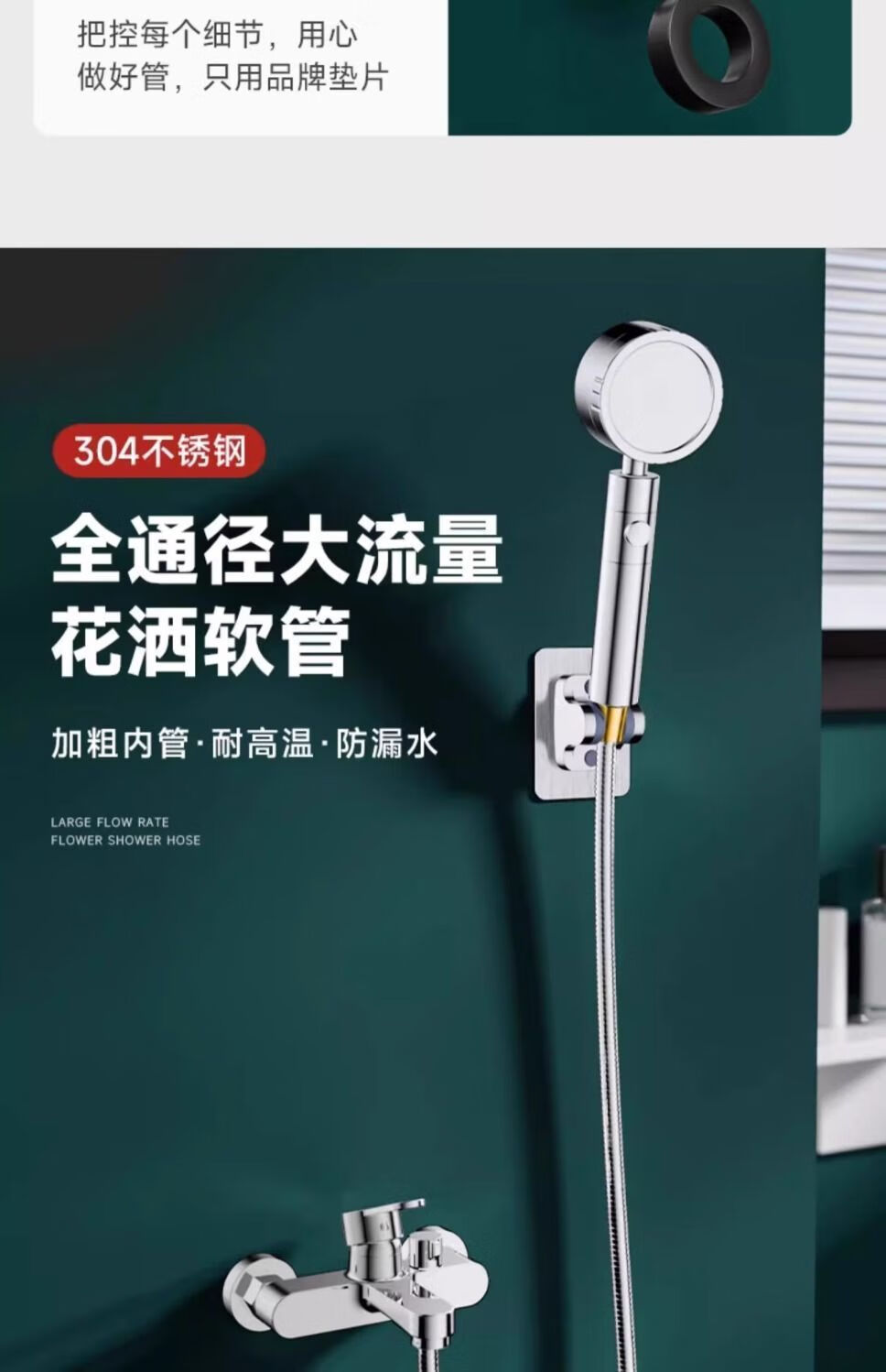 Yaotian Yezhuyuan large-flow shower hose shower shower pipe stainless steel flower wine drying silver 3-meter large inner pipe with 4.5 times the power of large water outlet and seat