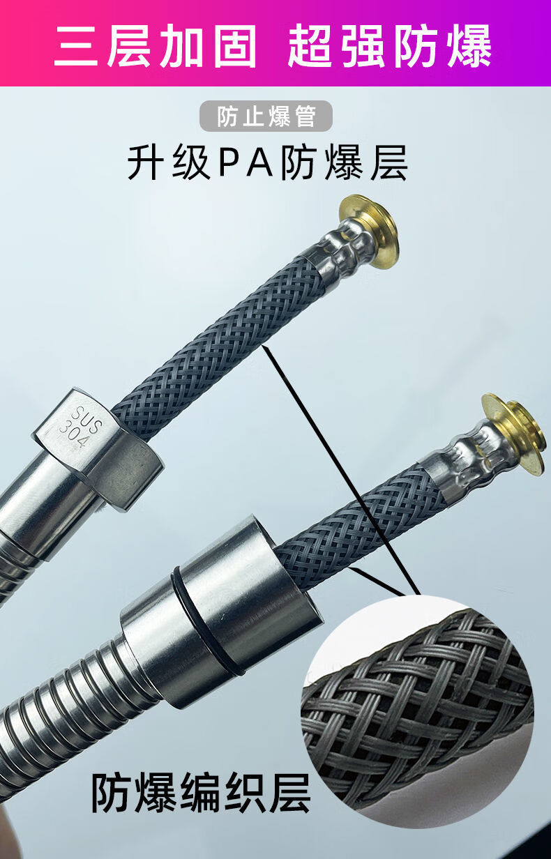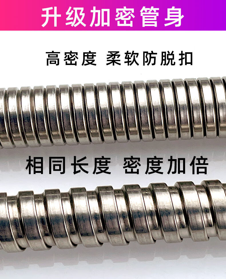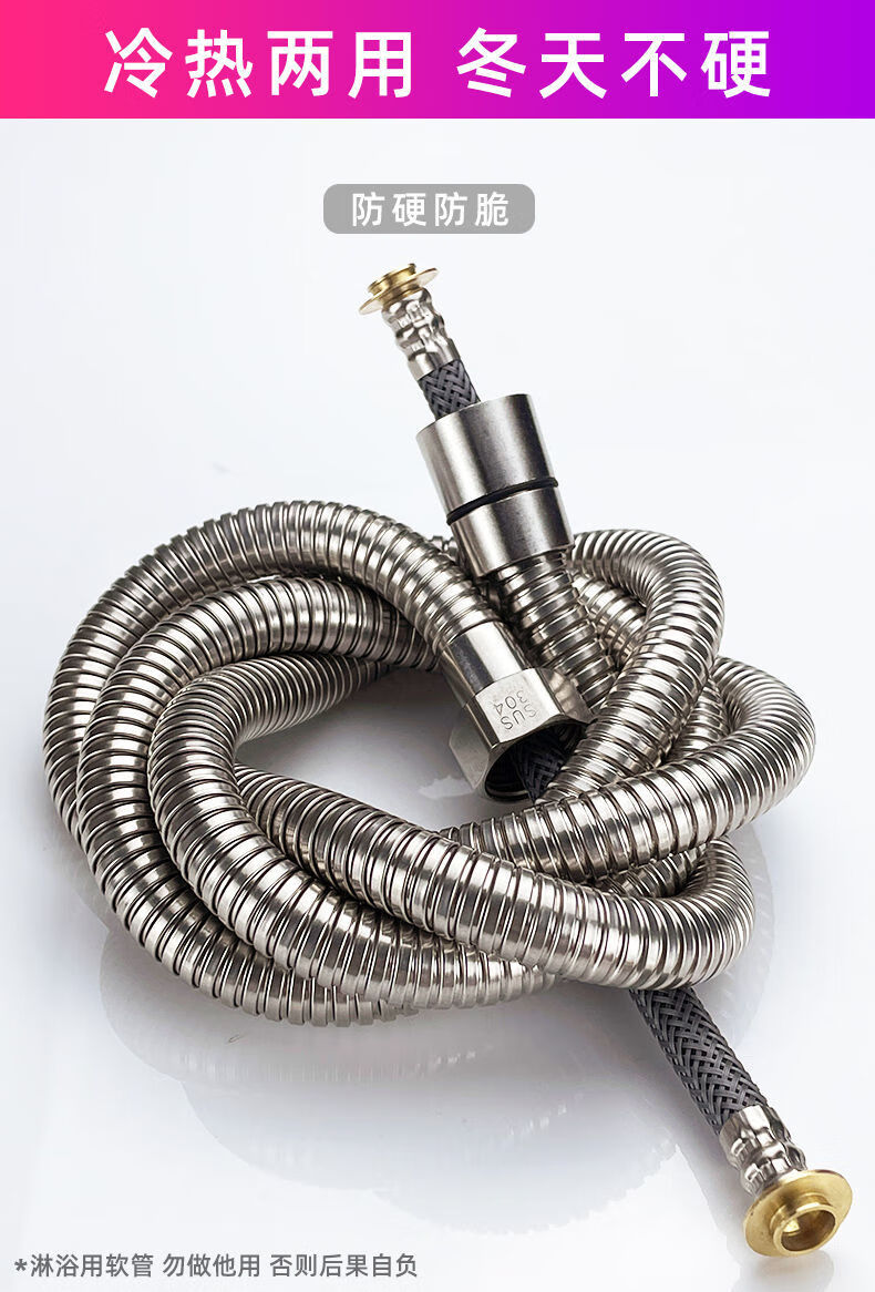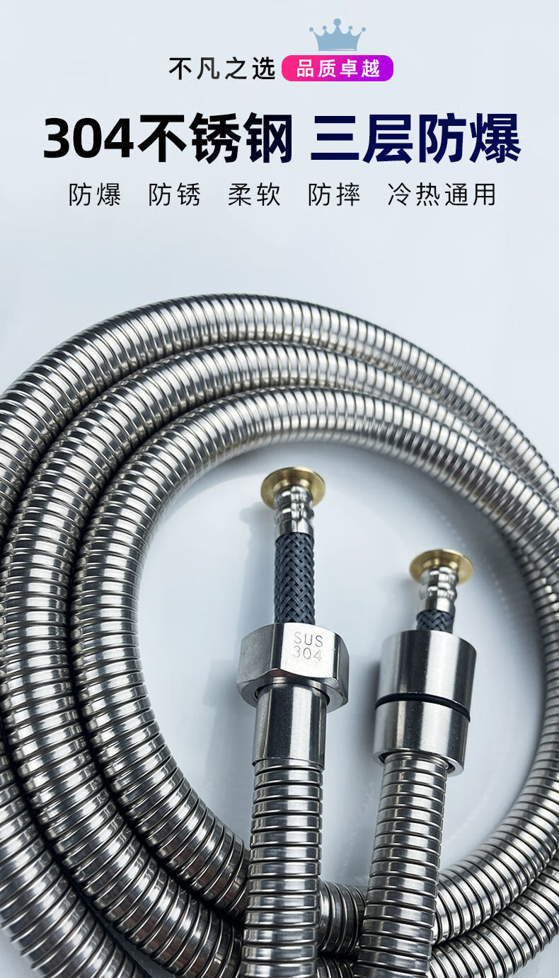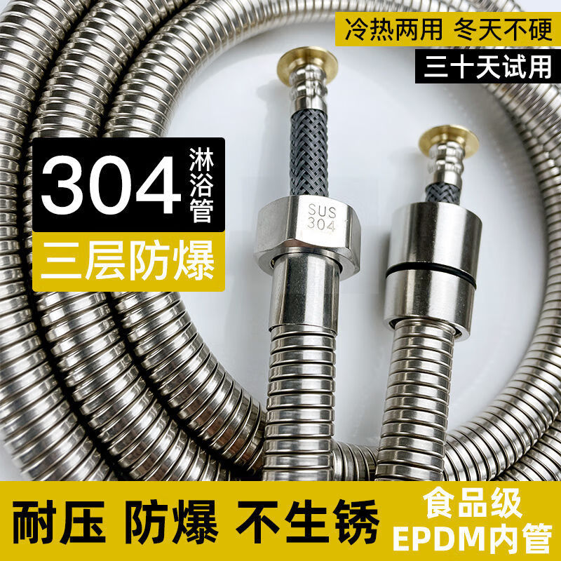 Qinkai shower hose stainless steel hose shower pipe bathroom water heater accessories nozzle thickened anti-304 double steel cap 3-layer braided-anti-riot and high-pressure anti-1.5 meter stainless steel explosion-proof thickened bath pipe nut broken