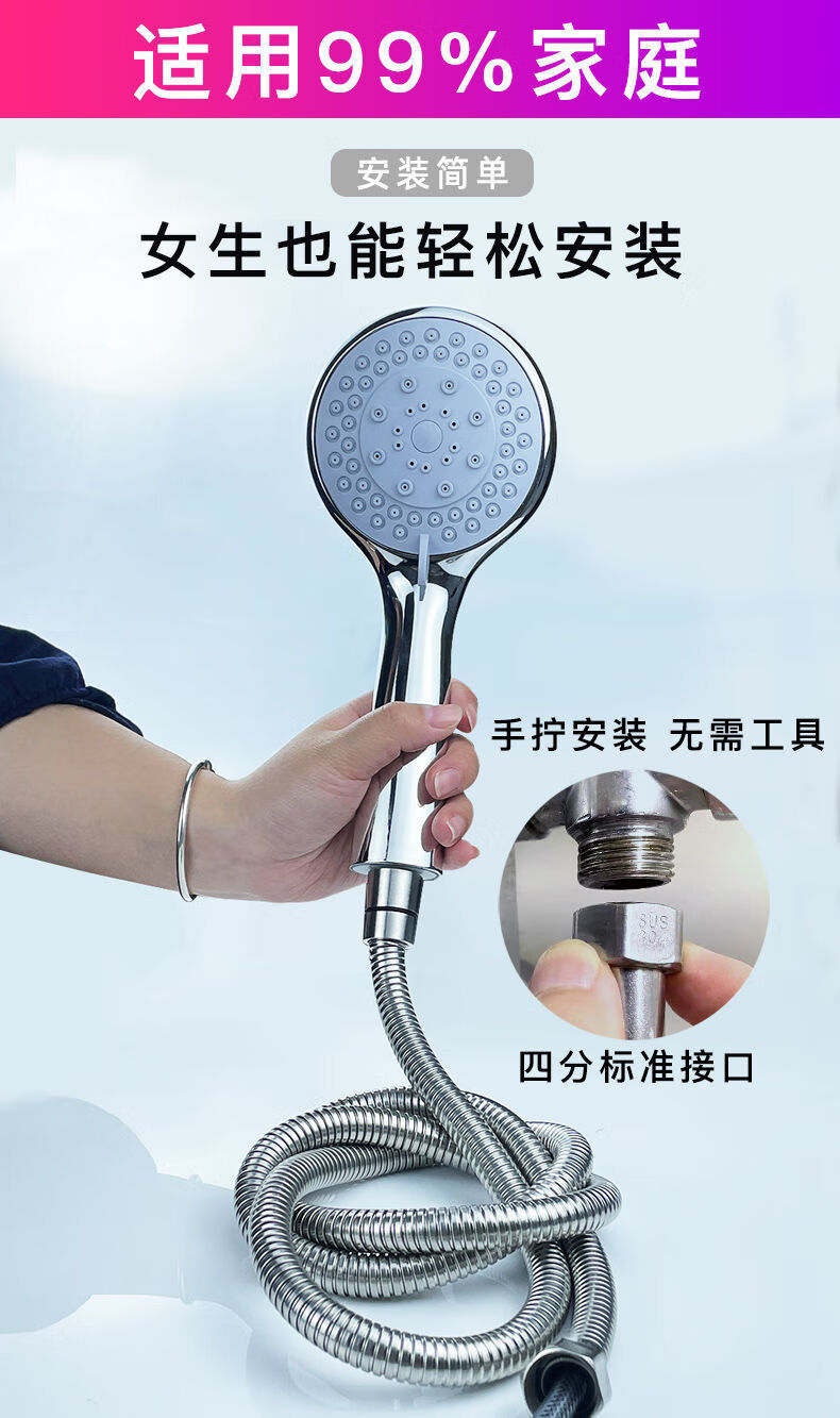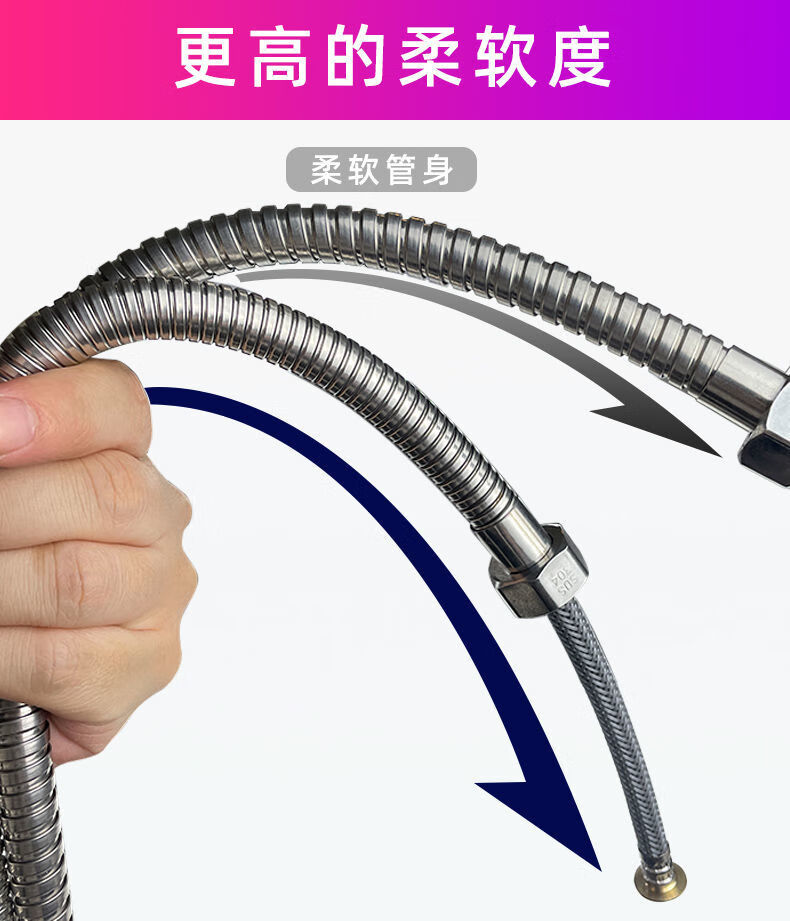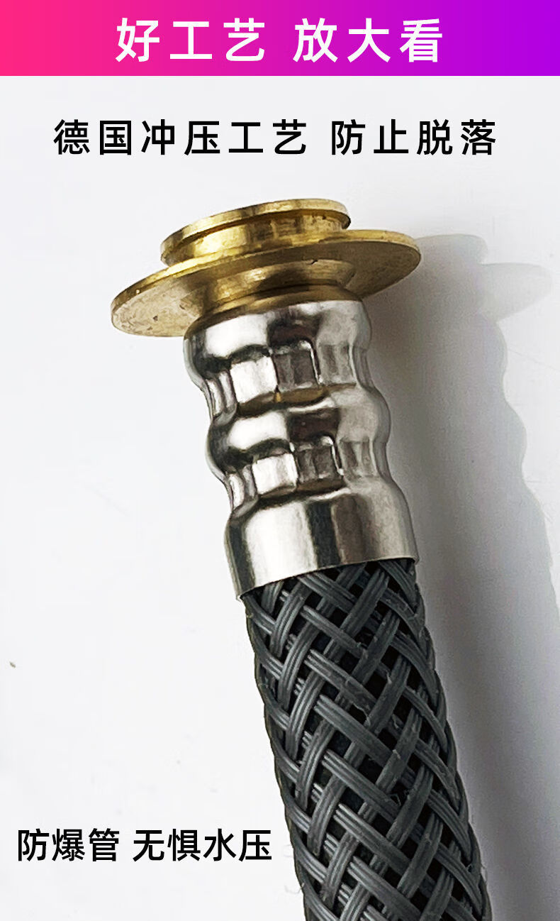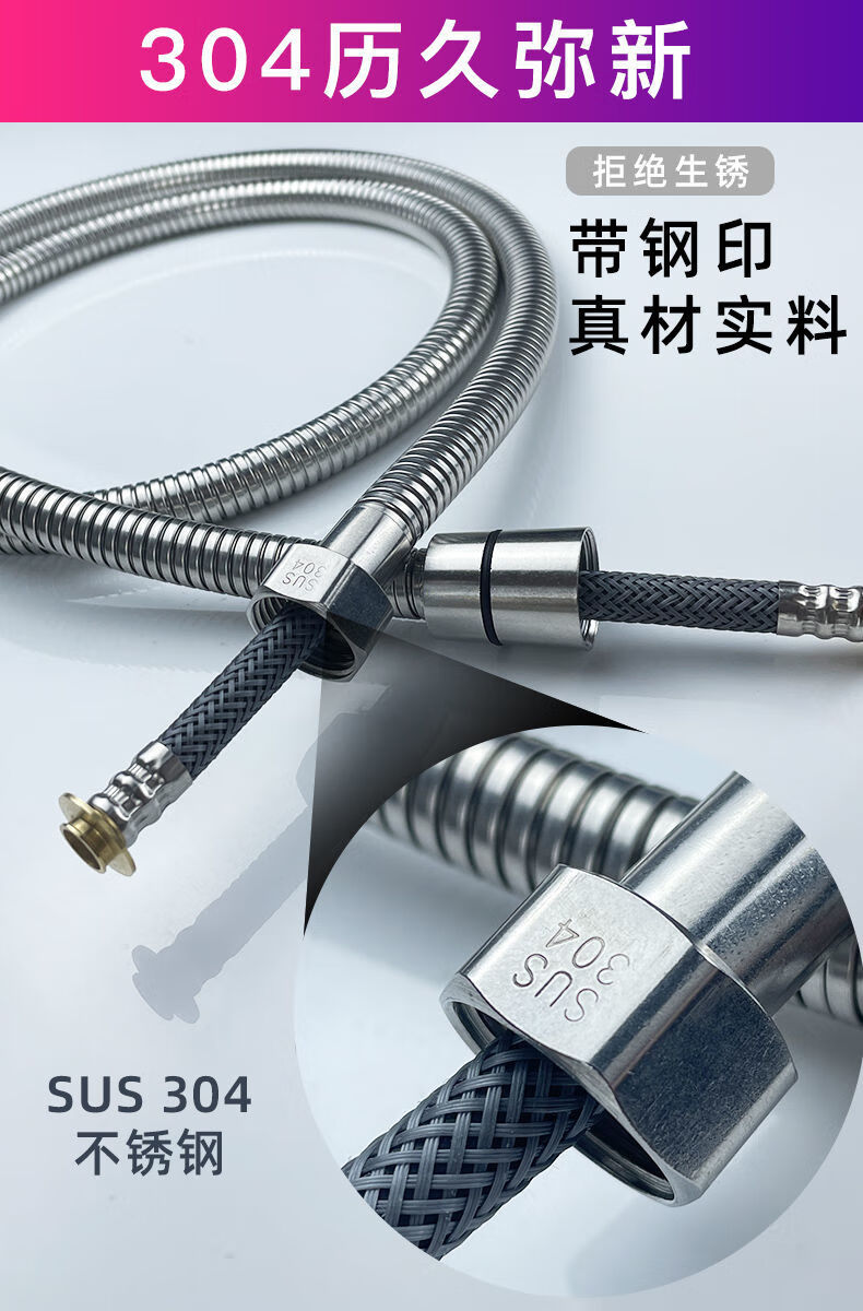 Qinkai shower hose stainless steel hose shower pipe bathroom water heater accessories nozzle thickened anti-304 double steel cap 3-layer braided-anti-riot and high-pressure anti-1.5 meter stainless steel explosion-proof thickened bath pipe nut broken