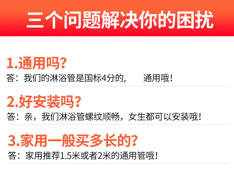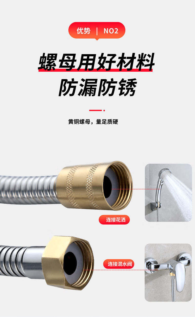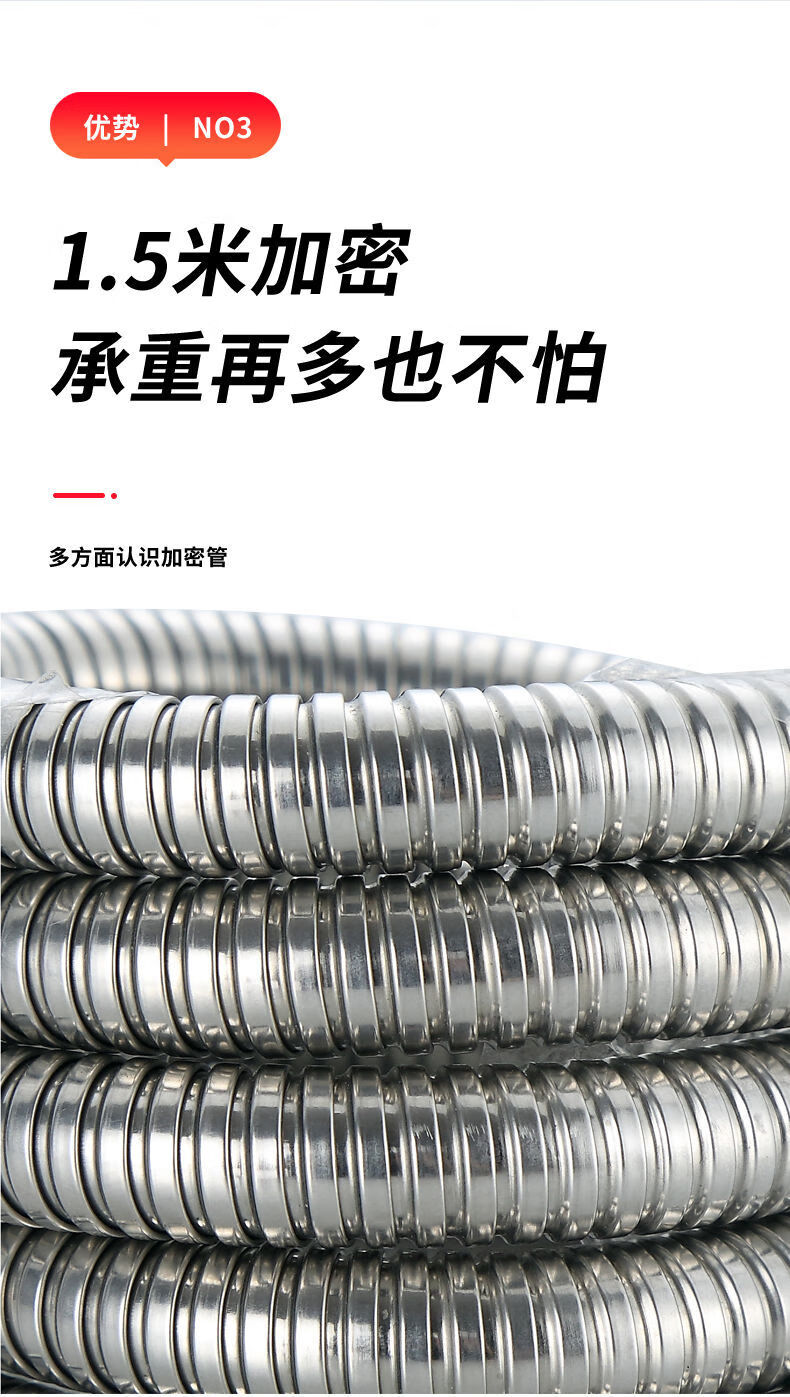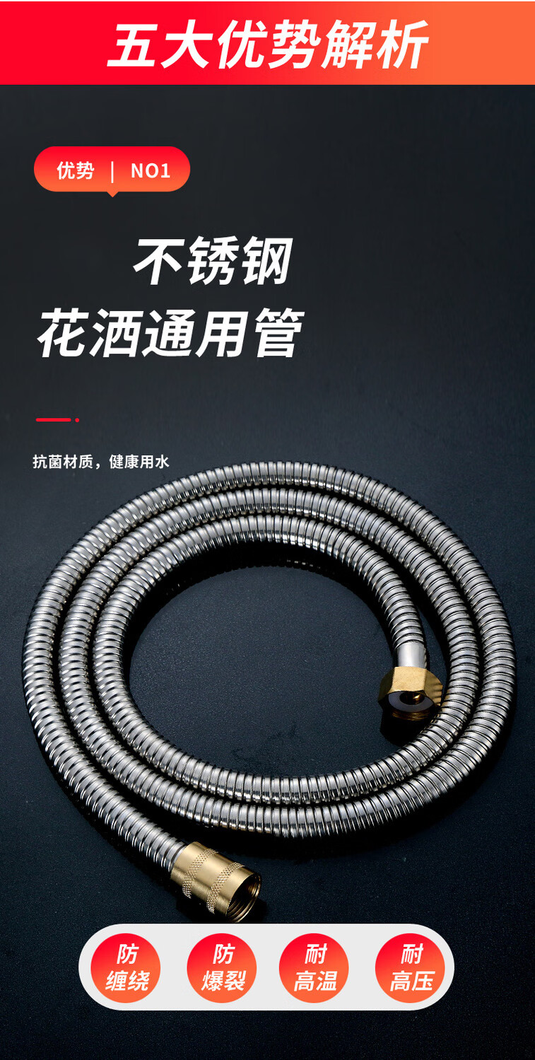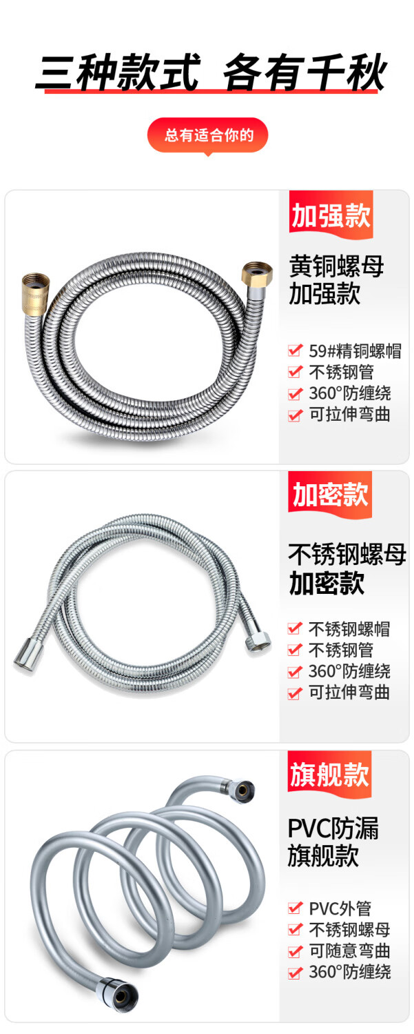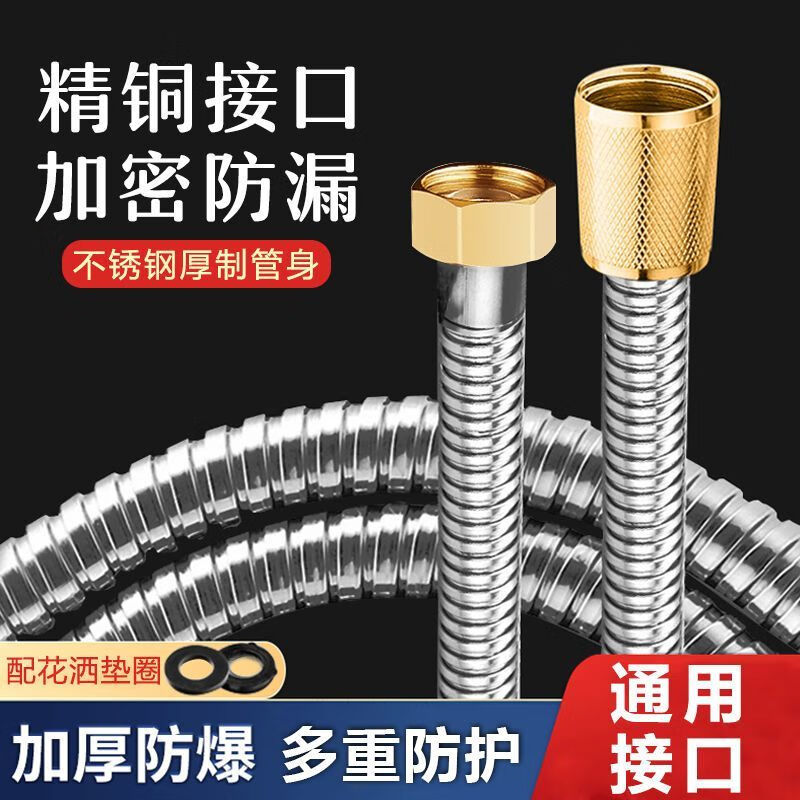 Qinkai brass interface stainless steel shower hose shower head hot water bathroom water inlet pipe 1/1.5/2/3 meters store manager brass head encryption reinforced pipe 1.5 meters