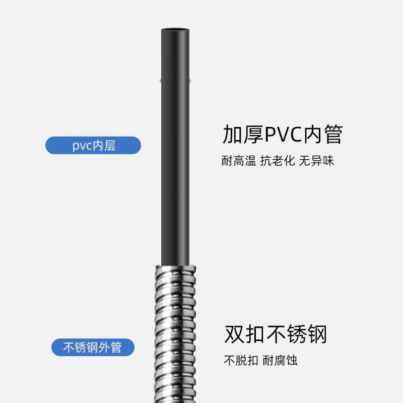 Yaotian shower hose 1.5/2/2.5 meters encrypted explosion-proof shower hose water heater bathroom shower head thickened 304 spring tube (lifetime guarantee) 2 meters single hose