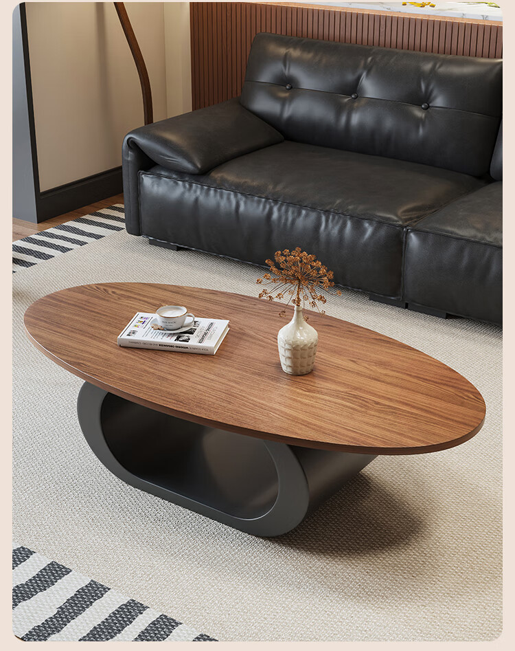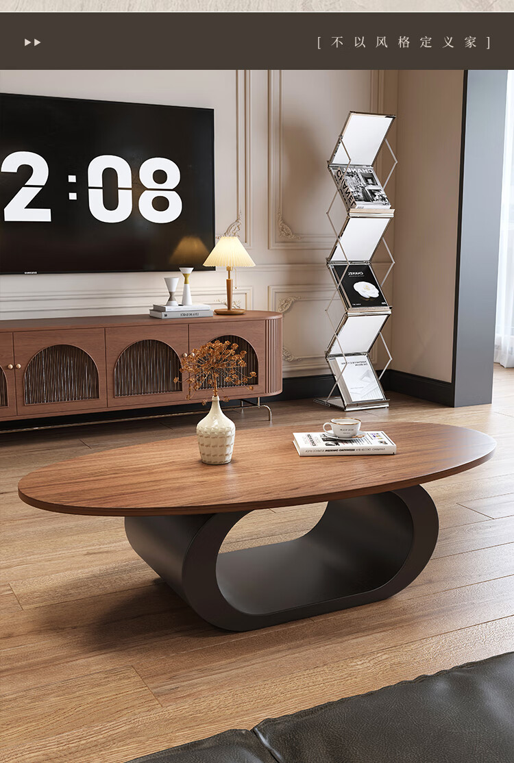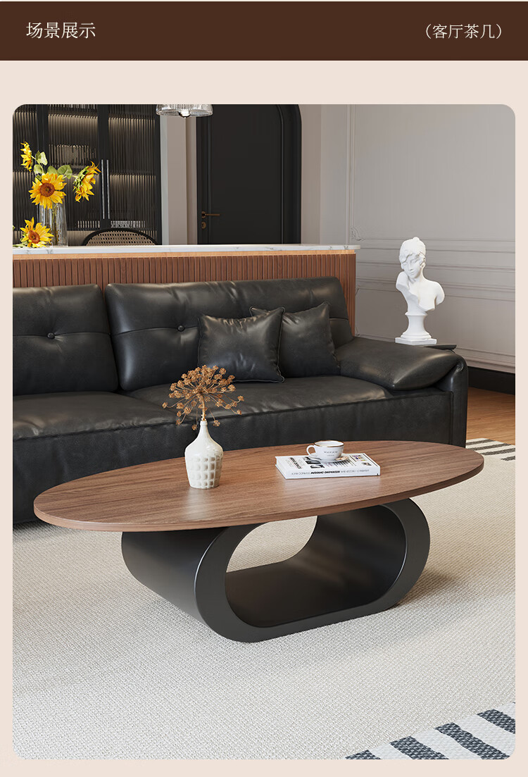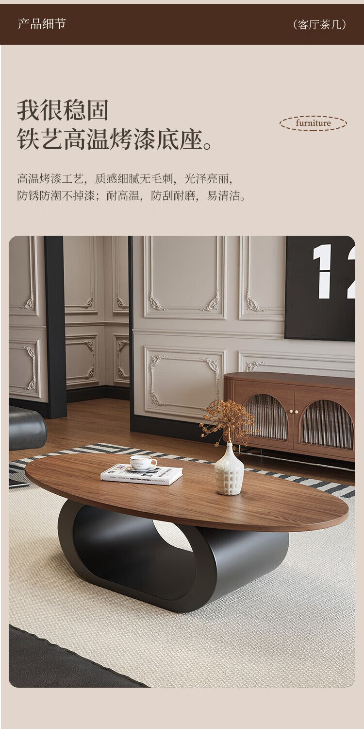 Longyueli solid wood oval tea table living room light luxury high-end 2025 new French retro size small tea table table black frame 130cm walnut color