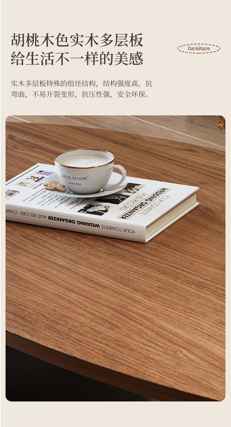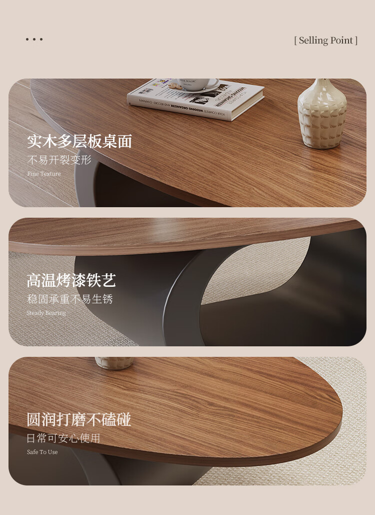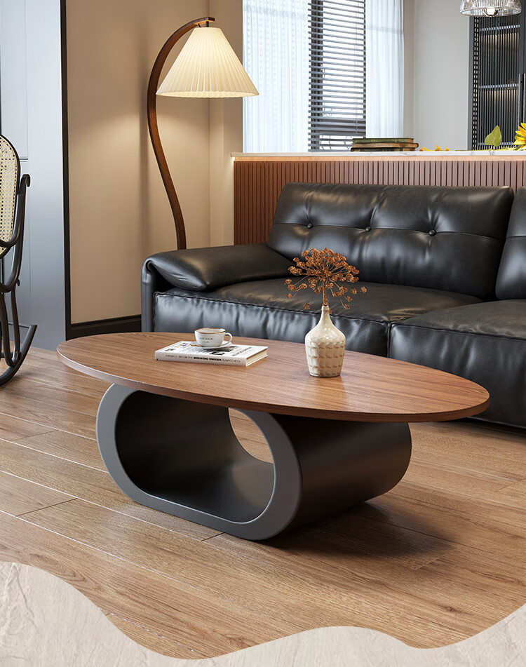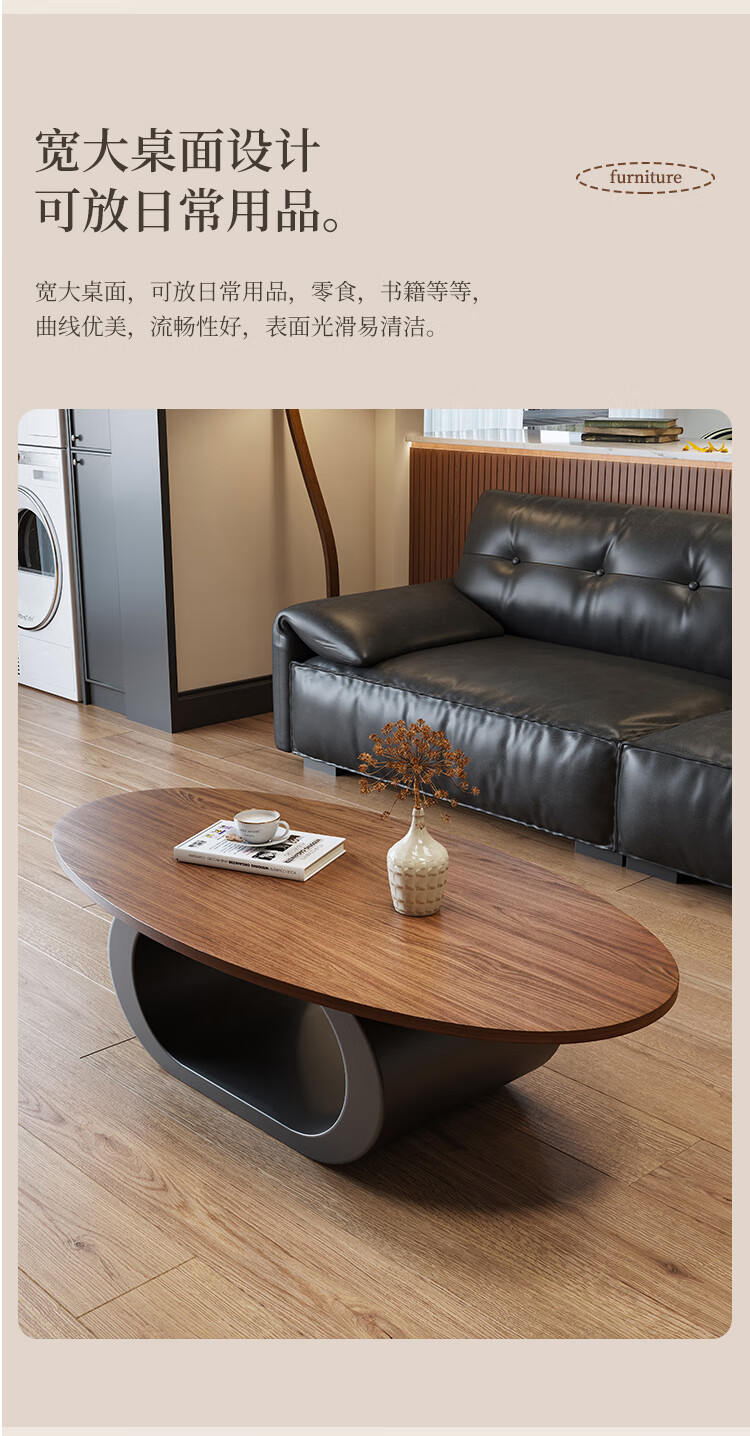 Longyueli solid wood oval tea table living room light luxury high-end 2025 new French retro size small tea table table black frame 130cm walnut color