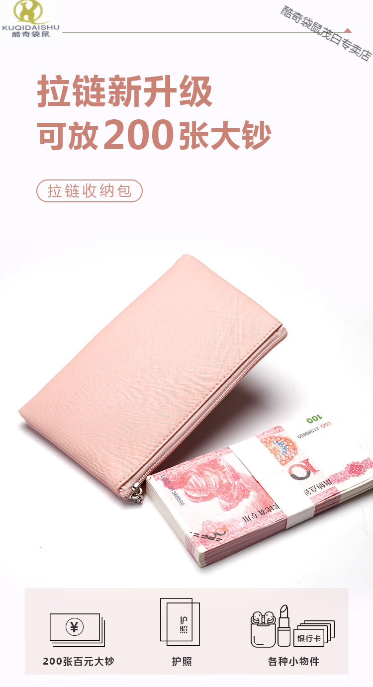 KUQIDAISHU Italian craft wallet women's large-capacity cash storage bag long wallet men's banknote storage bag black