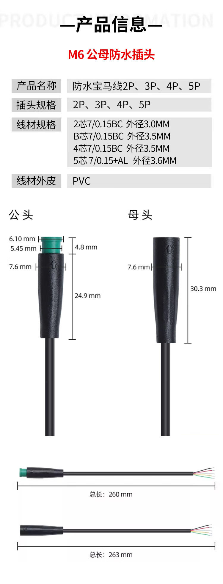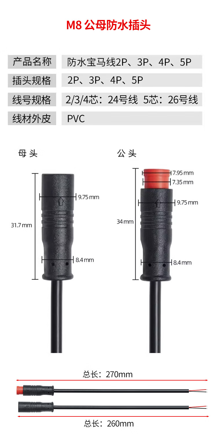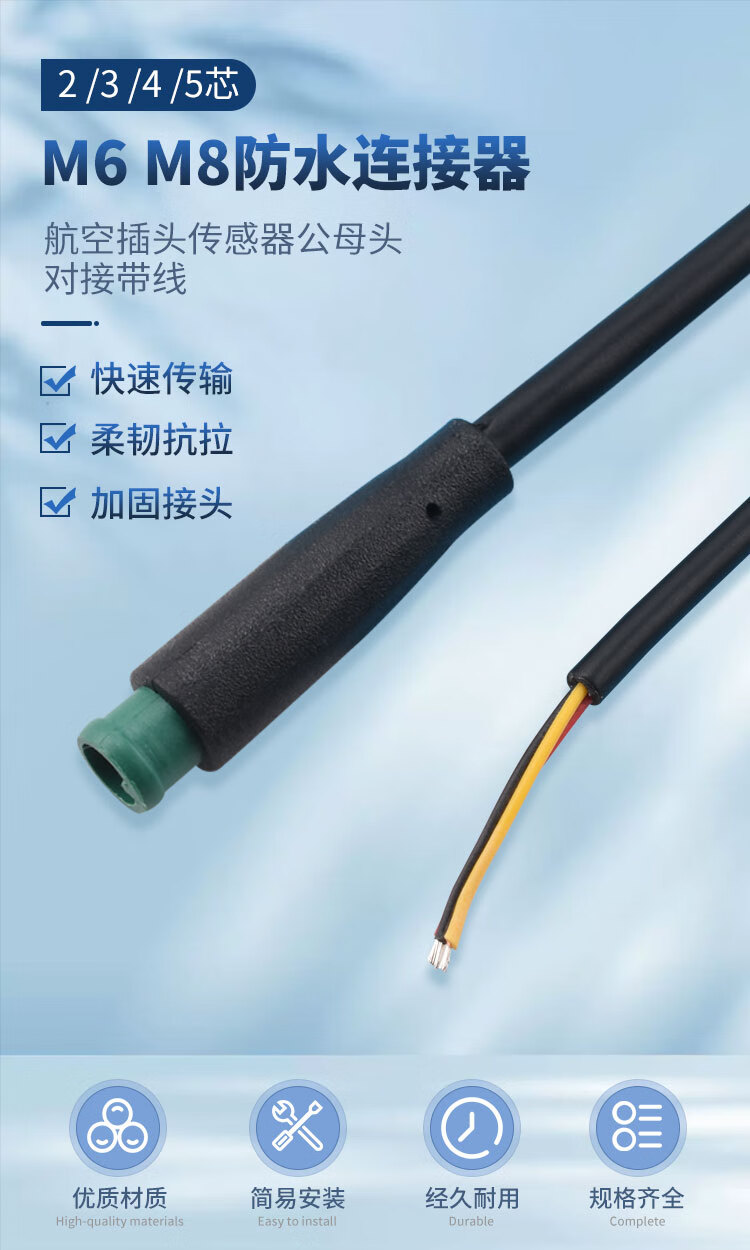 M6 M8 waterproof connector aviation plug 2 3 4 5-core sensor male and female connector with line M6-3P male 0.25m