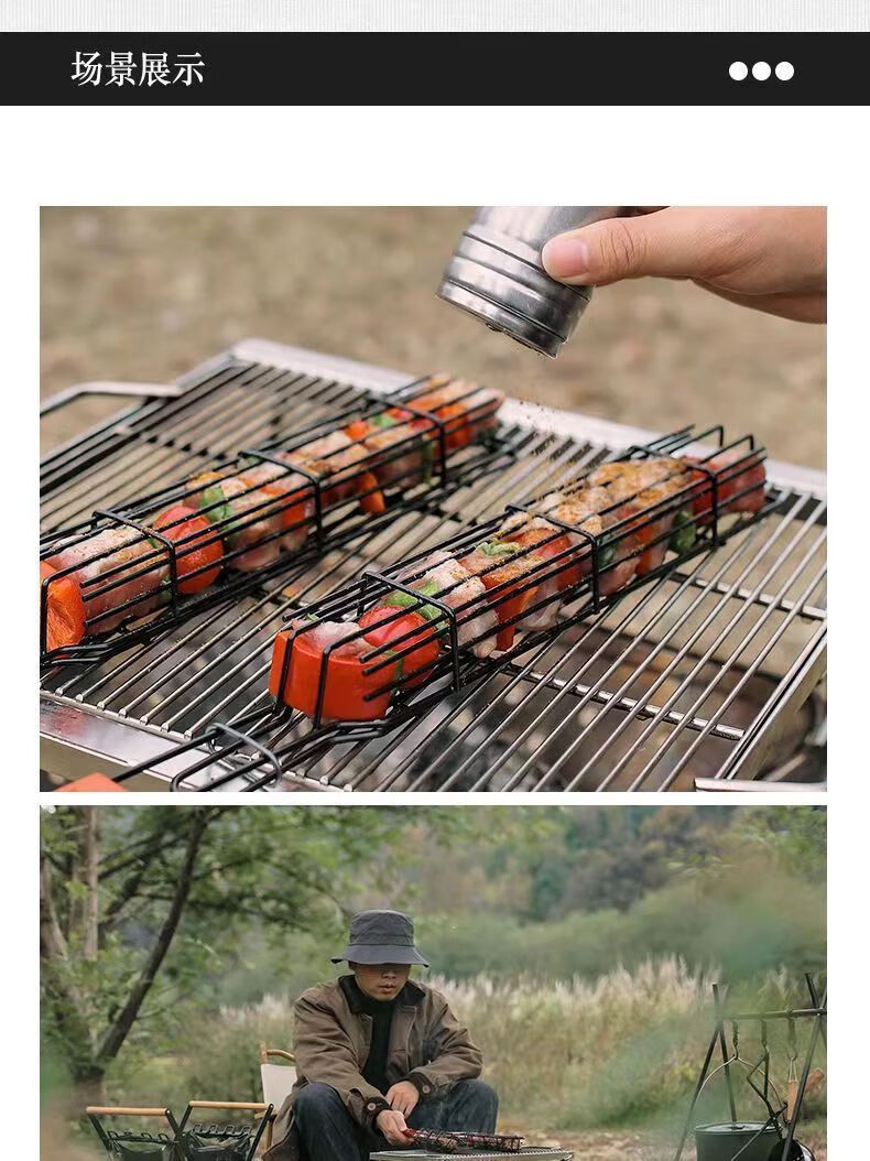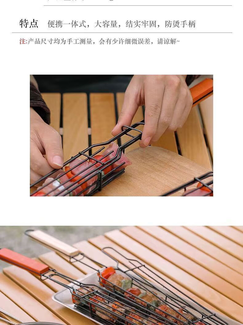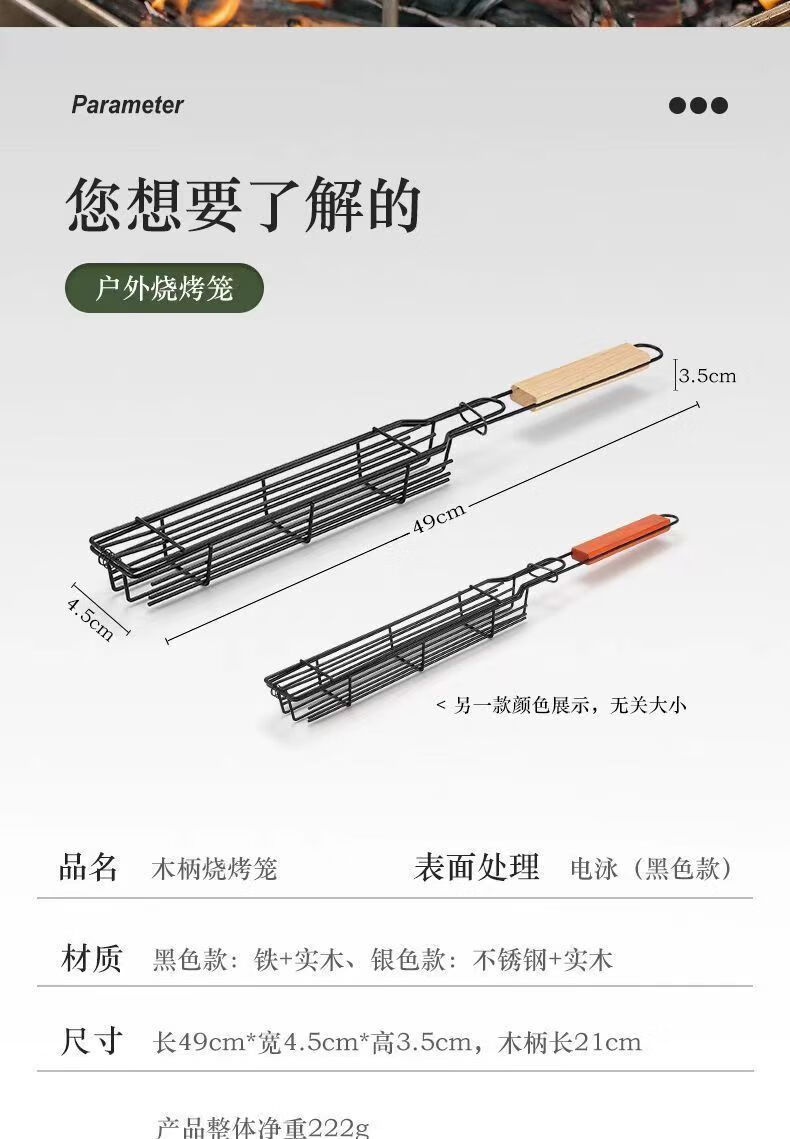 LZJV wooden handle barbecue cage hot dog sausage barbecue clip outdoor camping BBQ stainless steel grill grill stall tool red handle long barbecue grill - oil brush provided