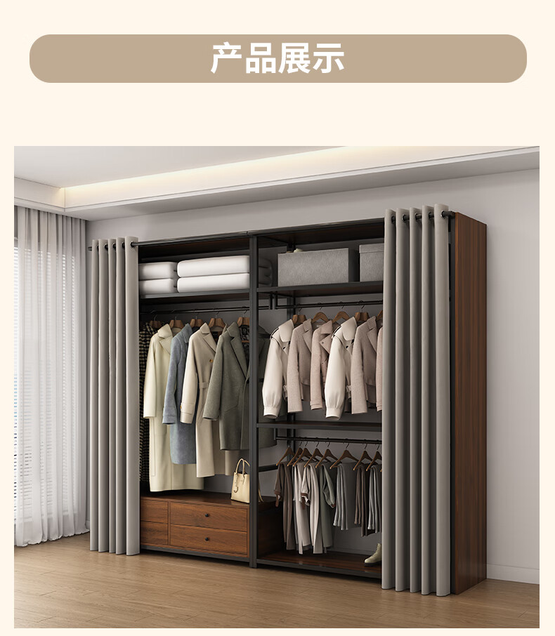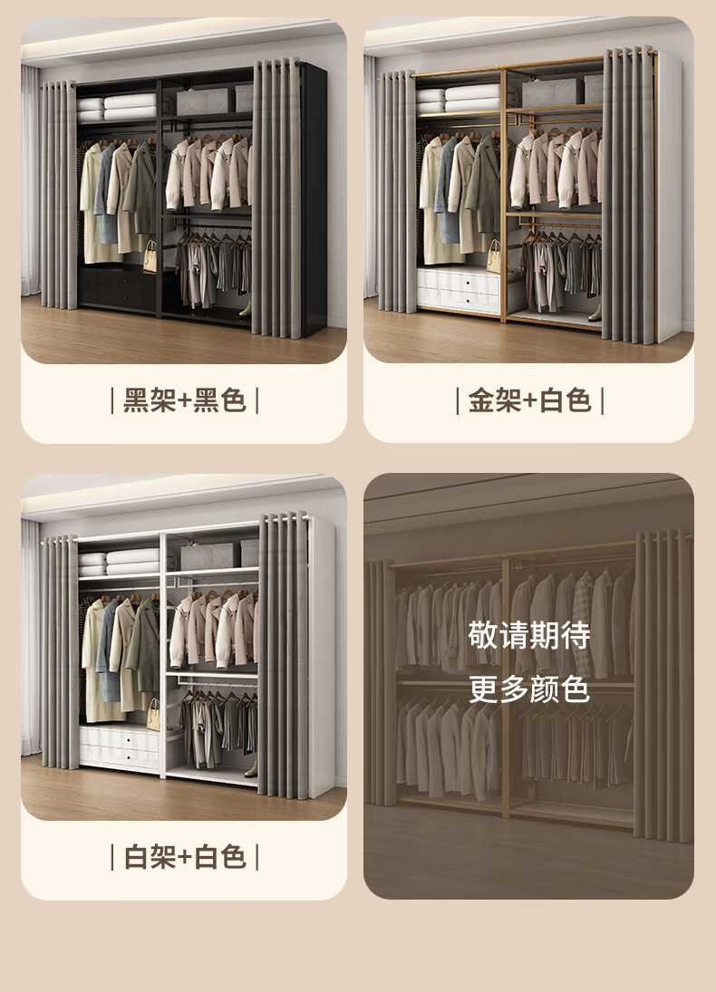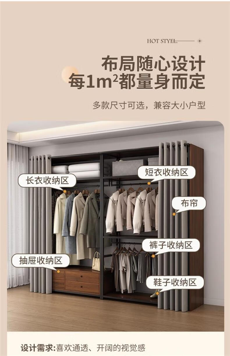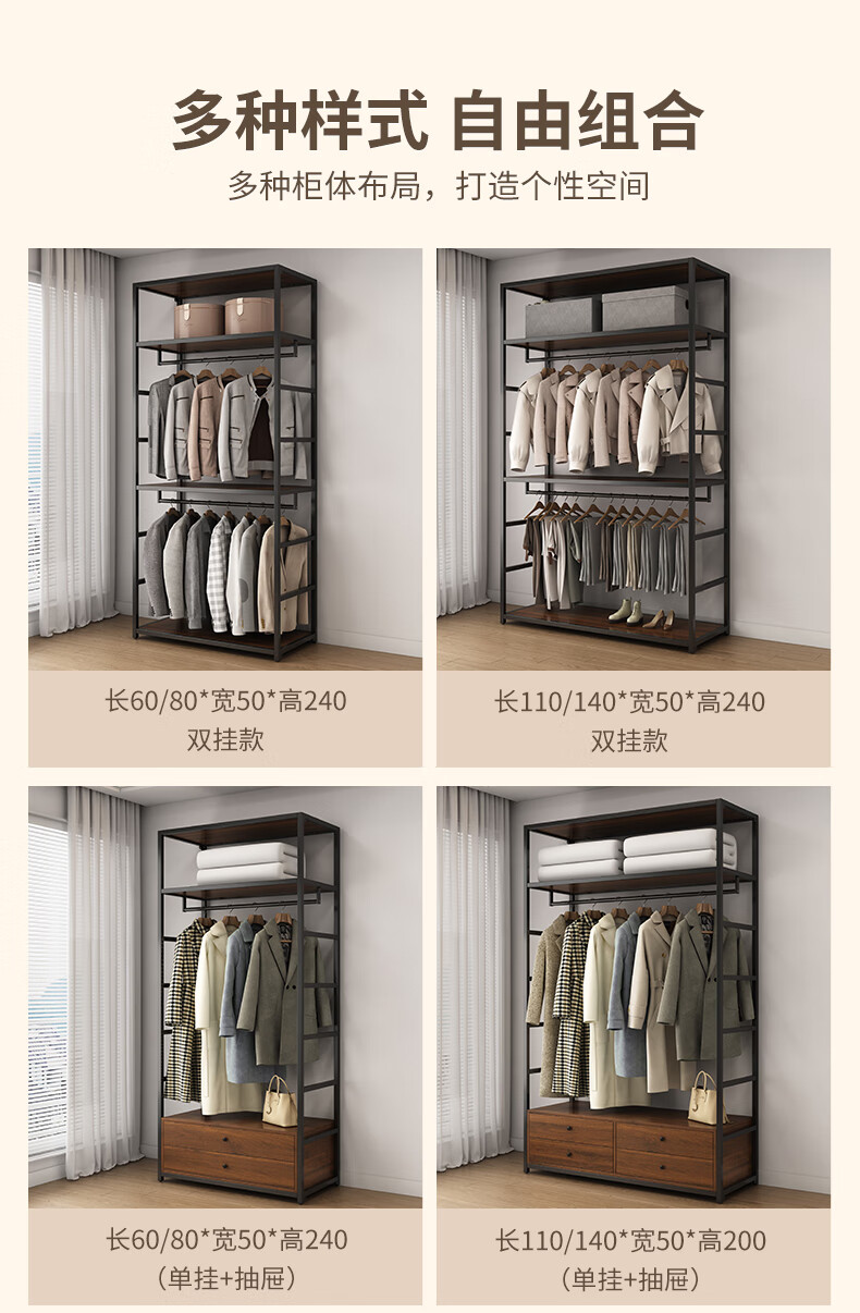 Open wardrobe home bedroom cloakroom simple coat rack storage rack floor hanging clothes rack walk-in rack color and size customization