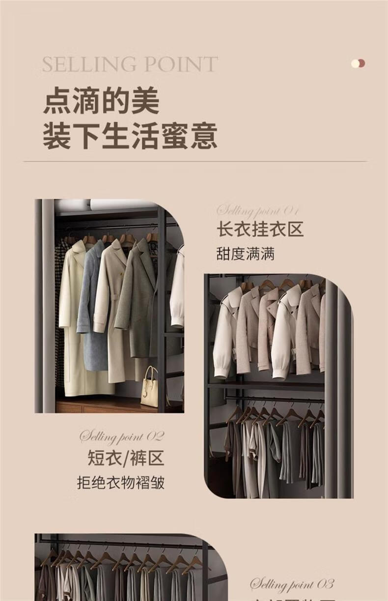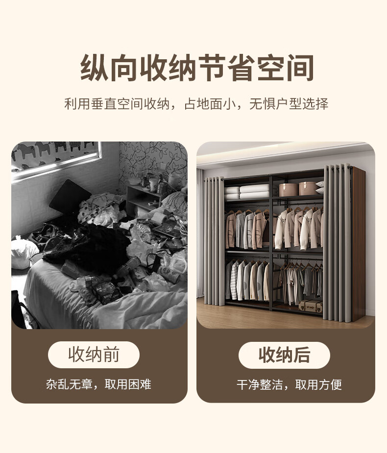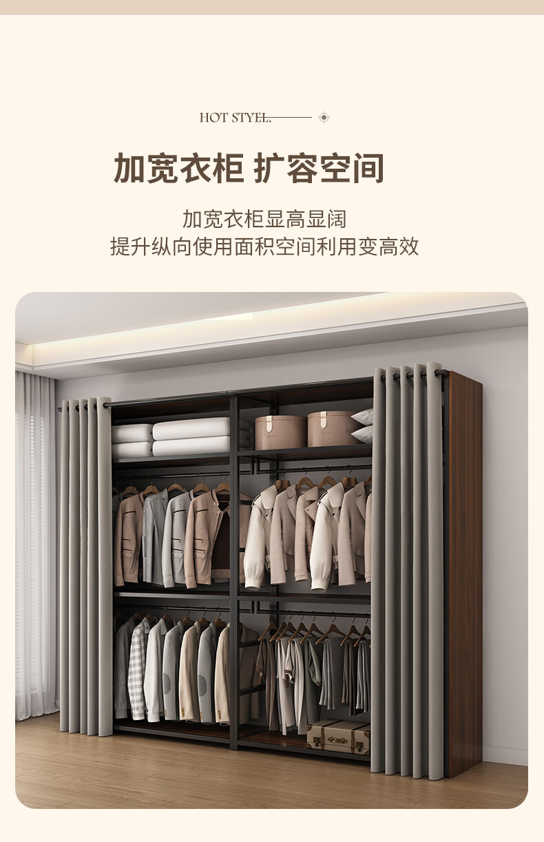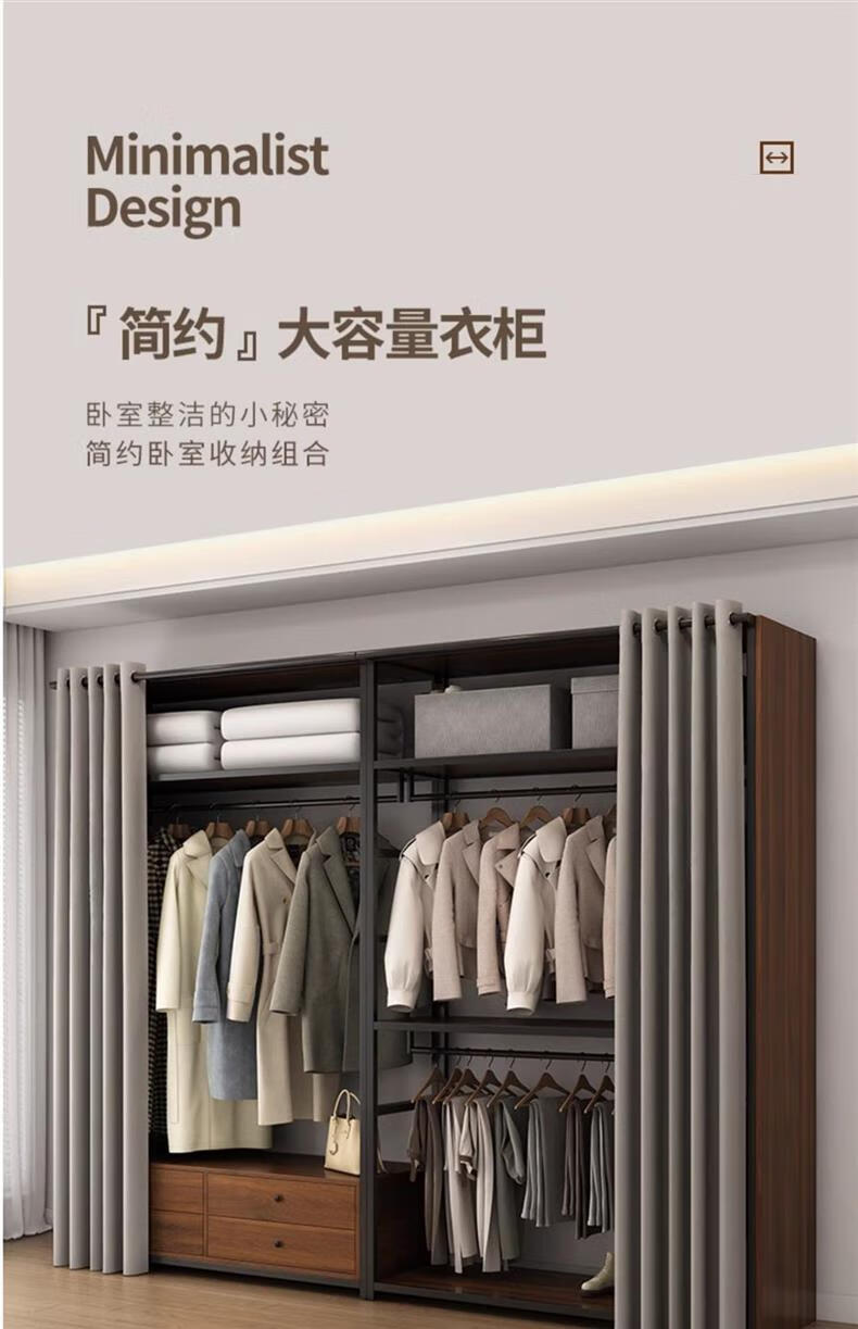 Open wardrobe home bedroom cloakroom simple coat rack storage rack floor hanging clothes rack walk-in rack color and size customization