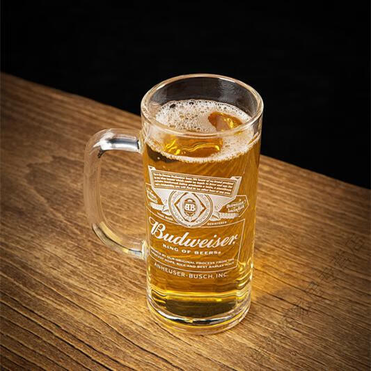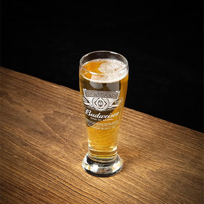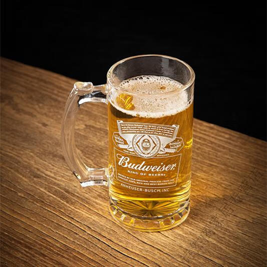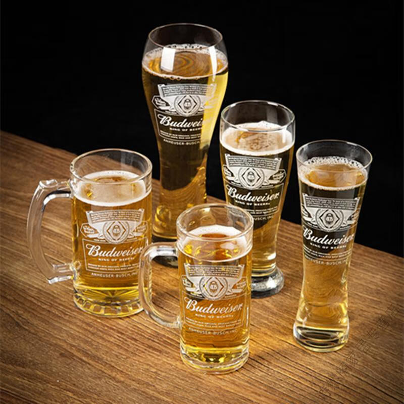 Miaopule 2025 New Budweiser Beer Cup Thickened Craft Beer Cup with Handle European Commercial Draft Beer Cup for Bars and Taverns Heat Resistant White Budweiser Slim Cup
