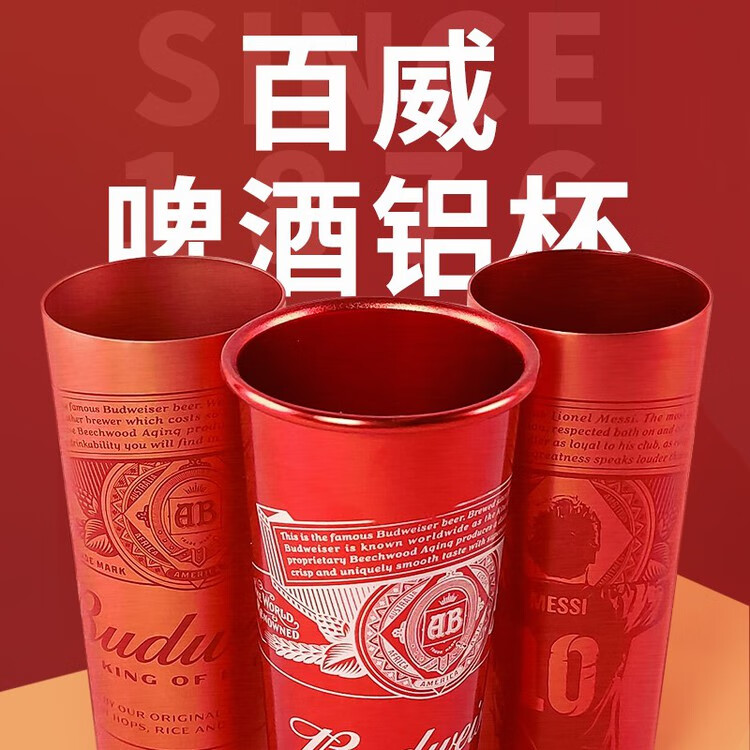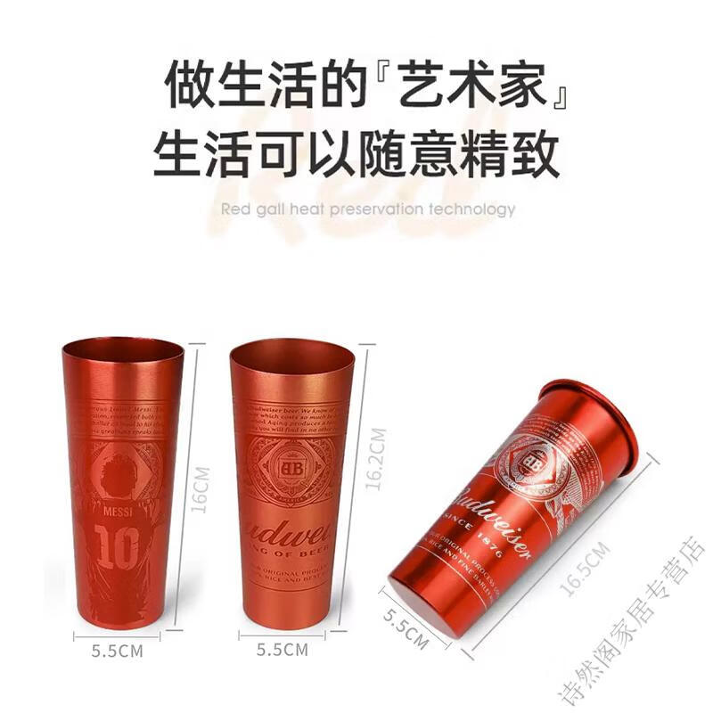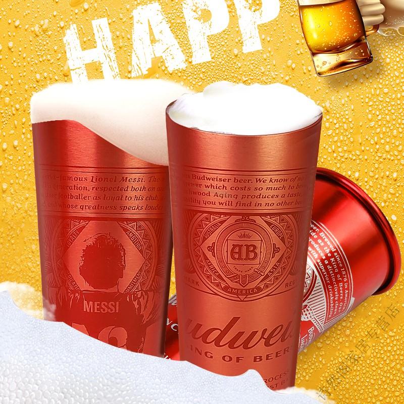 Miaopule 2025 New Budweiser Beer Cup Thickened Craft Beer Cup with Handle Color-Changing Aluminum Cup Messi World Cup Father's Day Customized Budweiser World Cup Color-Changing Cup Qatar Beer Cup