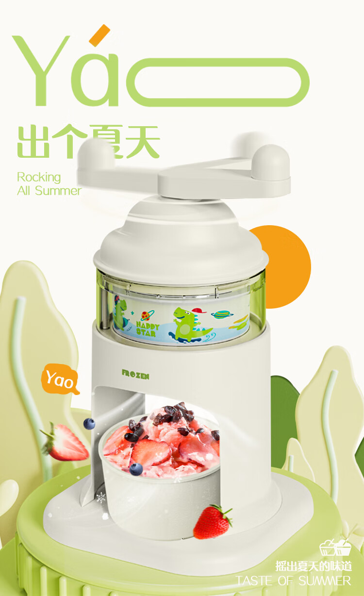 Jingyan manual shaved ice machine household small continuous ice artifact hand-cranked ice machine unplugged ice crusher stall hail ice machine food grade shaved ice machine + with 1 frozen mold milky white