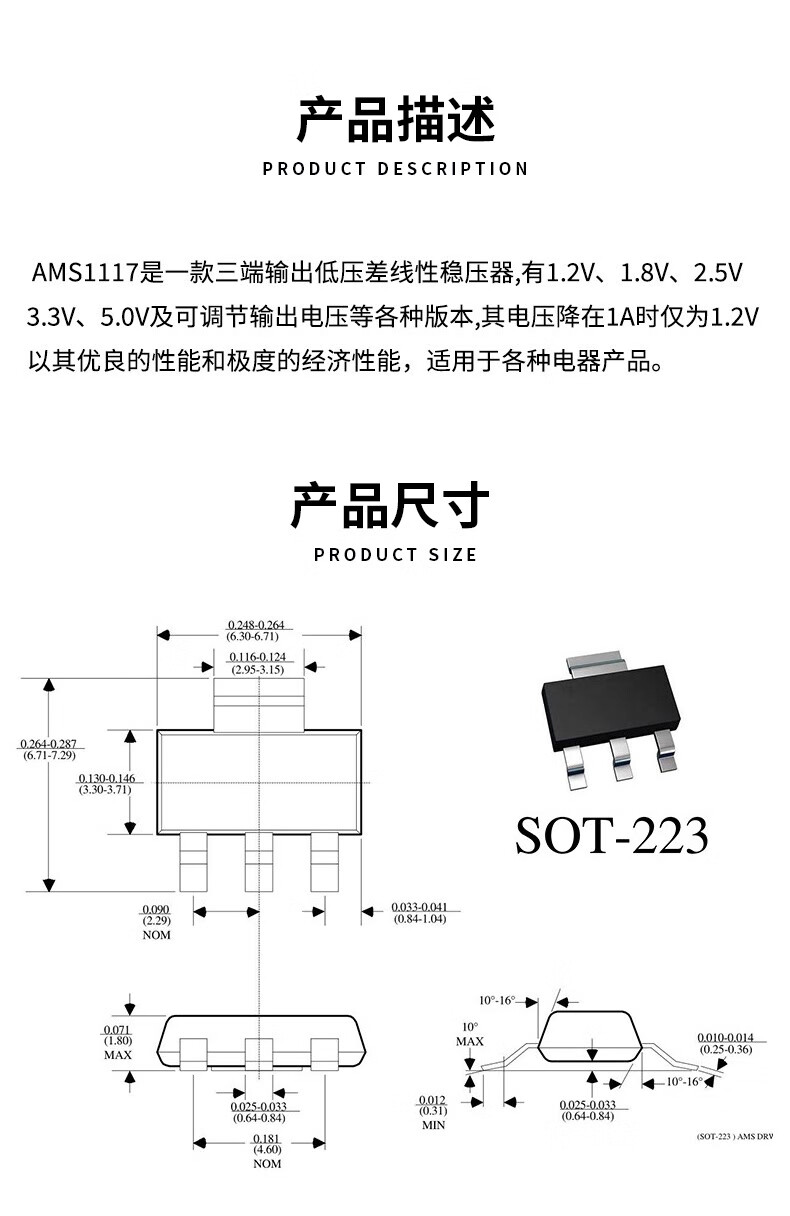AMS1117-3.3V1.2V1.5V1.8V2.5V5.0V ADJ voltage regulator chip SOT223 power supply AMS1117-3.3V package SOT223 (10 pcs