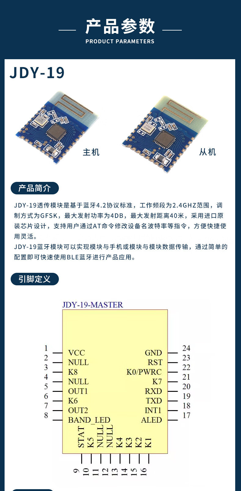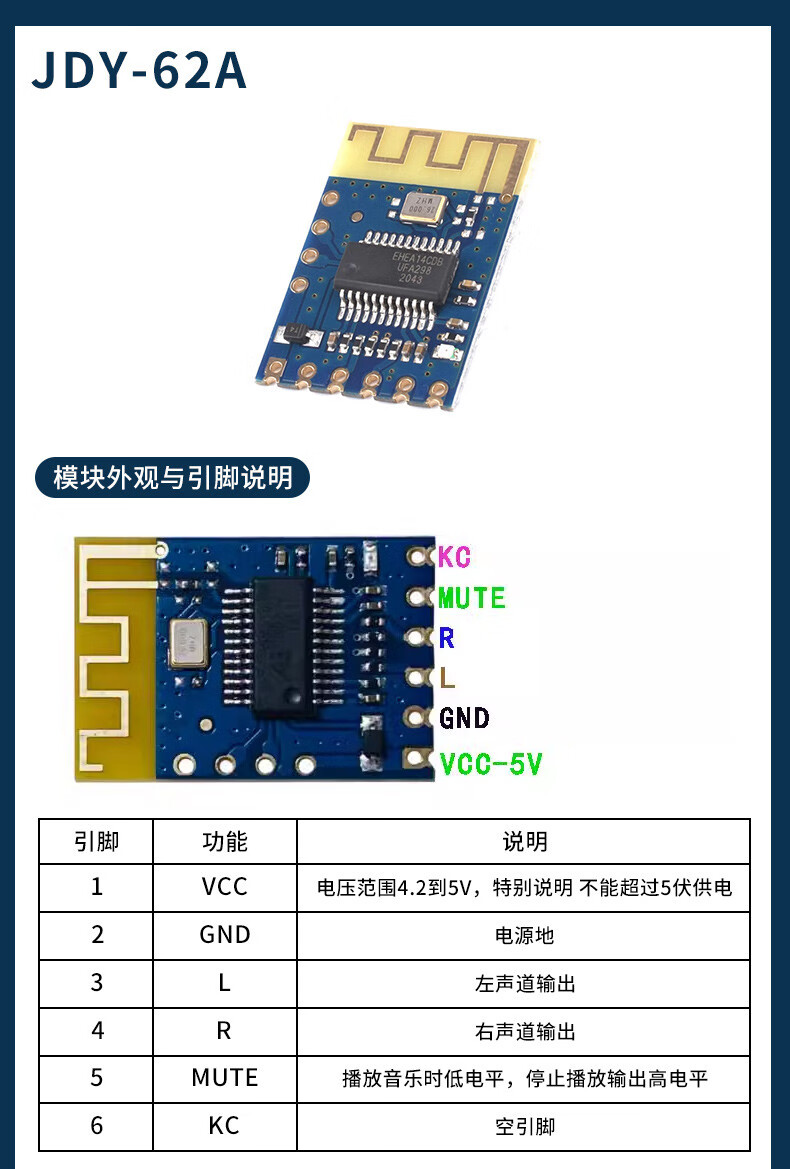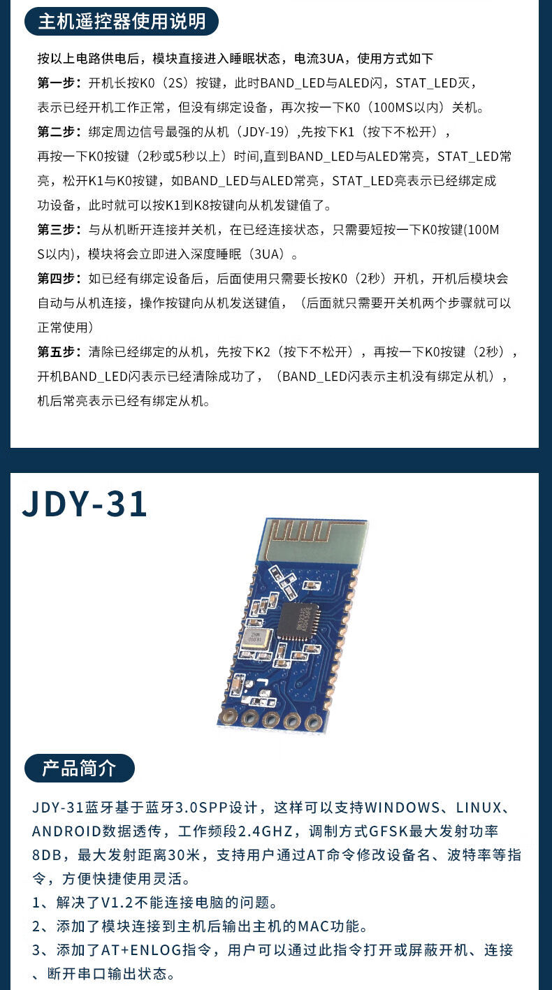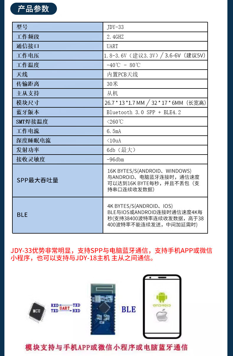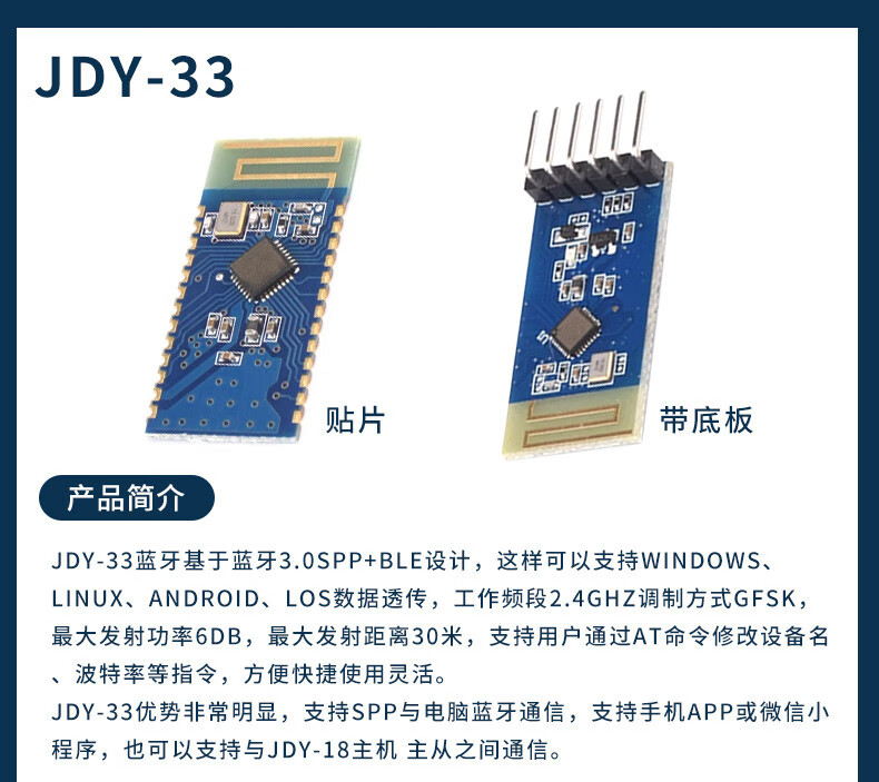 JDY-19/31/33/40/62A dual-mode Bluetooth 5.0 audio SPP transparent transmission 2.4g module compatible with HC-0506 JDY-33 with base plate