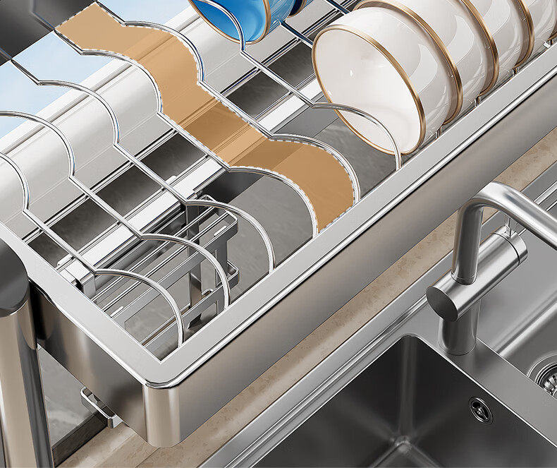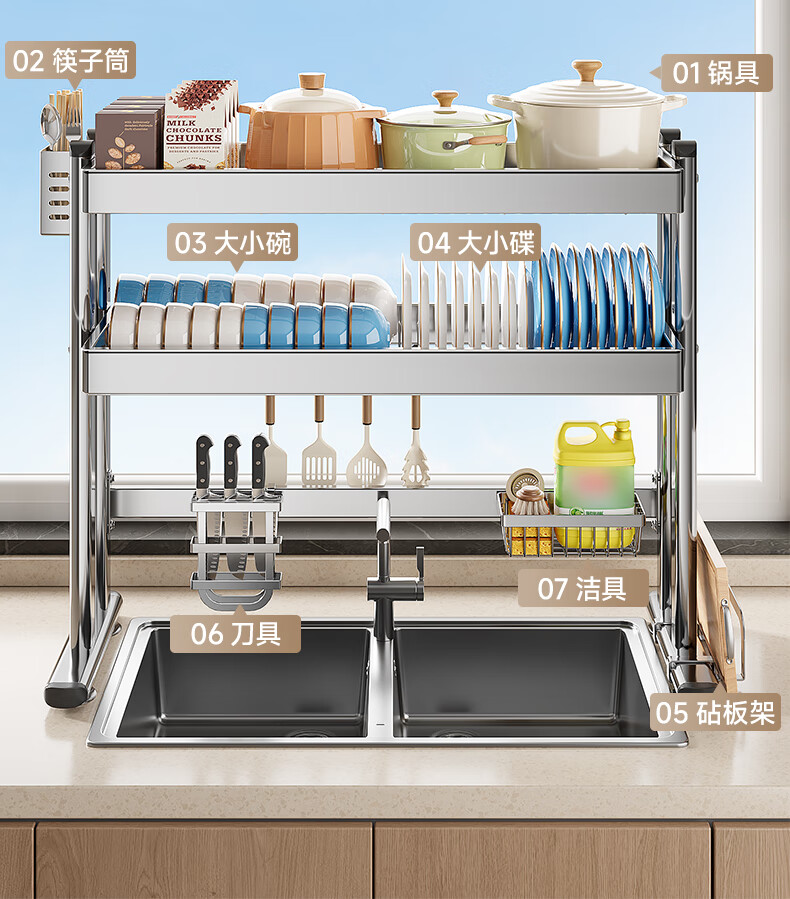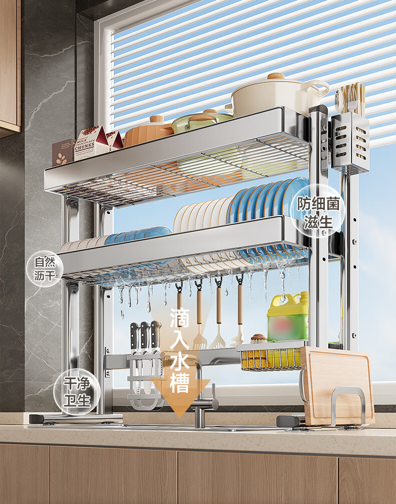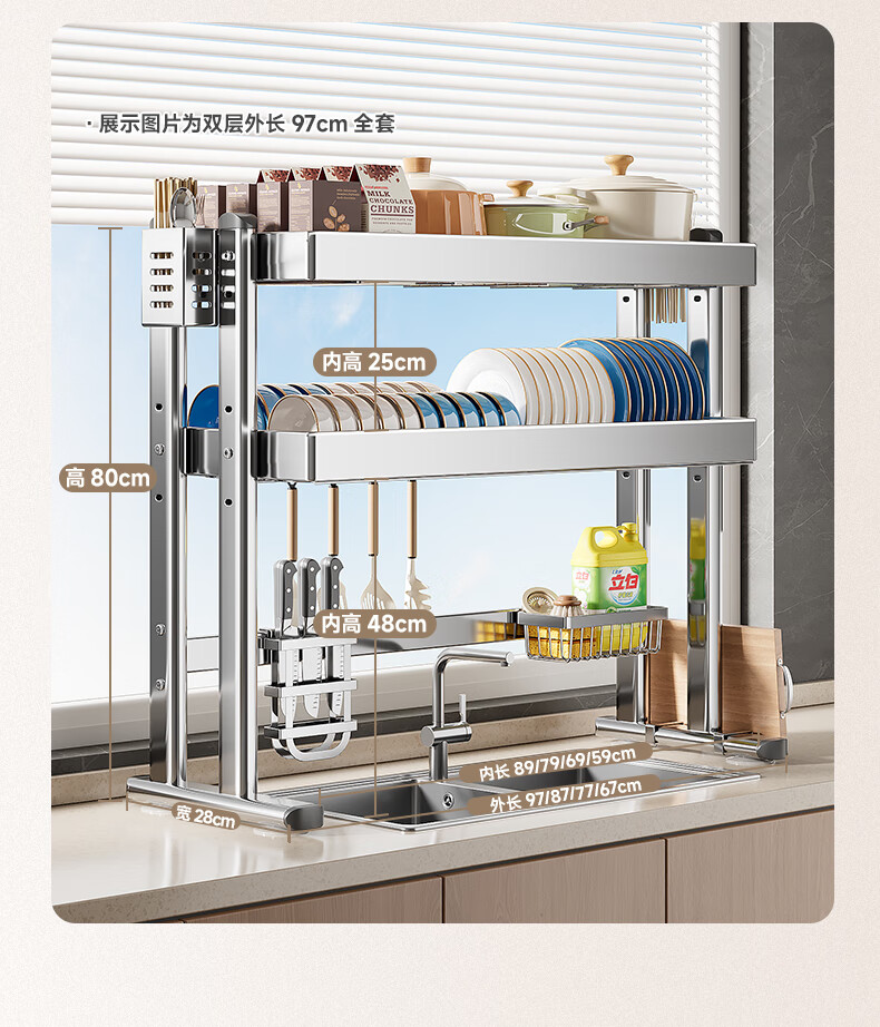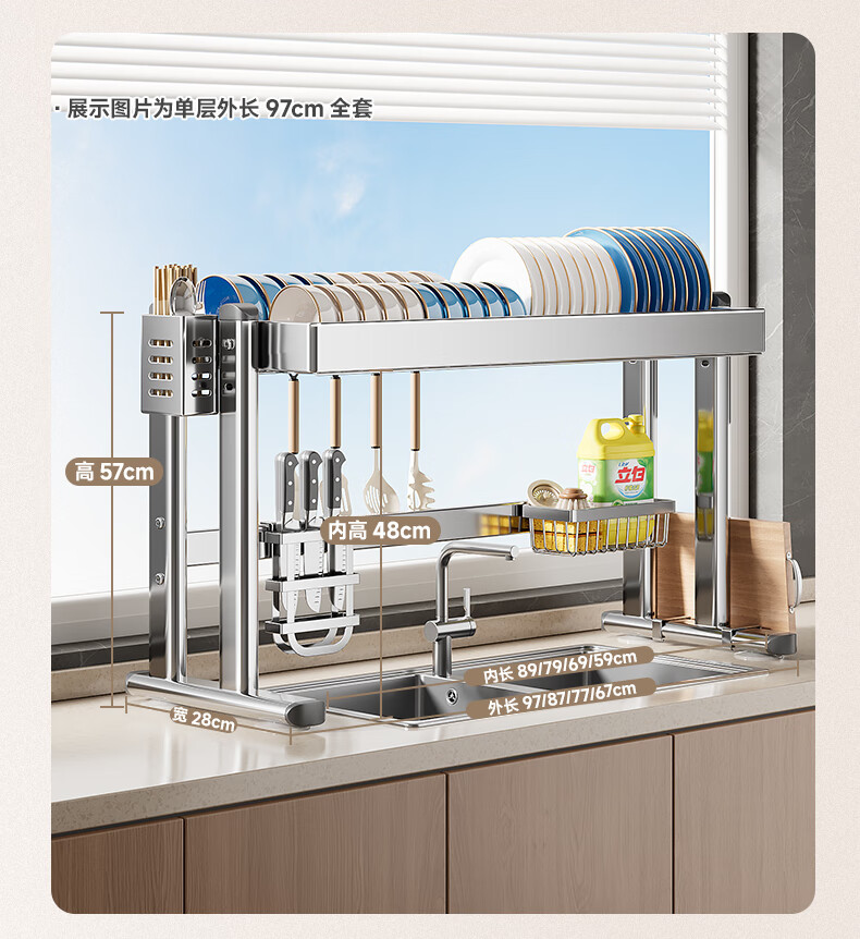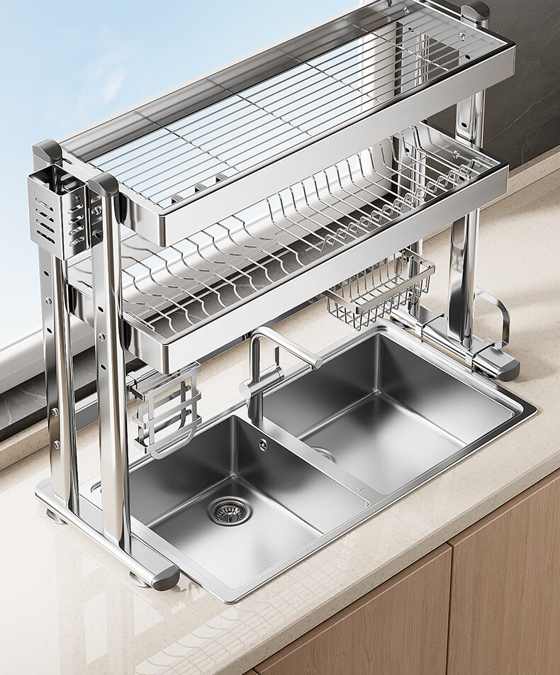 Four Seasons Muge 304 Stainless Steel Kitchen Sink Storage Rack Drain Dish Rack Basket Pool Dish Storage Rack Utensil Collection 304 Stainless Steel Full Set 77 Long Single Layer