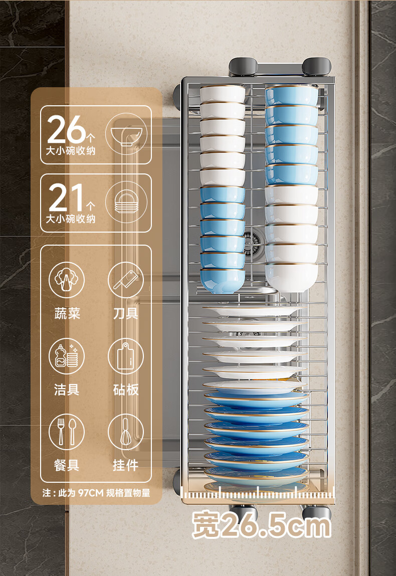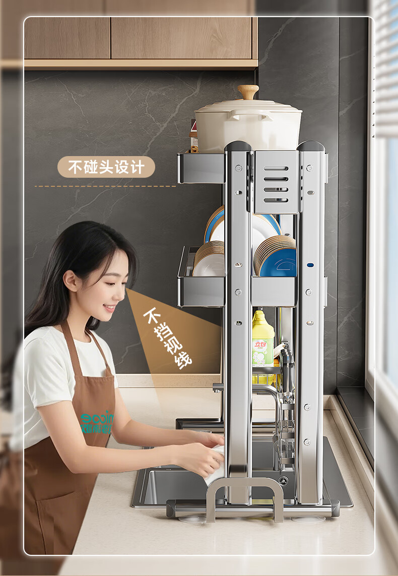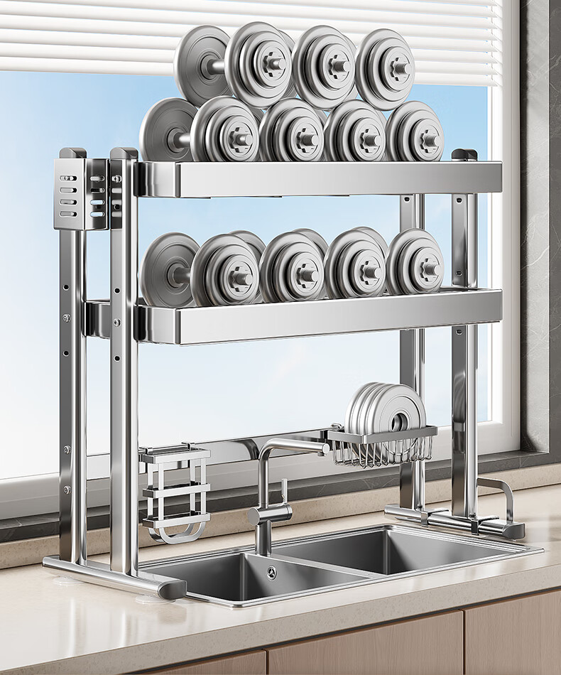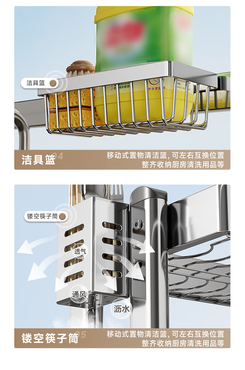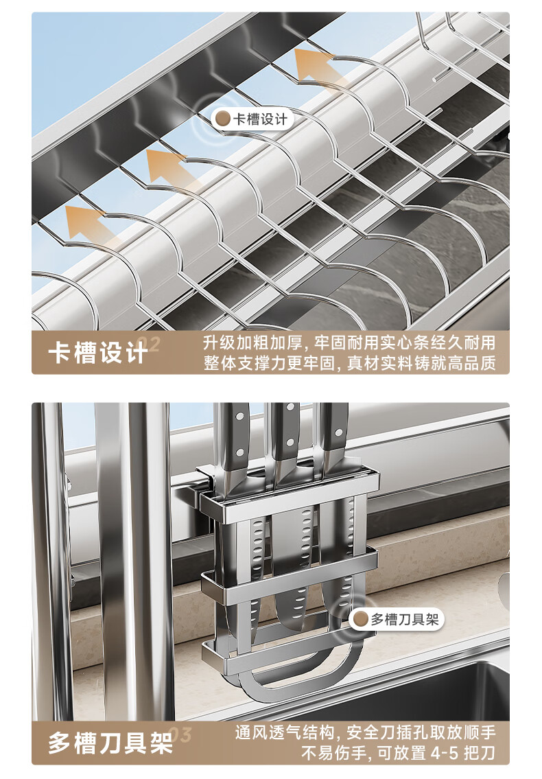 Four Seasons Muge 304 Stainless Steel Kitchen Sink Storage Rack Drain Dish Rack Basket Pool Dish Storage Rack Utensil Collection 304 Stainless Steel Full Set 77 Long Single Layer
