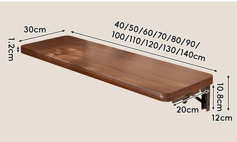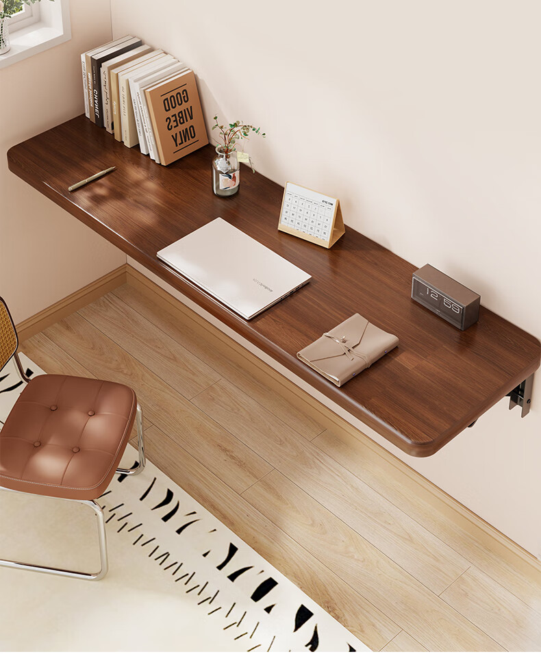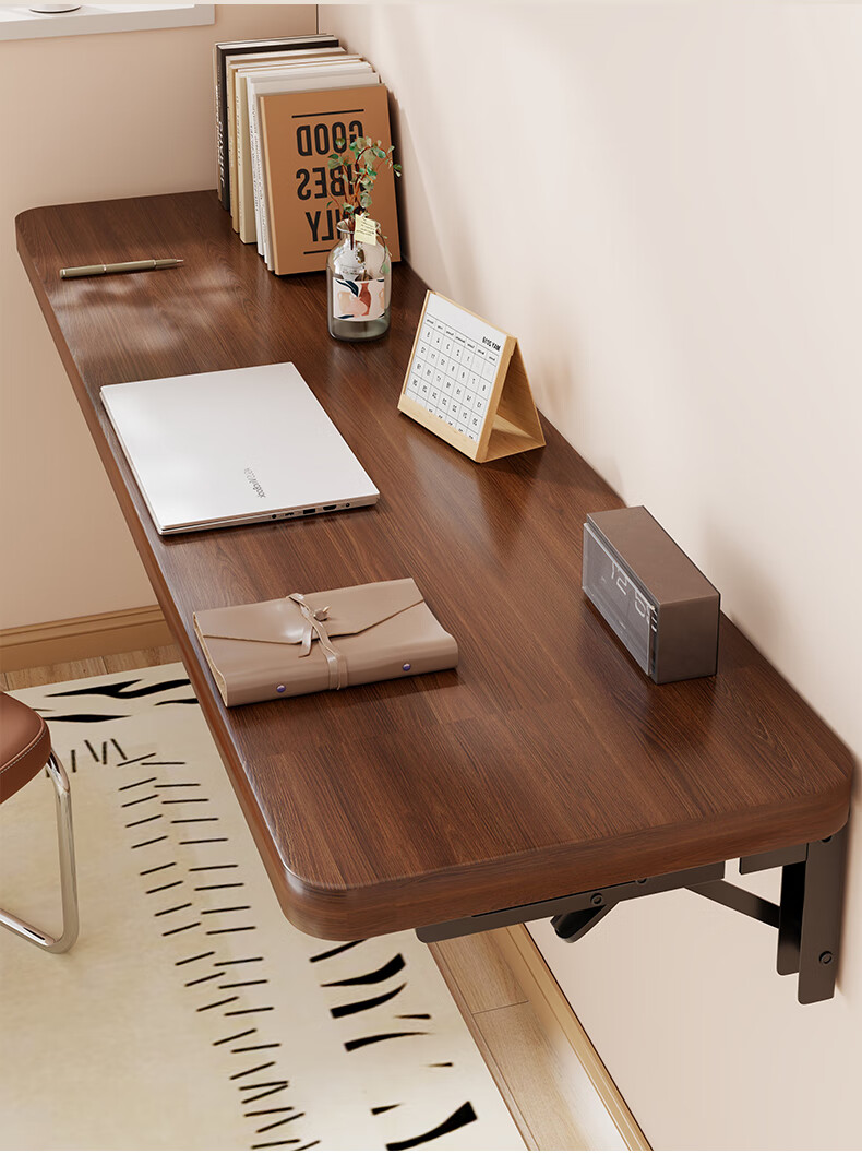 Aomingyuan Foldable Wall-mounted Folding Table Wall-mounted Study Table Balcony Wall Suspension Wall Side Table Wall Storage Rack Light Walnut 40*30 Foldable Model