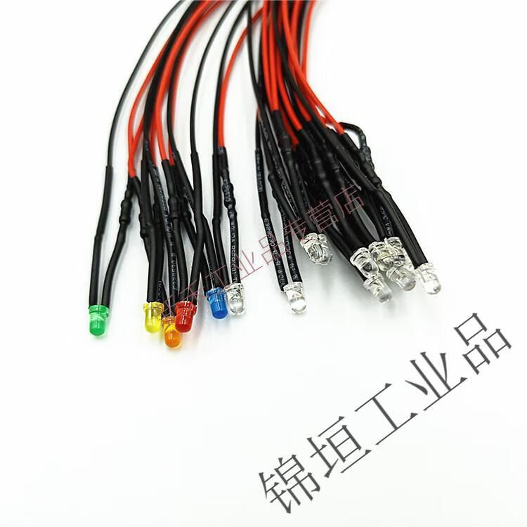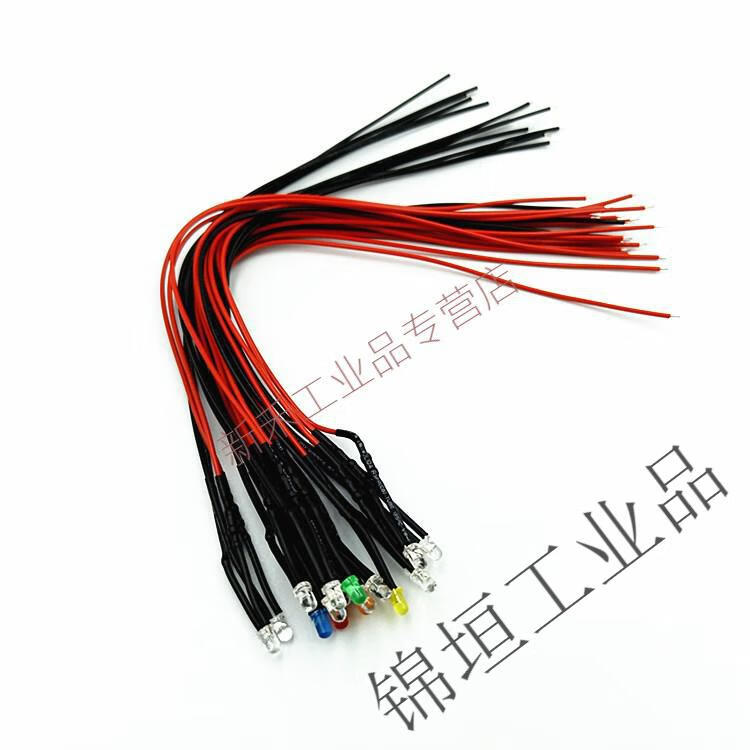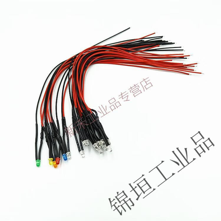 3mm wired LED light-emitting diode 2V3V5V9V12V24V220V power supply working indicator light signal light yellow light universal 3V