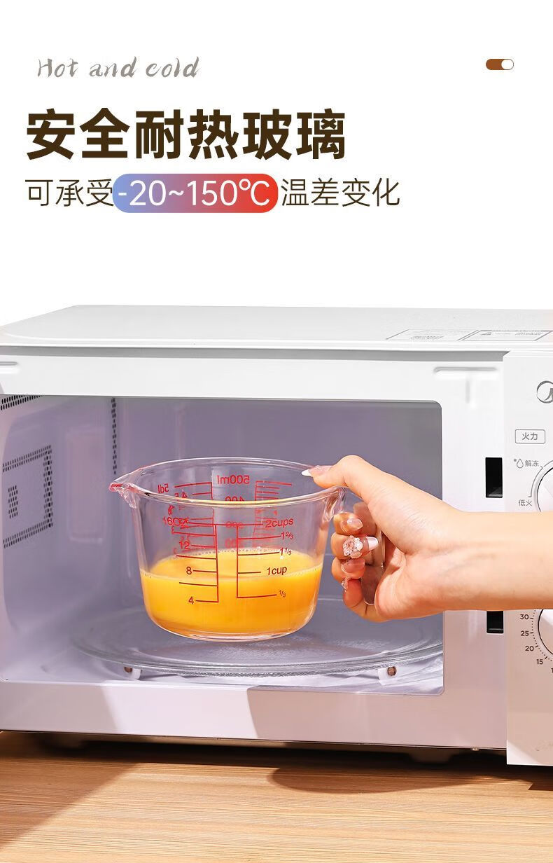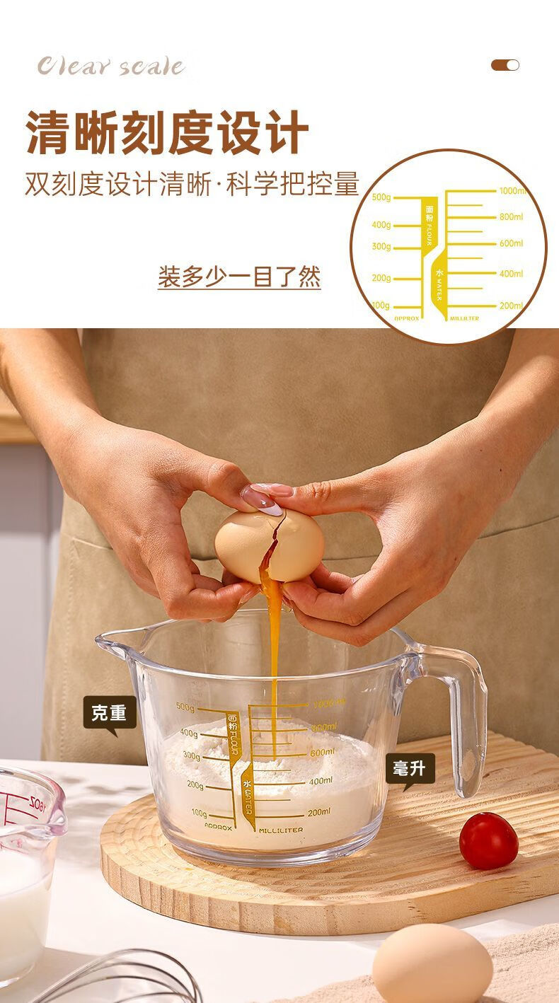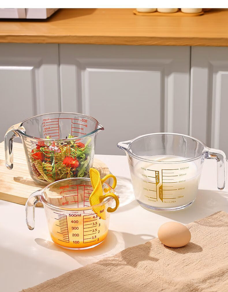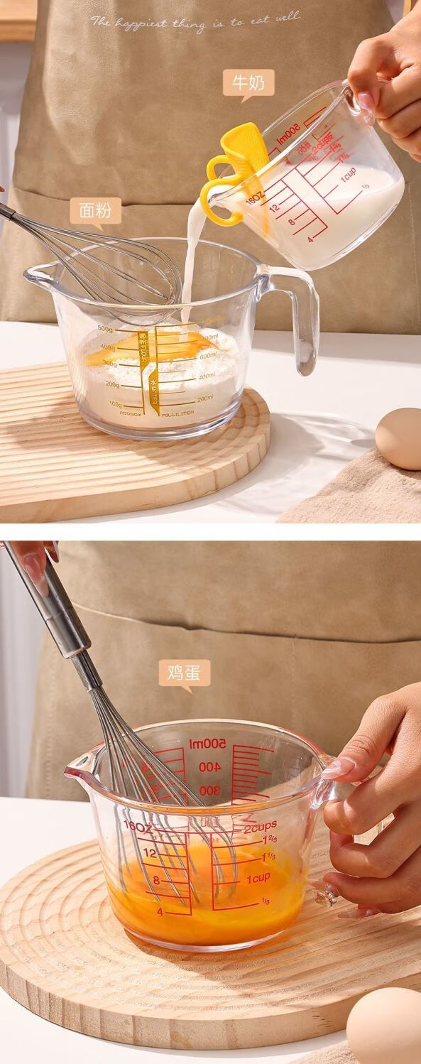 LZJV large-capacity glass measuring cup with graduated handle milliliter meter household temperature-resistant kitchen milk baking egg bowl 500ml-egg flower 1 piece