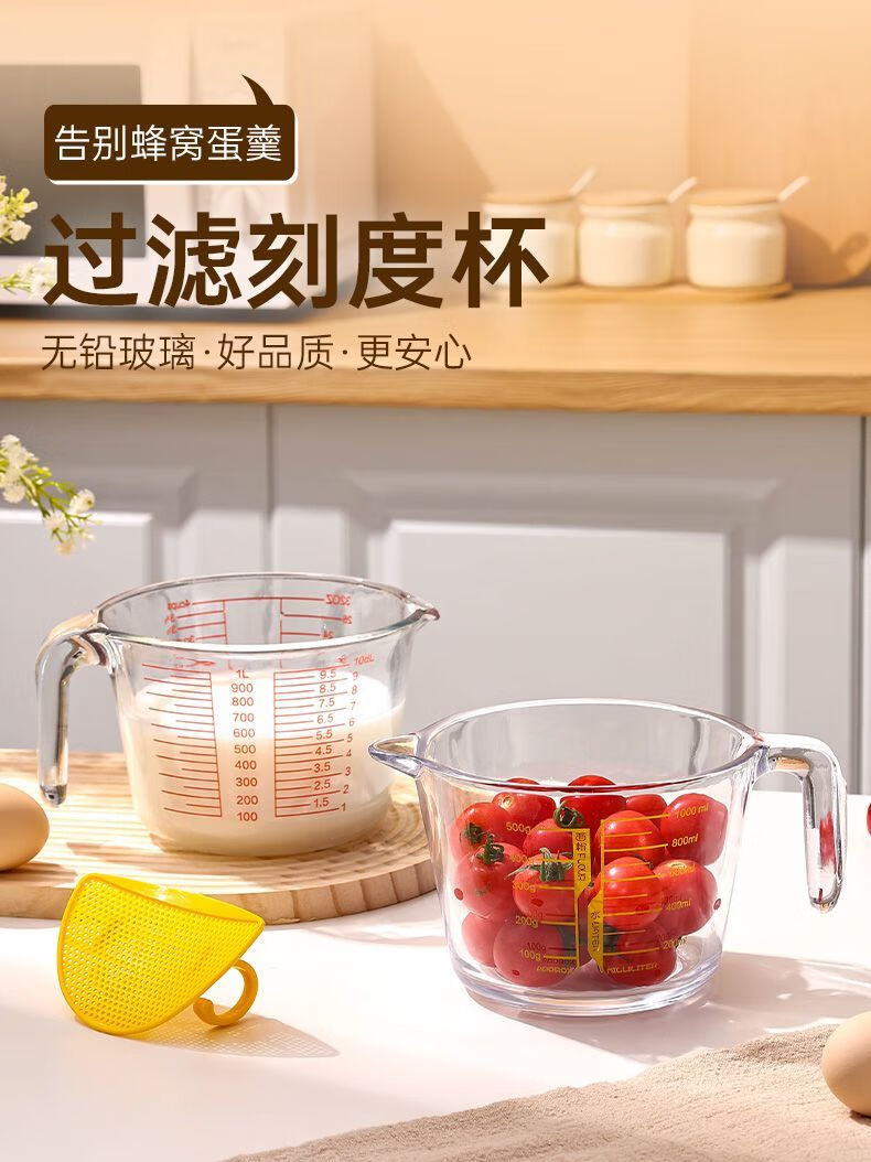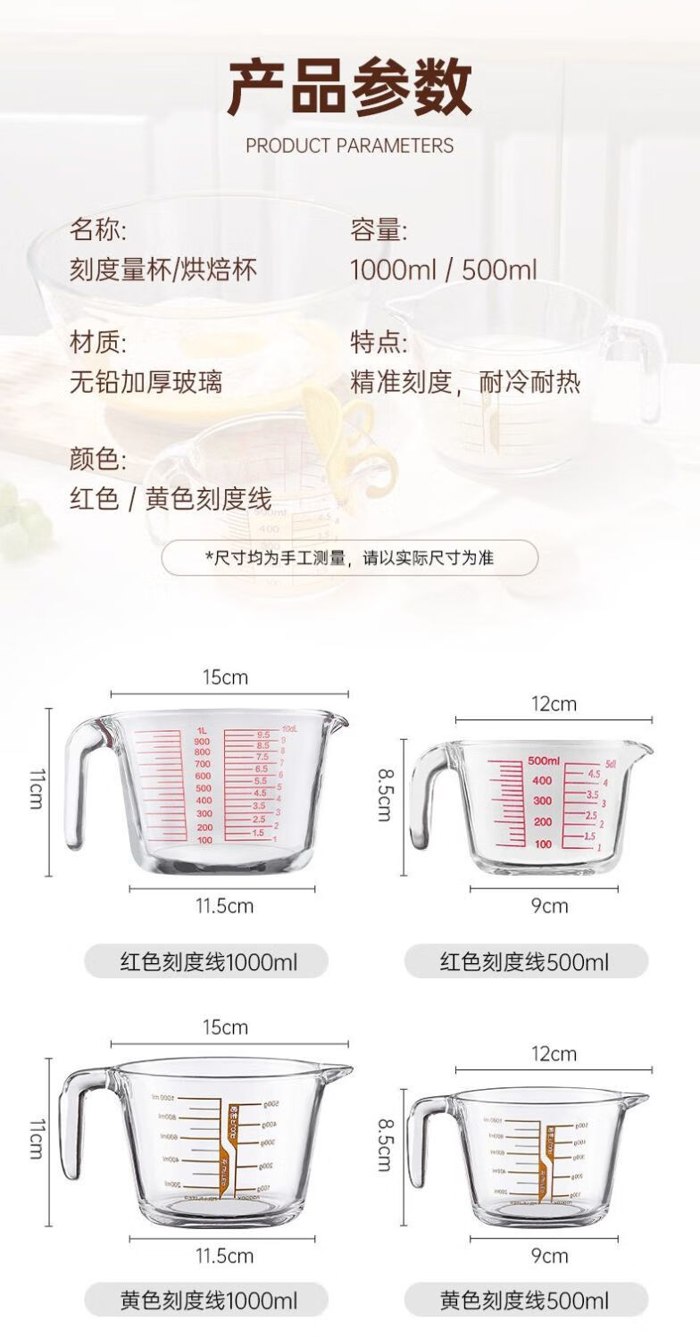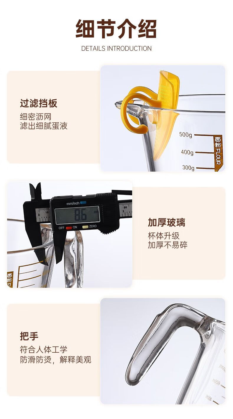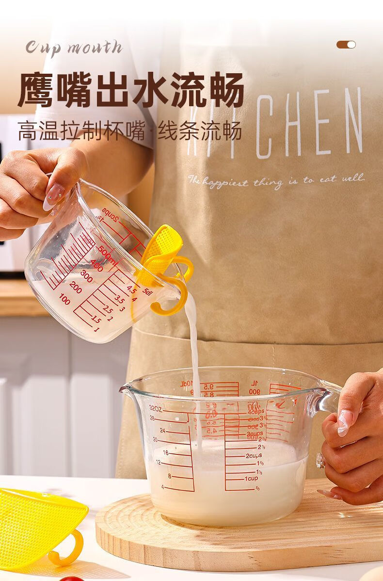 LZJV large-capacity glass measuring cup with graduated handle milliliter meter household temperature-resistant kitchen milk baking egg bowl 500ml-egg flower 1 piece