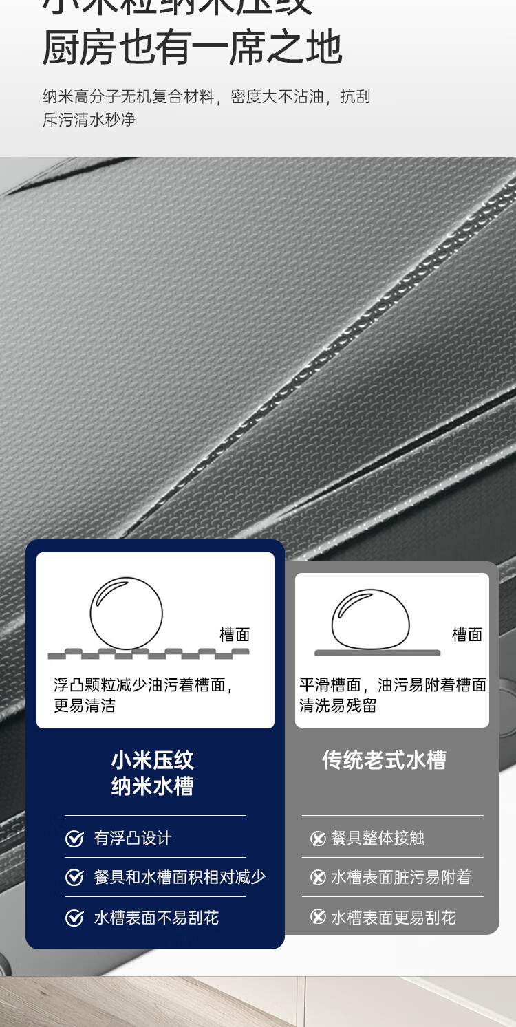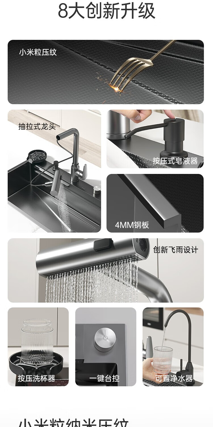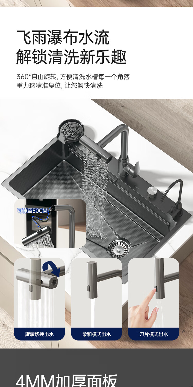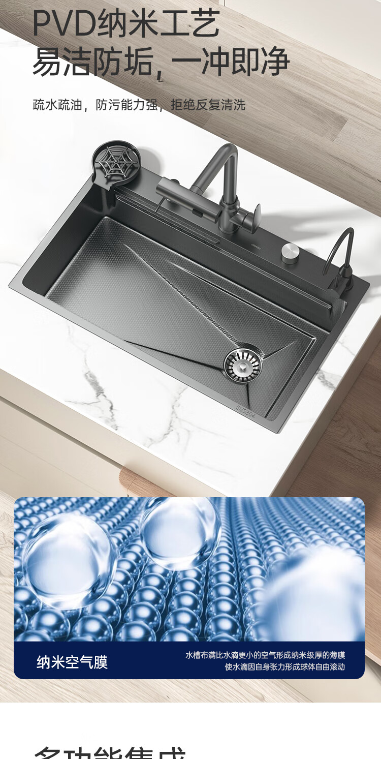 Jomoo Kitchen 304 stainless steel nano handmade sink large single tank above and below the counter washbasin household dishwashing sink set Xiaomi grain type E type/Raindance faucet + accessories 750*460