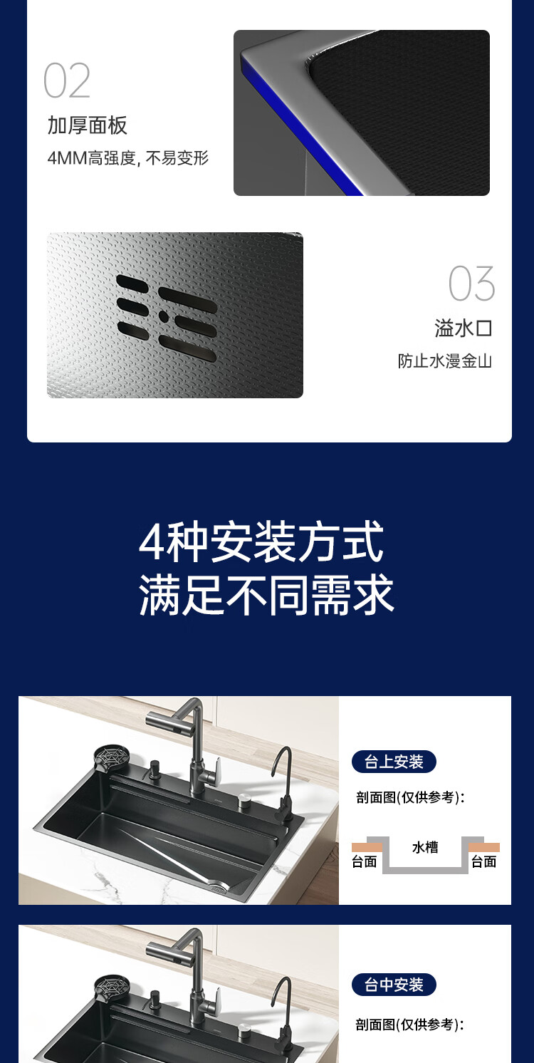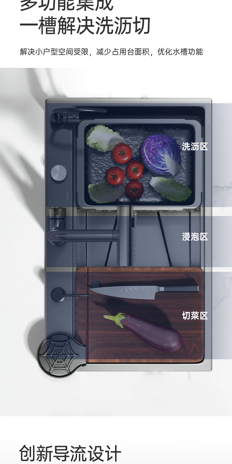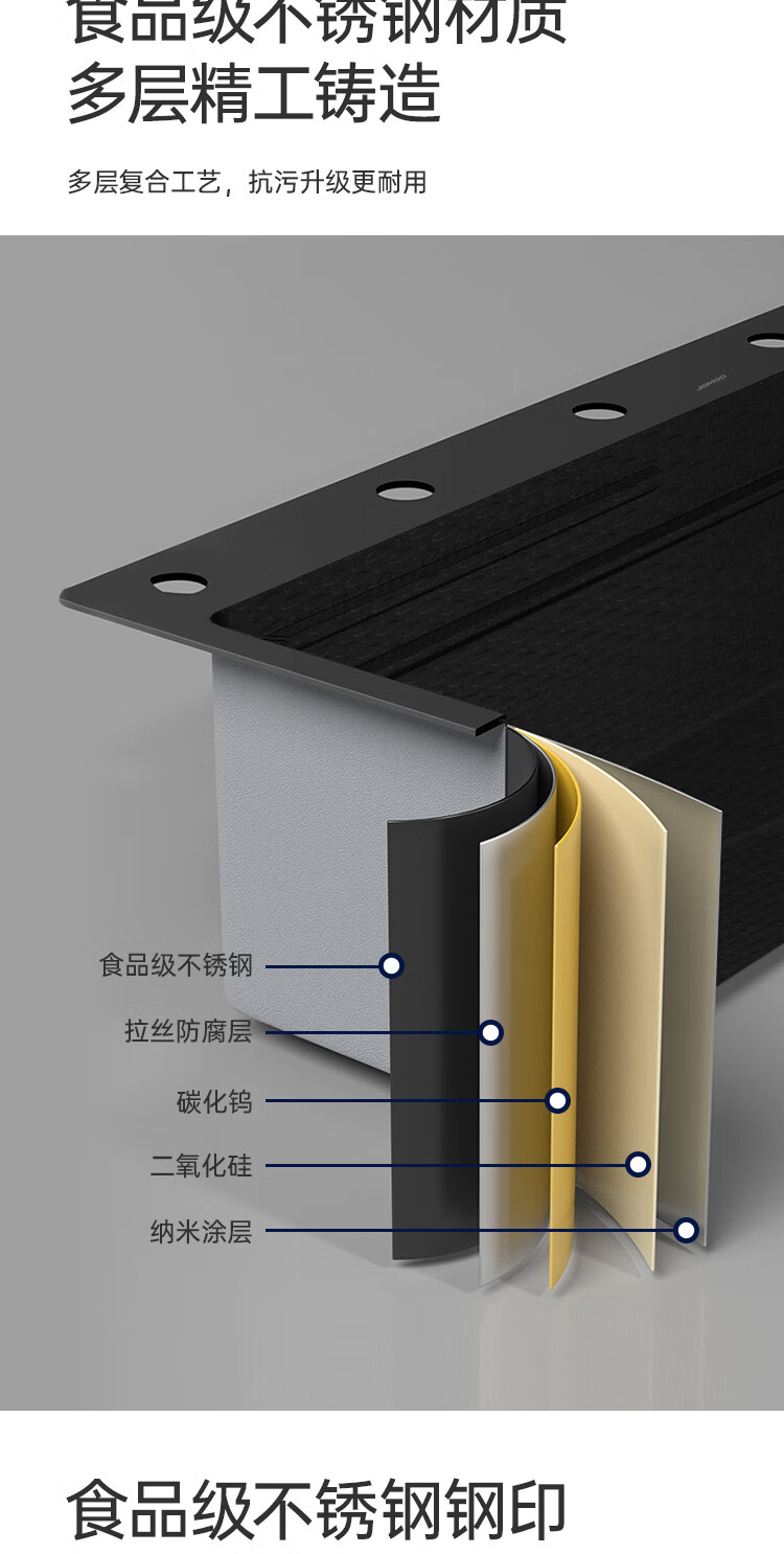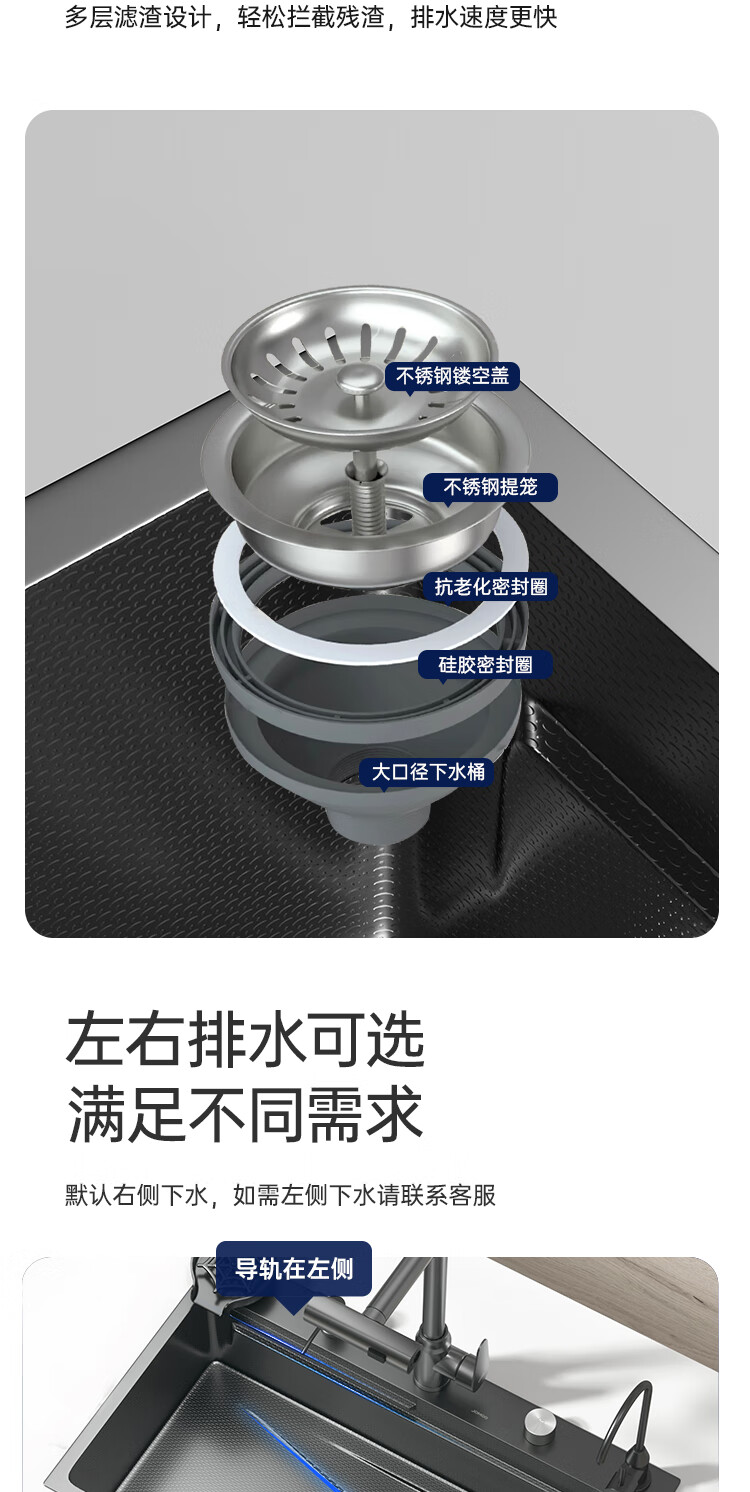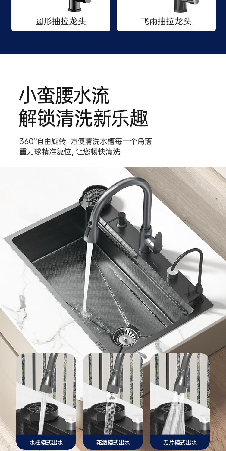 Jomoo Kitchen 304 stainless steel nano handmade sink large single tank above and below the counter washbasin household dishwashing sink set Xiaomi grain type E type/Raindance faucet + accessories 750*460