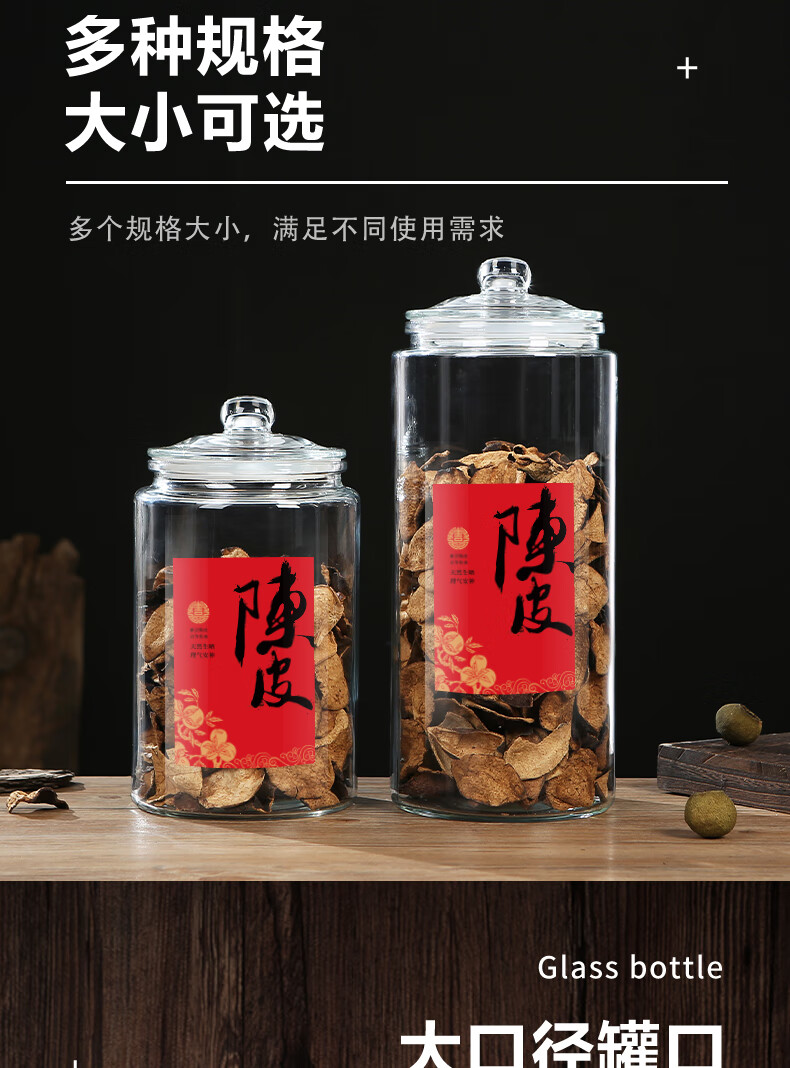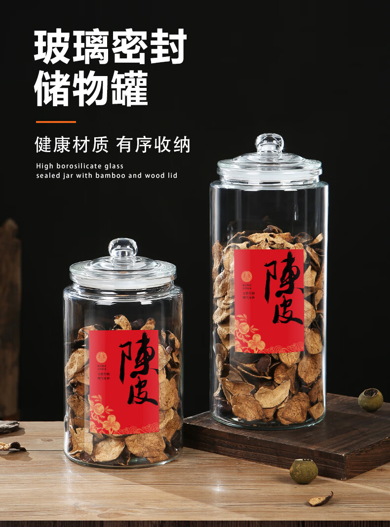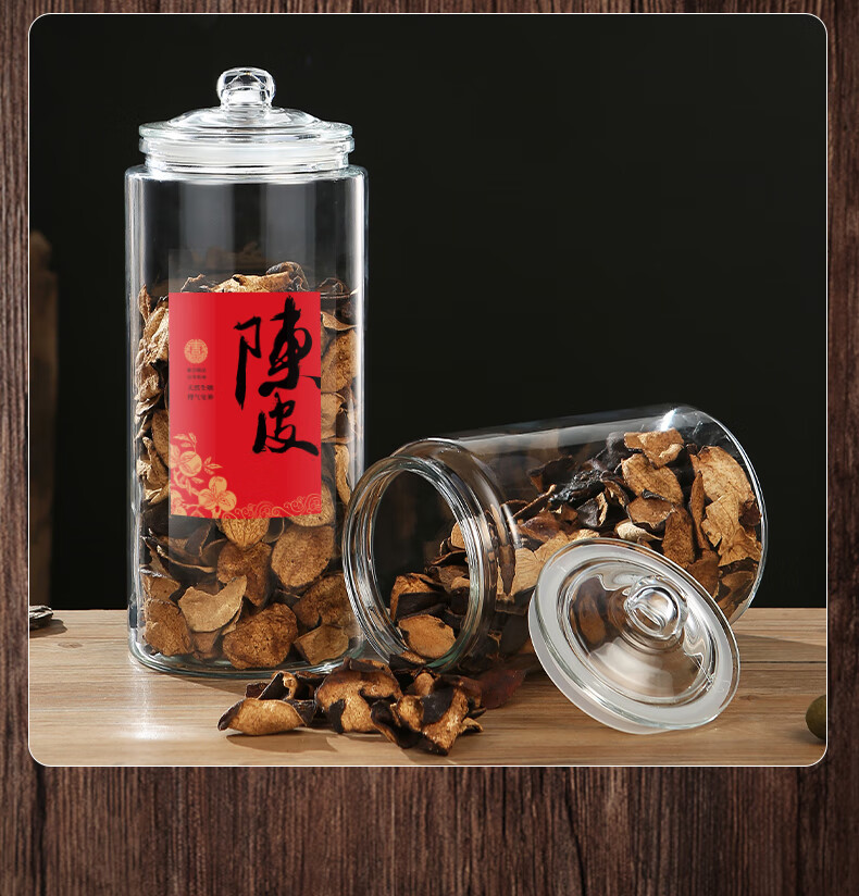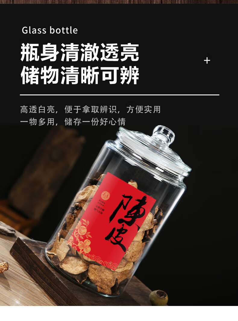 Wooden glass sealed canned tangerine peel storage tank, special tangerine peel can, food-grade moisture-proof tea can, traditional Chinese medicine, large capacity 5 liters (about 0.8 pounds of tangerine peel)