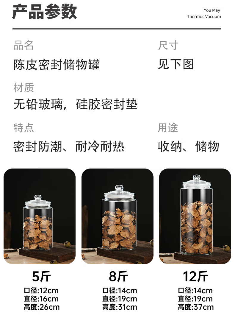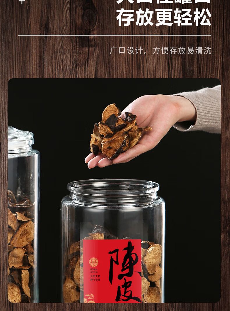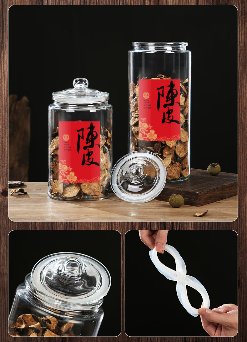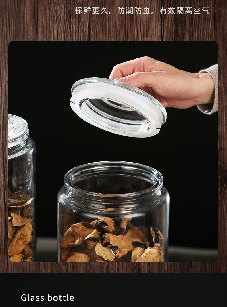 Wooden glass sealed canned tangerine peel storage tank, special tangerine peel can, food-grade moisture-proof tea can, traditional Chinese medicine, large capacity 5 liters (about 0.8 pounds of tangerine peel)
