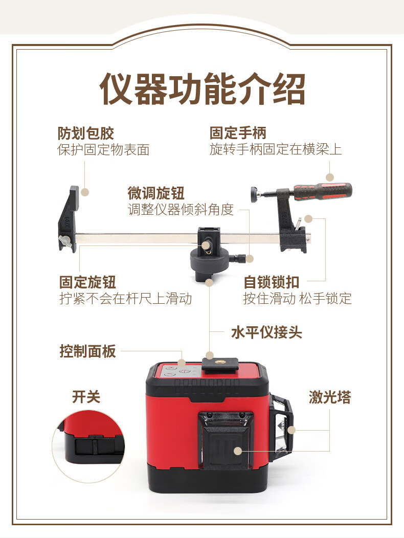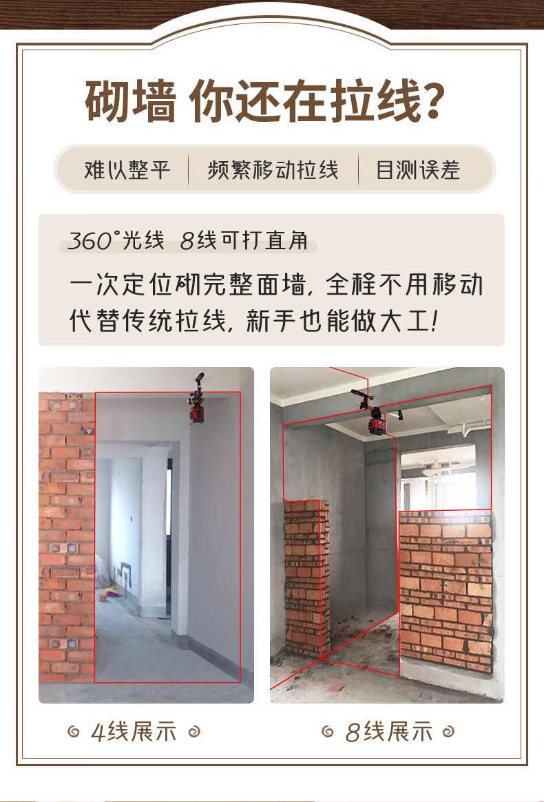 DOVOH infrared level high-precision strong light laser outdoor special wall-building tool automatic leveling super bright 8-line W2 red light standard package