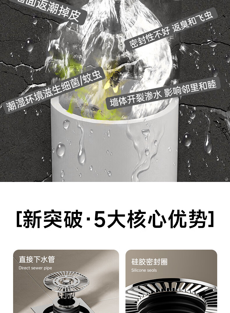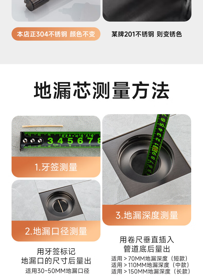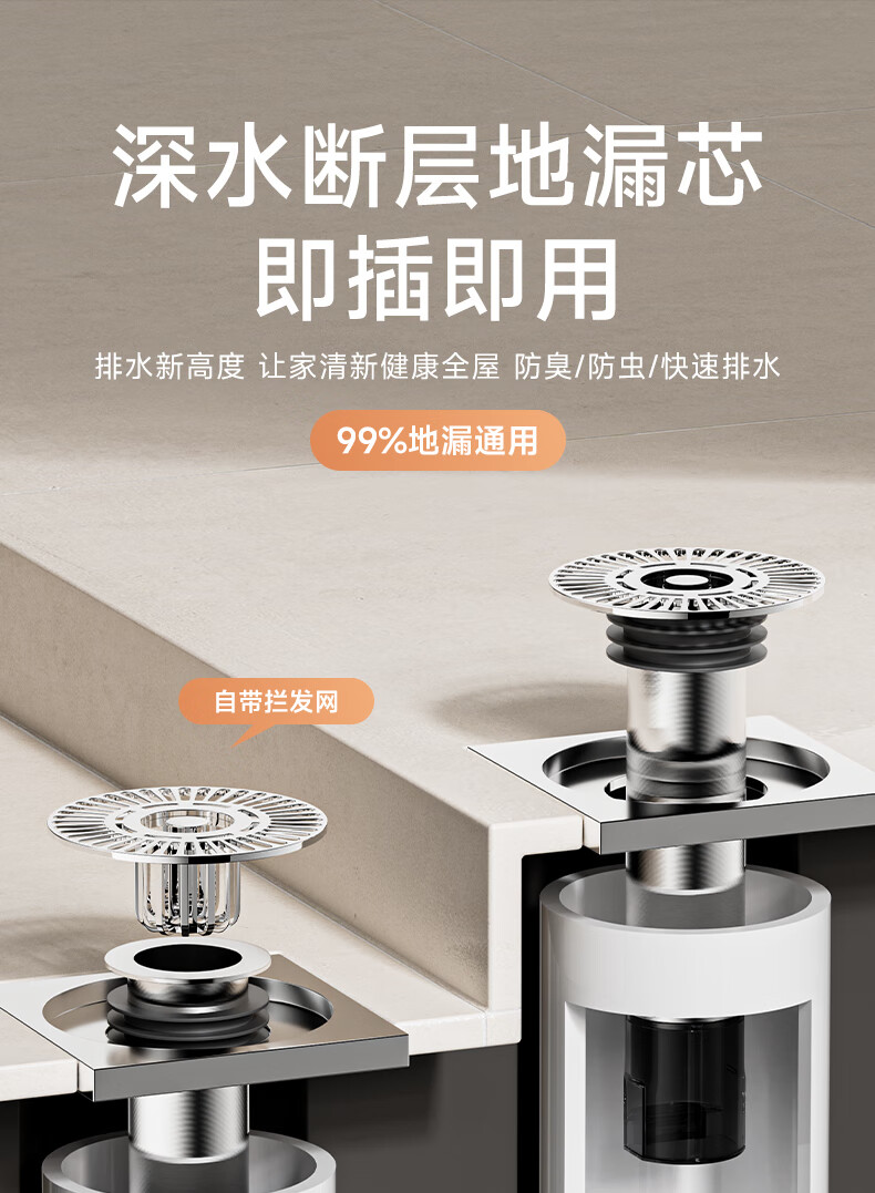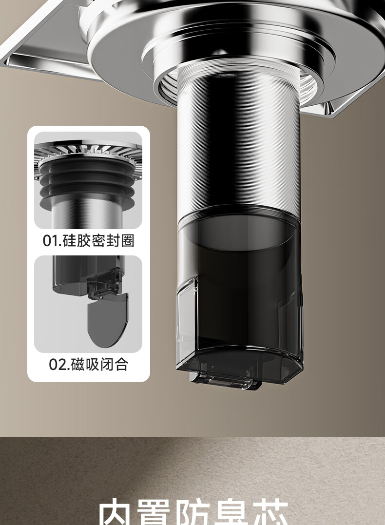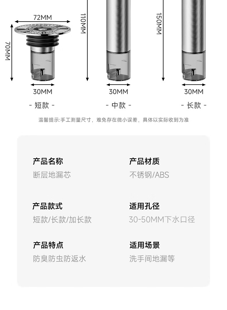 JOCBO Germany Fault Floor Drain Deodorant Core Extended 304 Stainless Steel Bathroom Sewer Floor Drain Extension Pipe 11cm | Special for Fault | Magnetic Deodorant Floor Drain